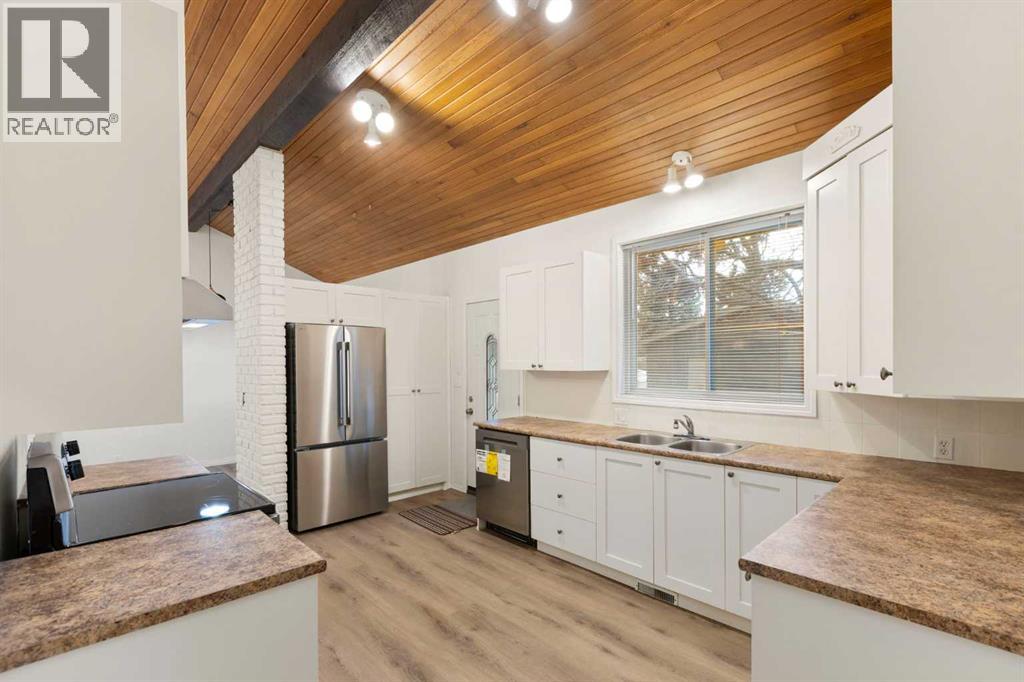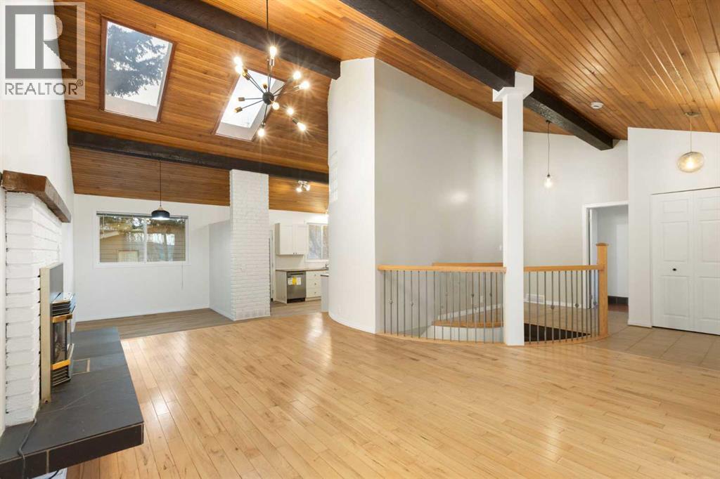 Welcome to this beautifully renovated bungalow in the established community of Canyon Meadows, offering a bright open-concept layout and modern upgrades throughout. The main level features a spacious living area that is highlighted by stunning vaulted ceiling, skylights that flood the space with natural light and a cozy fireplace. The space seamlessly connects to a dinning room , kitchen and back entrance. The refreshed kitchen showcases contemporary cabinetry, newer appliances, updated finishes, and a functional design ideal for everyday living. Three well-sized bedrooms and a renovated bathroom complete the main floor.The fully finished basement expands the living space with a large family room, an additional bedroom with walk-in closet, a full bathroom, dedicated laundry area, and ample storage — perfect for guests, teens, or additional living space. Recent improvements enhance comfort and efficiency, including Lux windows, upgraded insulation, updated mechanical components, new flooring throughout and much more. Situated on a large corner lot with mature trees, the added bonus of RV pull-through parking, and a double detached garage.Ideally located just minutes from Canyon Meadows LRT, Fish Creek Provincial Park, schools, shopping, and recreation, this sought-after southwest Calgary community offers tree-lined streets, strong community spirit, and convenient access to major routes and everyday amenities. (id:55577)