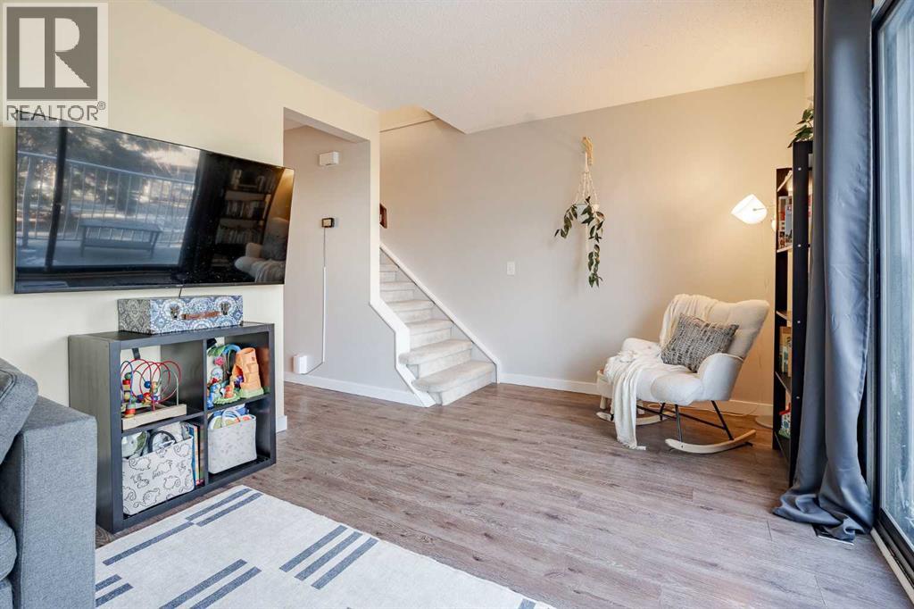 Welcome to this beautifully updated three-bedroom condo ideally located just steps from schools, shopping, and the scenic pathways of Nose Hill Park. Offering 1,051 sq. ft. of thoughtfully designed living space, this home is bright, welcoming, and completely move-in ready. The main level showcases a lovely living room with sliding glass doors leading to an east-facing balcony, where unobstructed views allow morning light to pour in. The dining area is perfectly positioned off the kitchen, overlooking a private, maintenance-free patio finished with modern interlocking stone—ideal for relaxing or entertaining. The adorable kitchen features newer appliances and updated cabinetry, blending charm with functionality. Completing the main floor is a beautifully renovated two-piece guest bath, perfect for visitors and everyday convenience. A beautifully renovated mudroom offers a wall of custom cabinetry for exceptional storage, newer laminate flooring, and fresh paint throughout. Upstairs, you’ll find three spacious bedrooms, each with large windows that flood the space with natural light. The updated main bathroom is both stylish and highly functional for everyday living.Upon entry, enjoy the convenience of a single attached garage, along with a dedicated area for storage and laundry. Even better—new windows have already been paid for and are scheduled for installation in February (weather permitting).This exceptional home truly is a dream come true. Don’t miss your opportunity to make it yours! (id:55577)