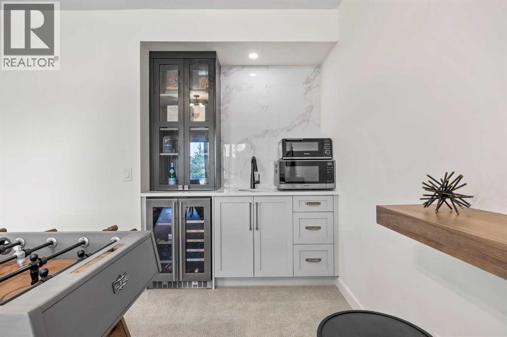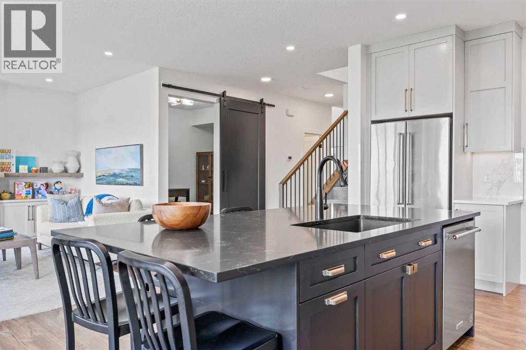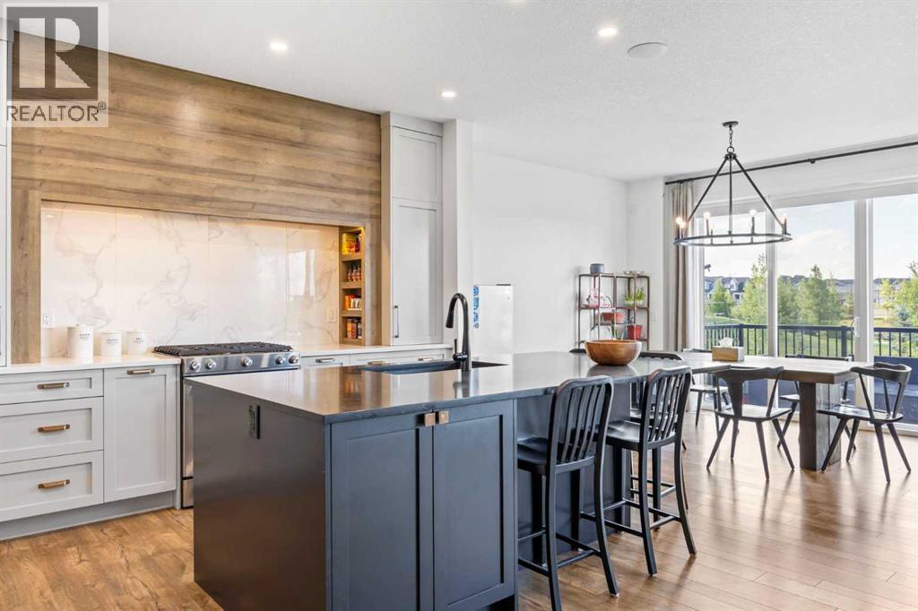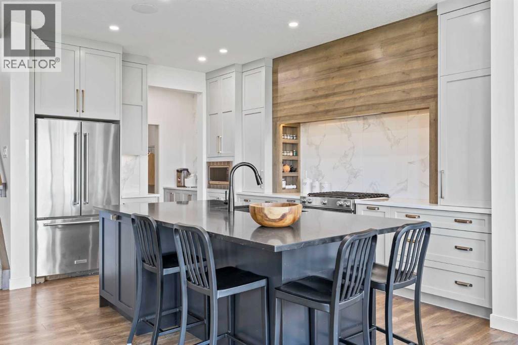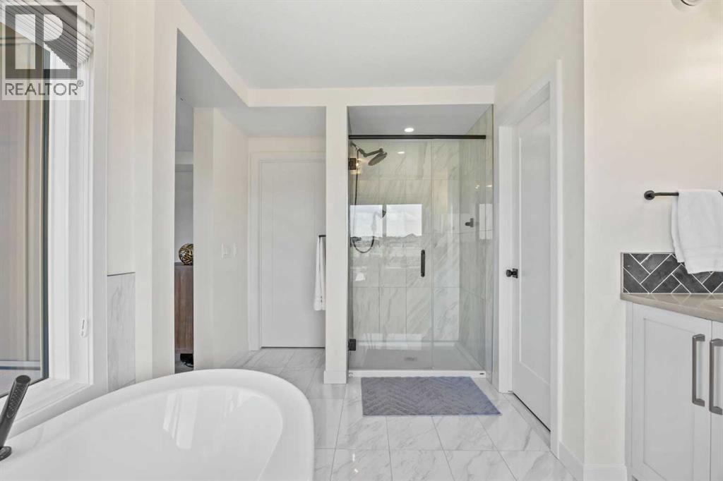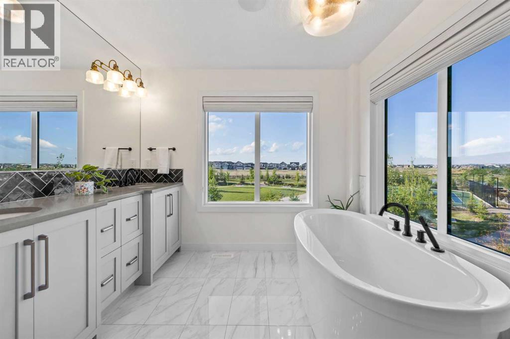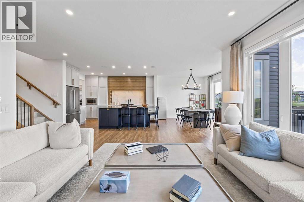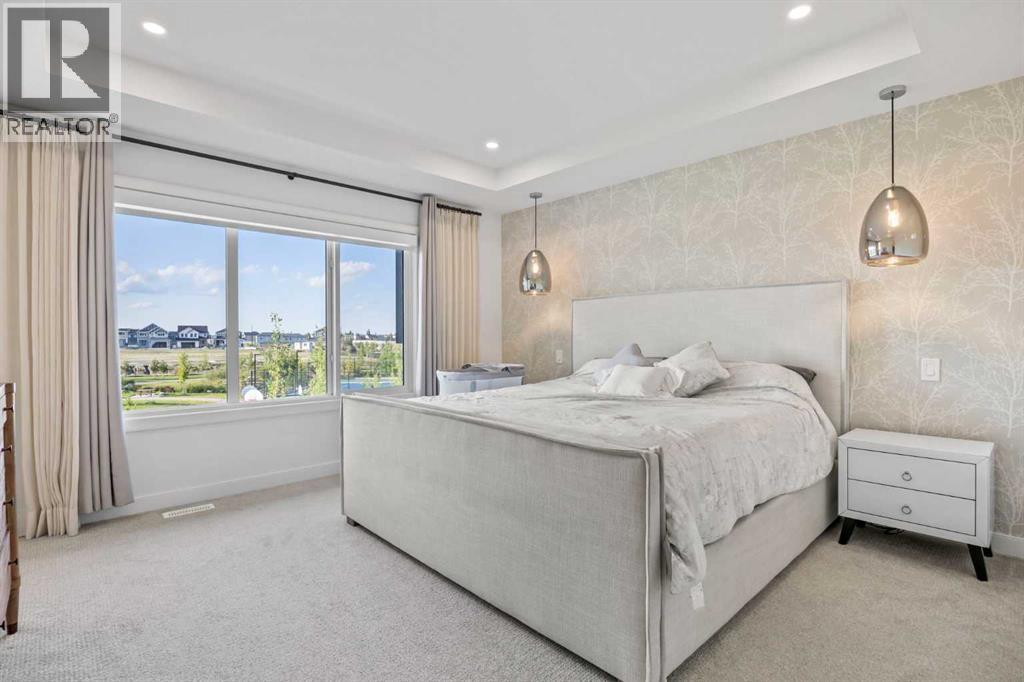 Welcome to this exceptional 30 ft wide former showhome, backing directly onto the scenic Bayview Park, in a vibrant community featuring a tranquil canal system, expansive green spaces, and a future school just steps away. Thoughtfully designed and meticulously upgraded with over $150,000 in high-end finishes, this award-winning residence blends sophistication, comfort, and modern functionality.Over 3600 Sq ft. developed area, the main level impresses with two-tone cabinetry, stacked flooring, and two-tone quartz countertops, beautifully accented by white oak railings and elegant boxed-up ceiling details. The custom kitchen is both stylish and practical, seamlessly connecting to open-concept living and dining areas. A large spa-inspired ensuite bathroom and comfort-height vanities bring a touch of everyday luxury, while triple-pane windows ensure quiet and energy efficiency throughout the home.Upstairs, a generous bonus room with 9 ft ceilings offers a perfect space for relaxing or entertaining. Every bedroom is pre-wired with TV and data ports, reflecting the home’s forward-thinking design. The laundry room is roughed in for a future sink, offering additional convenience.The fully developed basement adds an additional 810 sq ft of living space with 9 ft ceilings, and features a spacious recreational area, a large bedroom, and a full bathroom, perfect for guests, teens, or multi-generational living. In-ceiling speakers are installed on every level, delivering a seamless audio experience throughout the home.Modern amenities continue with a dual-zone furnace system, central air conditioning, and an upgraded 200 AMP electrical panel. The heated garage with an 8 ft overhead door is EV-ready with charging rough-in already in place. Exterior upgrades include Gemstone permanent lighting, an irrigation system, and a hot tub control panel, enhancing the outdoor lifestyle.This is a rare opportunity to own a turnkey luxury home in a premier location—designed to impress and built to last. (id:55577)