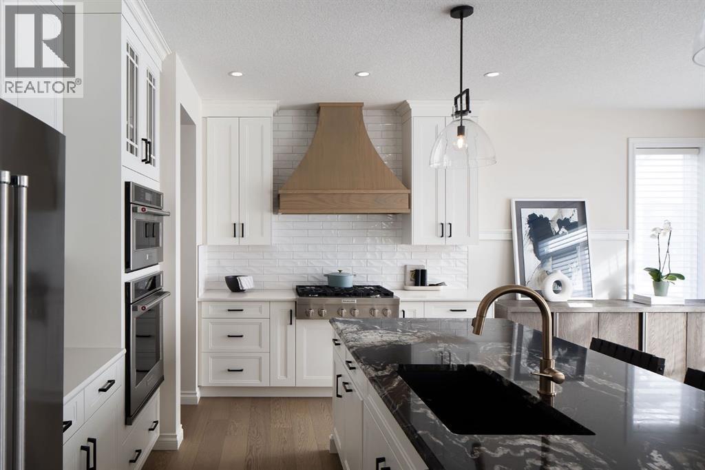 BILD Calgary Award Finalist | Built by Morrison HomesBacking onto a quiet, private wooded setting in Legacy, this beautifully upgraded estate home offers timeless design paired with exceptional functionality. Upgraded hardwood flooring flows throughout both the main and upper levels, complemented by ornate moldings and custom cabinetry that elevate every space.The chef-inspired kitchen is equipped with premium stainless steel appliances, granite countertops, custom glass cabinetry, and a striking statement hood fan. The open-concept main floor features a welcoming great room with gas fireplace, an elegant dining area with triple-panel patio doors, and a private office with custom built-ins. A thoughtfully designed mudroom, wet bar, and large enclosed pantry connect seamlessly to the heated triple attached garage.Upstairs, the spacious primary retreat offers a spa-like ensuite and walk-in closet, alongside three additional bedrooms, a full bathroom with dual sinks, a generous bonus room, and convenient upper-level laundry. The fully finished sunshine basement includes a bedroom with walk-in closet, a 4-piece bathroom, and a large recreation room—ideal for guests, teens, or extended family.Located just steps from the future Living Spirit Catholic School (K–9, opening 2026) and close to parks, shopping, and major roadways, this exceptional home combines luxury, comfort, and a rare wooded backdrop in one of Legacy’s most desirable family communities. (id:55577)