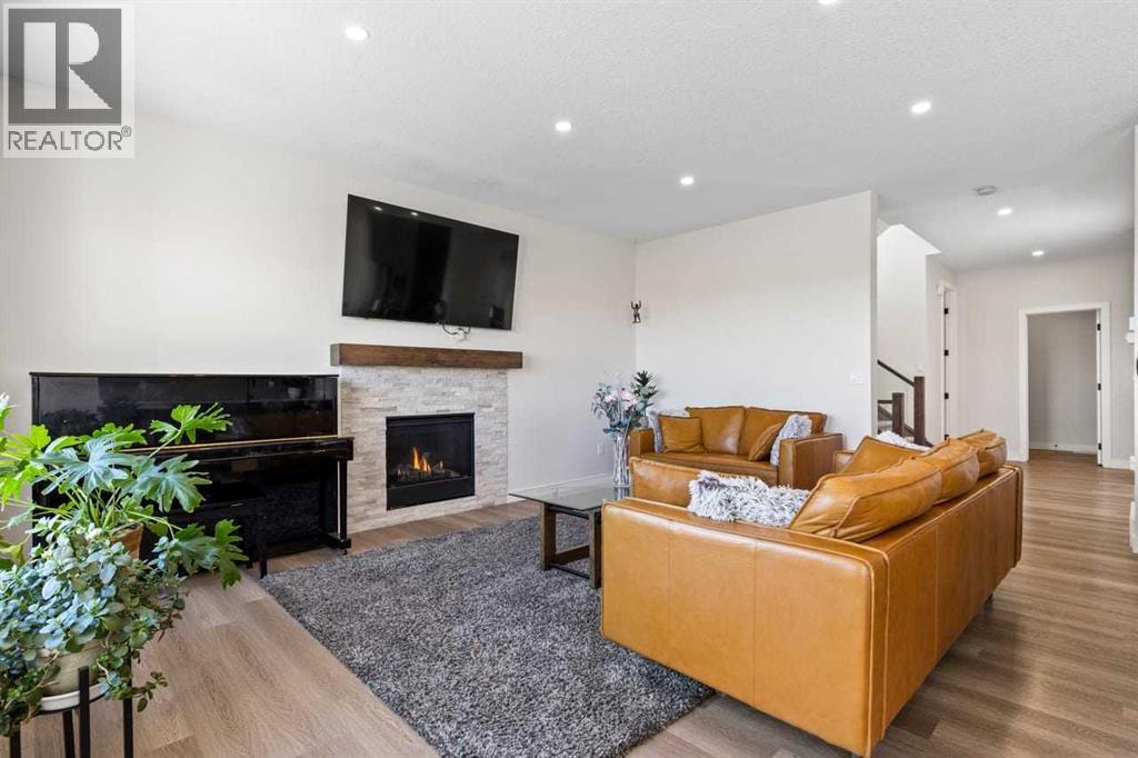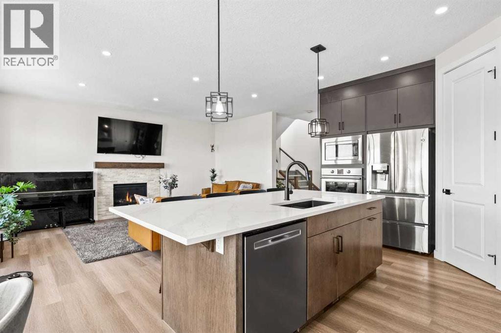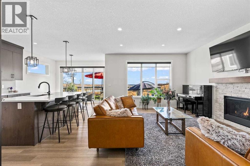 STUNNING MODERN ELEGANCE! Welcome to this meticulously designed 3-story sanctuary in the heart of Walden. This home commands attention with its modern curb appeal and a backyard that opens directly onto the ravine and serene walking paths—offering the ultimate privacy with no neighbours behind just views.The main level open-concept living, featuring soaring ceilings and a chef-inspired kitchen outfitted with premium quartz countertops, full-height cabinetry, and a social island. Relax in the sun-drenched living room, anchored by a stone fireplace, or step out to the rear deck for sunset views over the river and greenspace. Upstairs, on the second floor, find a versatile bonus room and three bedrooms with one shared bathroom and one ensuite. The third floor is the primary retreat that defines "spa-like," with a private balcony offering breathtaking views, a retreat space, and a deep soaking tub and dual vanities. With a separate side entry and a walk-out, fully finished basement, with one bedroom and a full bathroom. Fully landscaped with artificial grass and fenced. This home is as functional as it is beautiful. Don't miss your chance to own in one of SE Calgary’s premier locations! Book your private showing. (id:55577)
