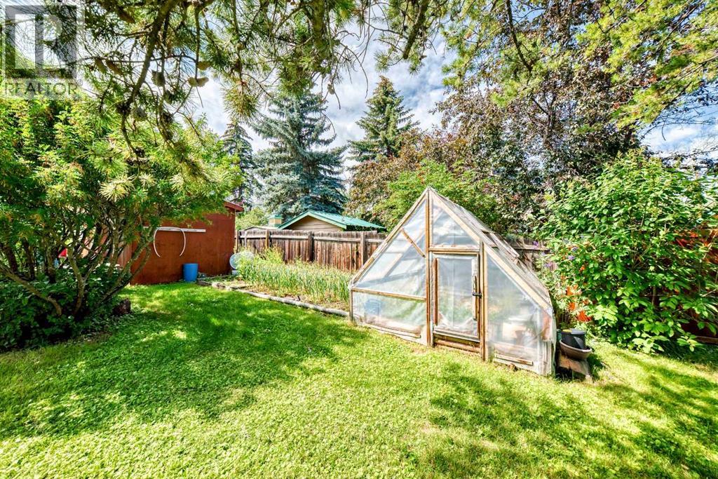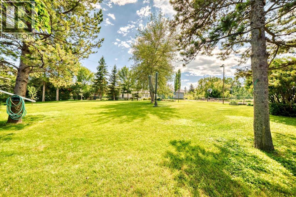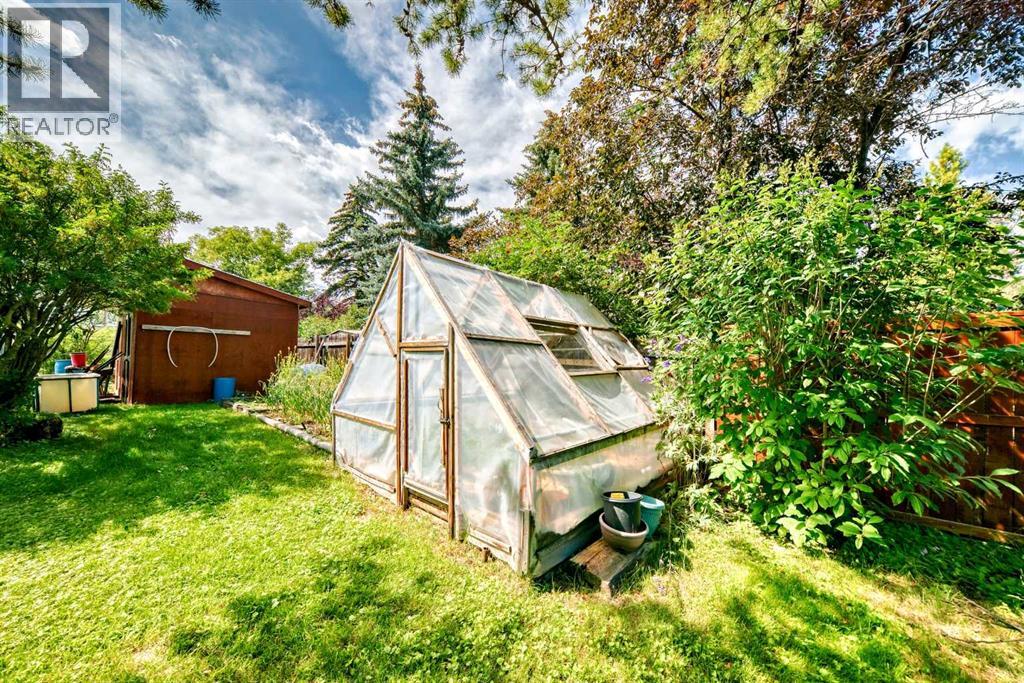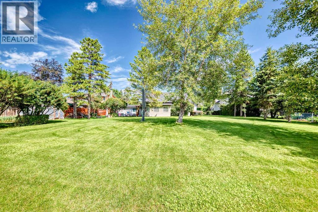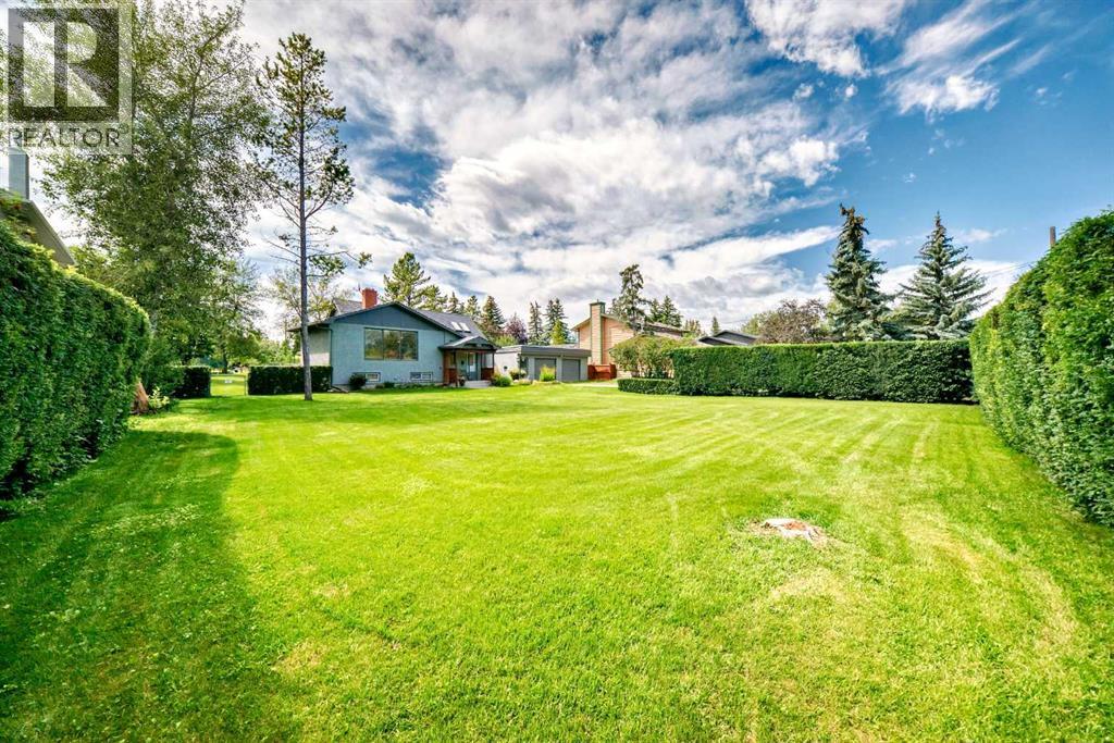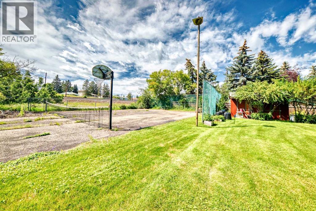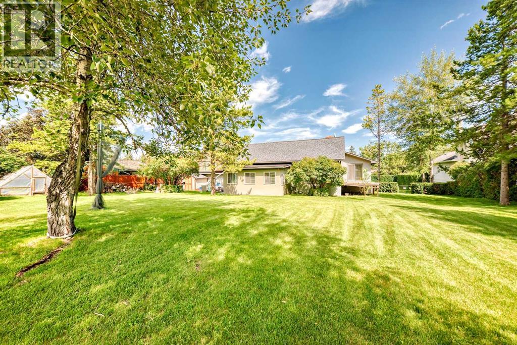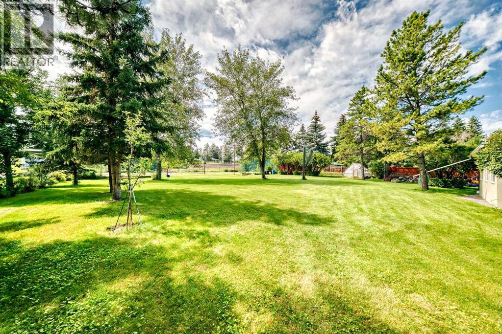 Amazing inner city acreage! Measuring 111 x 278ft for this mature treed west rear lot on desirable Bow Crescent! Very rare opportunity to get a lot of this size and nature, where you can either sub-divide and build two homes, build your own dream home or simply enjoy the split level existing home that is currently on the lot. The home features a large front living room with cozy woodburning fireplace, front views of the well manicured front lawn/10' high privacy hedge, plus a patio door leading to a side deck area. The country style kitchen / dining area is large enough to hosts guests / family dinners and walks into a 3 season sunroom that faces west and south and is the best room of the house where you have magnificent views of your massive rear yard. This yard is like no other as it features your own driving range netted area, tennis court / sports court (needs a facelift), greenhouse, garden beds and multiple storage sheds. The home has a total of 3 bedrooms including the primary on the main level with 1/2 bath ensuite and walk-in closet, a basement with an extra office / guest room and full bathroom with large soaker tub. Other features include 4 skylights upstairs, one room with A/C, newer roof on front half of house, freshly painted exterior and metal roof on the double garage, which has a breezeway connecting it the house. Nestled in amongst many towering trees, enjoy the park-like setting with a variety of wildlife at your doorstep. Great location as you are close to the Main street Bowness, the New Farmer's Market, Walking distance to River Paths, Close drive to Children's and Foothills Hospitals, U of C and 10-15 mins drive to downtown. Call you favorite Realtor today to view this lovely family-friendly property. (id:55577)