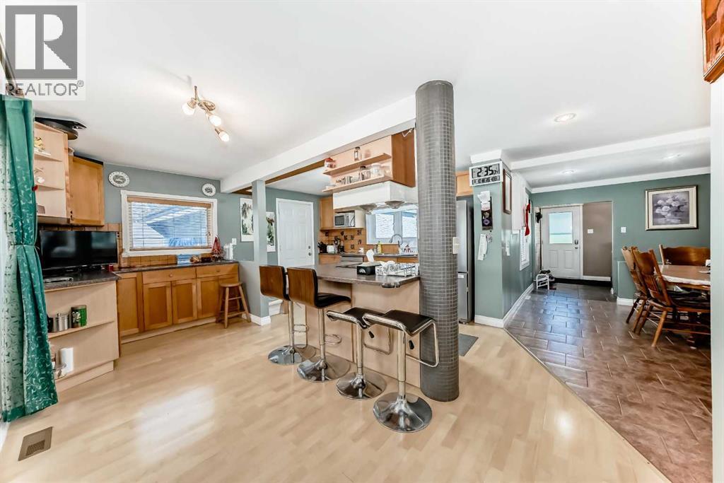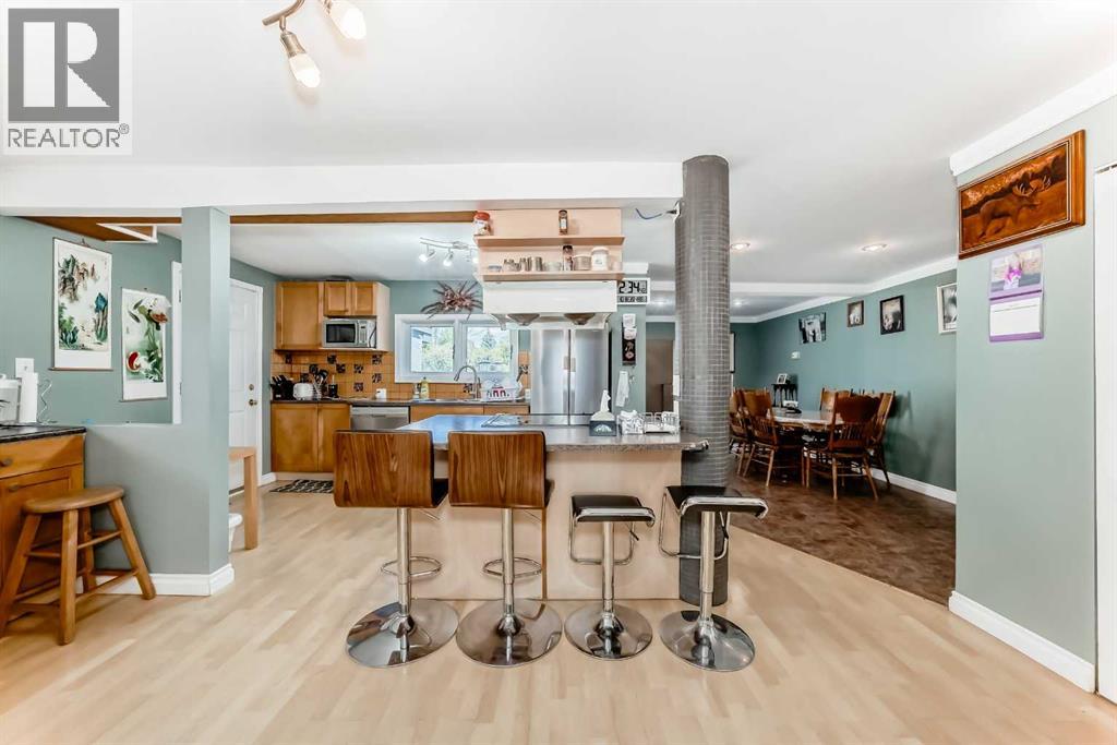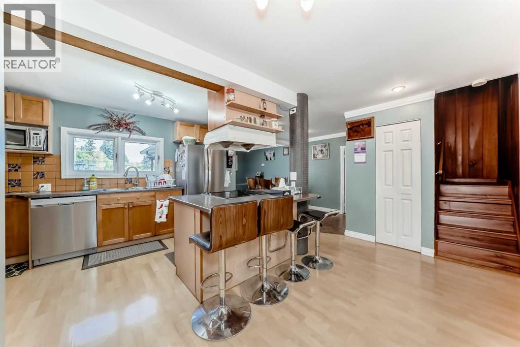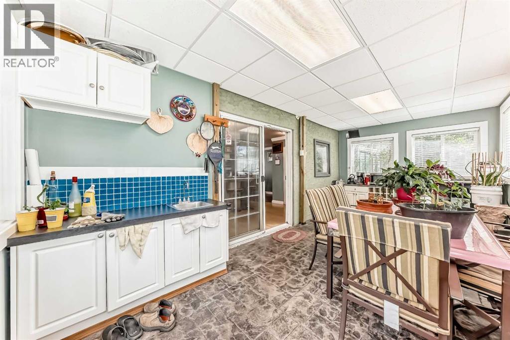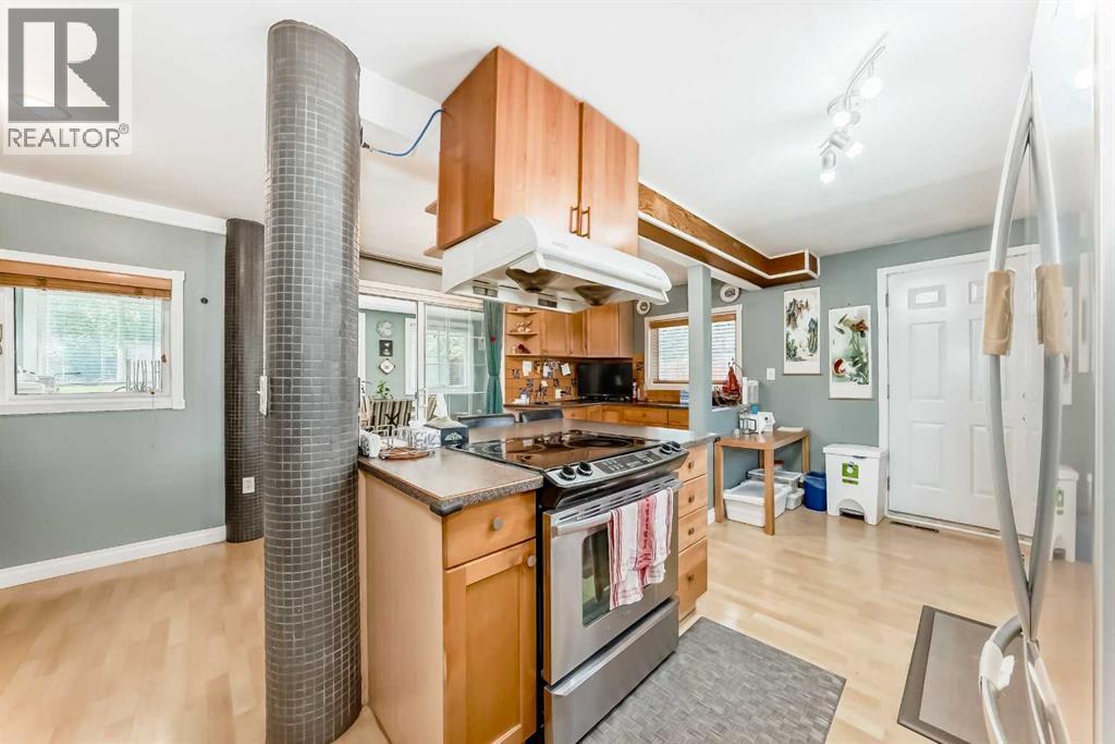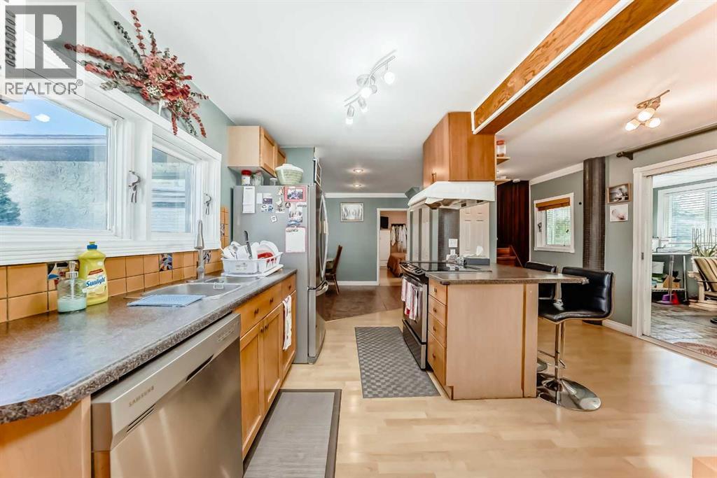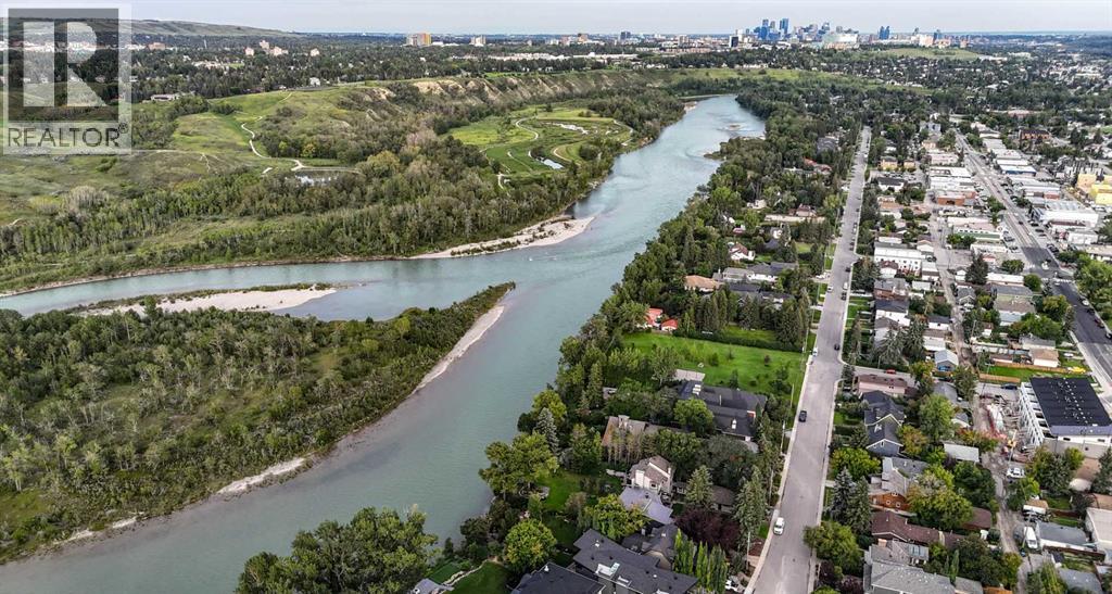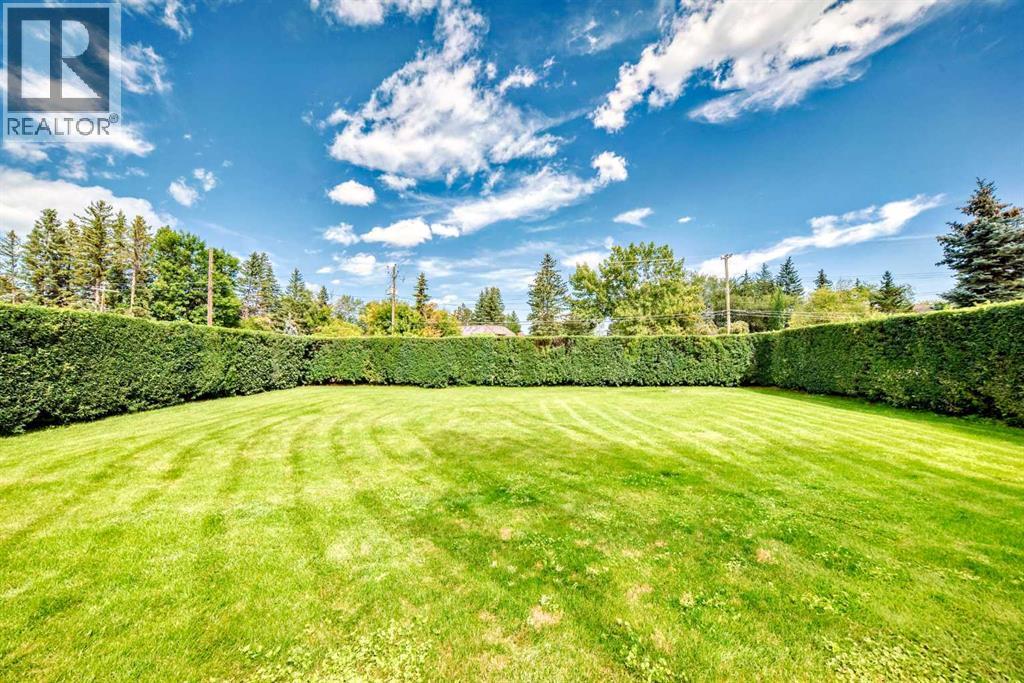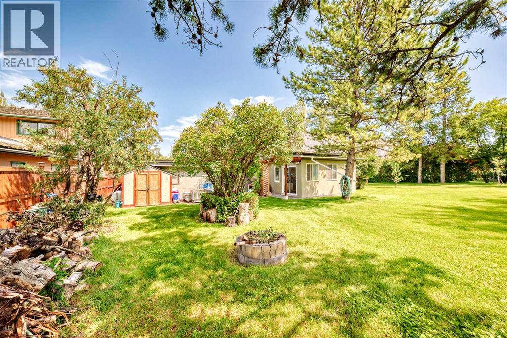 Amazing inner city acreage! Measuring 111 x 278ft for this mature treed west rear lot on desirable Bow Crescent! Very rare opportunity to get a lot of this size and nature, where you can either sub-divide and build two homes, build your own dream home or simply enjoy the split level existing home that is currently on the lot. The home features a large front living room with cozy woodburning fireplace, front views of the well manicured front lawn/10' high privacy hedge, plus a patio door leading to a side deck area. The country style kitchen / dining area is large enough to hosts guests / family dinners and walks into a 3 season sunroom that faces west and south and is the best room of the house where you have magnificent views of your massive rear yard. This yard is like no other as it features your own driving range netted area, tennis court / sports court (needs a facelift), greenhouse, garden beds and multiple storage sheds. The home has a total of 3 bedrooms including the primary on the main level with 1/2 bath ensuite and walk-in closet, a basement with an extra office / guest room and full bathroom with large soaker tub. Other features include 4 skylights upstairs, one room with A/C, newer roof on front half of house, freshly painted exterior and metal roof on the double garage, which has a breezeway connecting it the house. Nestled in amongst many towering trees, enjoy the park-like setting with a variety of wildlife at your doorstep. Great location as you are close to the Main street Bowness, the New Farmer's Market, Walking distance to River Paths, Close drive to Children's and Foothills Hospitals, U of C and 10-15 mins drive to downtown. Call you favorite Realtor today to view this lovely family-friendly property. (id:55577)