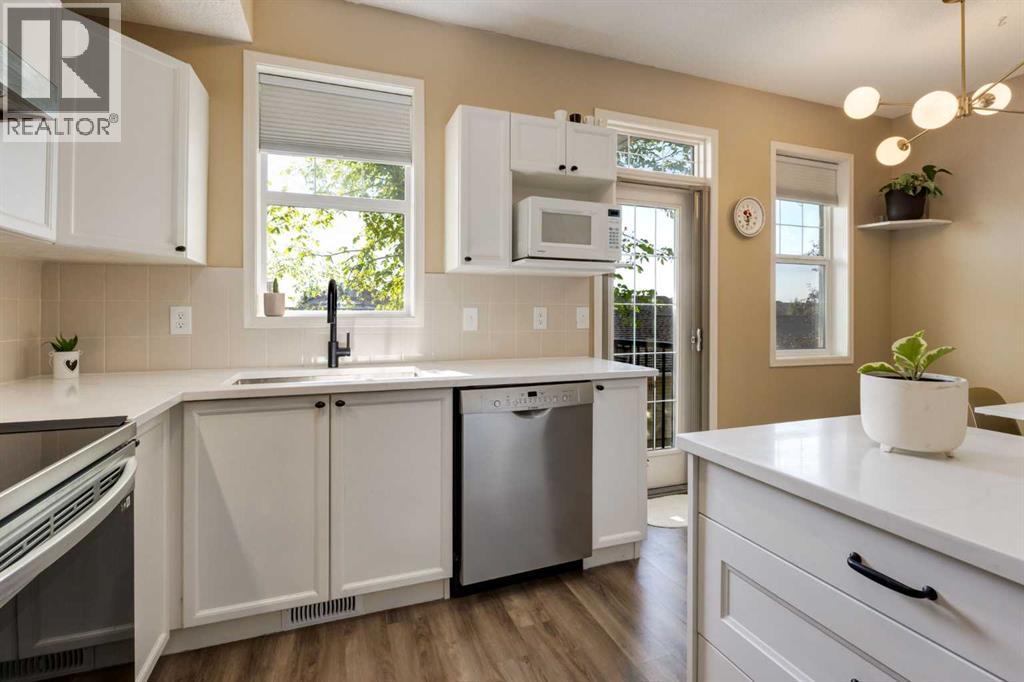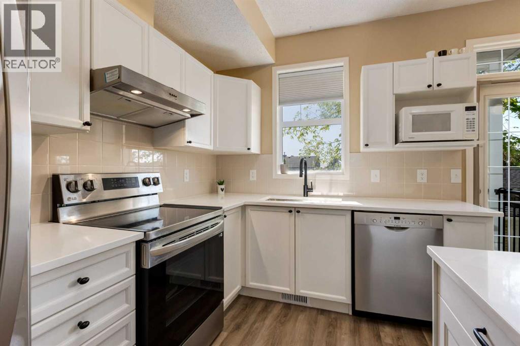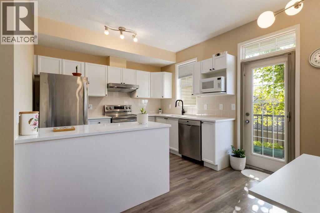 GREAT LOCATION & EXCEPTIONAL VALUE! Welcome to this bright and beautiful 3 bedroom & 2.5 bathroom condo in the highly desirable community of Springbank Hills College Gate. Featuring 9 ft ceilings and numerous upgrades, this home offers both comfort and style. The main floor boasts newer vinyl plank flooring and a bright, open layout with a spacious entry and living room. The kitchen is highlighted by crisp white cabinetry, new LG stainless steel appliances, and quartz countertops(2024). Step out onto the back deck with a gas BBQ hookup—perfect for entertaining. The primary bedroom includes a 3-piece ensuite and a large walk-in closet. Two additional bedrooms feature oversized windows and built-in locks for added security. A titled parking stall with a remotely activated plug-in adds convenience year-round. Fantastic location—Springborough Professional Centre is just across the street with shops, a café, and a pharmacy. Westside Rec Centre is next door, and the 69 St. LRT station offers a quick commute downtown. Top schools such as West Calgary High, Rundle College, Webber Academy, and Ambrose University are only a short walk or drive away. Don’t miss this attractive and affordable opportunity—perfect for families or students. Click the Virtual Tour for more details! (id:55577)