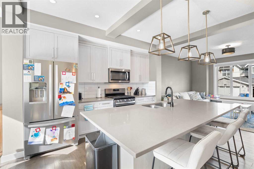 Welcome to this stunning, condo-free townhome located in the award-winning community of Coopers Crossing in Airdrie, AB. Built in 2019 by a respected local builder, this meticulously maintained home offers over 2,300 square feet of beautifully developed space and combines thoughtful design, quality craftsmanship, and premium upgrades throughout.Situated on a quiet, family-friendly street, this 4-bedroom home boasts remarkable curb appeal, a fully landscaped yard, and a rear detached double garage, providing both function and charm. Step inside to find an inviting open-concept main floor with central air conditioning, perfect for year-round comfort.The heart of the home is the chef-inspired kitchen, featuring upgraded stainless steel appliances, an oversized quartz island, custom cabinetry, and stylish fixtures—ideal for entertaining or casual family living. Adjacent, the bright and spacious living and dining areas flow seamlessly, creating a welcoming atmosphere for gatherings.Upstairs, retreat to the luxurious primary suite, complete with a 4-piece ensuite featuring a walk-in shower, double vanity and toilet closet as well as a generous walk-in closet. Two additional bedrooms, a full bath, and a conveniently located laundry area complete the upper level.The fully developed basement includes a fourth bedroom, a spacious family or recreation room, and plenty of storage—offering versatility for a guest suite, home office, or gym.Enjoy peace of mind knowing this property is move-in ready, with high-end finishes, well-maintained systems, and friendly, community-minded neighbors all around. Located within walking distance to parks, pathways, schools, and local amenities, and just minutes to all that Airdrie has to offer, this home truly combines comfort, location, and lifestyle.Key Features:Over 2,300 Sq Ft of Developed Living SpaceBuilt in 2019 by a Local BuilderCondo-Free, No Condo Fees4 Bedrooms | 3.5 BathroomsLarge Primary Bedroom with 4-Piece Ensuite & Wa lk-In ClosetCentral Air ConditioningUpgraded Appliances ThroughoutOversized Kitchen IslandFully Landscaped YardRear Detached Double Car GarageLocated on a Quiet Street in Coopers CrossingSurrounded by Wonderful NeighborsThis is a rare opportunity to own a high-quality home in one of Airdrie’s most sought-after neighborhoods. Don’t miss your chance—book your private showing today! (id:55577)