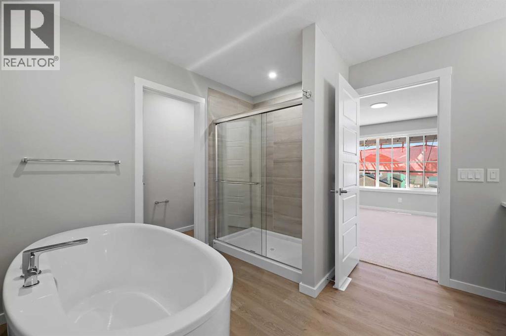The Hadley by Bedrock Homes offers a thoughtfully crafted open-concept layout designed for modern living with west-facing mountain views from the upper floor, perfect for enjoying Alberta’s natural beauty. From the moment you step inside, the open-to-above foyer sets an impressive tone, leading to a functional walk-through mudroom and pantry. At the heart of the home, the central kitchen showcases a large island that overlooks a bright great room and dining area, ideally situated at the rear for seamless entertaining and everyday comfort. Upstairs, you’ll find a spacious bonus room, two additional bedrooms, and a full bathroom. A striking bridge hallway over the foyer leads to the private primary suite, featuring a luxurious ensuite and a walk-through closet with direct access to the laundry—combining style with smart design. This home also includes a separate entrance to the basement, offering excellent potential for future development. **Please note: Photos and measurements are of 15 Heritage Link, Cochrane. While the floor plan is identical, finishes, selections, and colours are different. (id:55577)