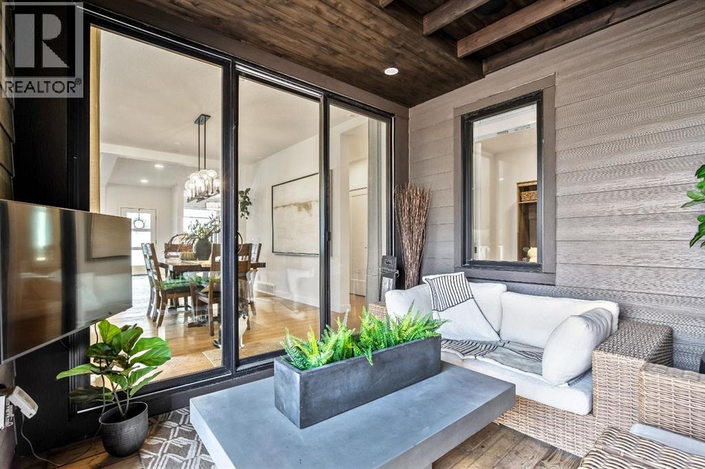 Enjoy luxury living in the estate community of Alpine Park. Intentionally built on a quiet green space with only a pedestrian pathway and no traffic out front. As you approach this stunning residence on an oversized corner lot you will notice the great curb appeal and welcoming front porch. This well thought out open concept design will exceed your expectations, with hard surface flooring throughout and soaring 9’ ceilings. The gourmet kitchen is a focal point with custom cabinets that reach to the ceiling, SS appliances with a gas stove, gorgeous stone counters, timeless tile backsplash, a kitchen sink overlooking the courtyard and an oversized island that faces the bright dining room. Enjoy direct access to your own outdoor oasis including a private covered deck with phantom screens creating a great 3 season outdoor space, a lower level deck, and a large lower patio for low maintenance living plus 2 outdoor gas line ( for BBQs or Fire Tables). Adjacent to the kitchen is the spacious living room showcasing a contemporary texture finish gas fireplace. Plus, a bright front home office or study creating the perfect setting to focus and be productive. Avoid the outdoor elements with a rear attached 2 car garage, mudroom, and stylish powder room tucked out of the way. As you head upstairs you will notice the contemporary railing that opens to the large bonus room with tray ceiling detail perfect for movie nights, 2 well sized bedrooms, a 5pc main bath with stone counters, and a convenient upper-level laundry room are situated away from the Primary retreat. This sanctuary has a tray ceiling detail and luxurious ensuite including a relaxing free standing soaker tub, massive tiled shower, dual sinks, and expansive walk in closet. The basement is fully complete with a gym, 4th bedroom, 4 pc bath, and large rec room with wet bar. Every detail reflects unparalleled craftsmanship from the comforts of air conditioning, custom drapes, designer lights, upgraded plumbing fixture , a hose bib in the garage, and energy efficiencies of a tankless hot water tank, and a dual zone hi velocity heating system. Enjoy easy access to the mountains, via Stoney trail, downtown 20 minutes away, and 5 minutes to Costco and shopping. View the virtual tour or schedule a time to view the home today! (id:55577)