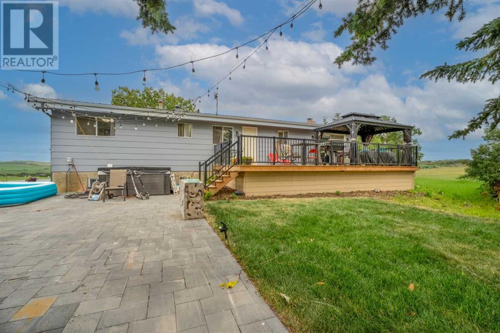 Welcome to your dream country retreat, nestled on 145.11 acres in picturesque Foothills County. Perfectly set up for cattle, horses, or any four-legged friends you wish to raise, this property features mature trees, rolling pastures, and 180-degree unobstructed views of the Rocky Mountains and Foothills, offering the ultimate rural lifestyle—just minutes from Diamond Valley and Okotoks. The 1,300 sq. ft. bilevel home is warm and inviting, with five bedrooms and three full bathrooms, ideal for family living. Enjoy cozy evenings by the wood-burning fireplace, and host gatherings on the expansive outdoor patio and large back deck, where you can watch breathtaking sunsets over the hills. Families will also appreciate school bus service to both public and Catholic schools, ensuring convenient access to education while still enjoying the peace of country living. For livestock and equipment needs, the property is exceptionally well-equipped with a drive-through Quonset featuring horse stalls, a second Quonset ideal for equipment storage, and an additional shed for extra space. All outbuildings are powered with electricity, while stock waterers and strategically placed water hydrants ensure convenience and efficiency for your animals and operations. The land is cross-fenced, making it ideal for grazing and easy livestock management. This acreage offers the best of both worlds when it comes to location and accessibility. It sits along Highway 7, providing excellent year-round access for cattle, agricultural, or commercial operations. Moving livestock, hauling equipment, or transporting goods is effortless with the direct highway frontage—yet the home itself is set far enough back from the road, surrounded by mature trees and natural landscaping, creating a peaceful, private setting where you won’t hear the traffic. There is also an opportunity to lease the land to a neighboring farmer, offering potential supplemental income or an option for those who want to enjoy the rural lifestyle without actively farming the entire acreage. Ask for further details on leasing arrangements. This prime location offers the perfect balance of rural serenity and convenience, situated just minutes from Diamond Valley, Okotoks, and all essential amenities. From the “Back 40,” you’ll enjoy incredible panoramic views of the rolling Foothills and the majestic Rocky Mountains, creating a truly breathtaking backdrop for your country lifestyle. Whether you’re looking for a working cattle operation, an equestrian setup, or a private countryside escape, this property is a rare find with endless potential. Don’t miss this opportunity to own a true Foothills gem with room to grow, play, and thrive! (id:55577)