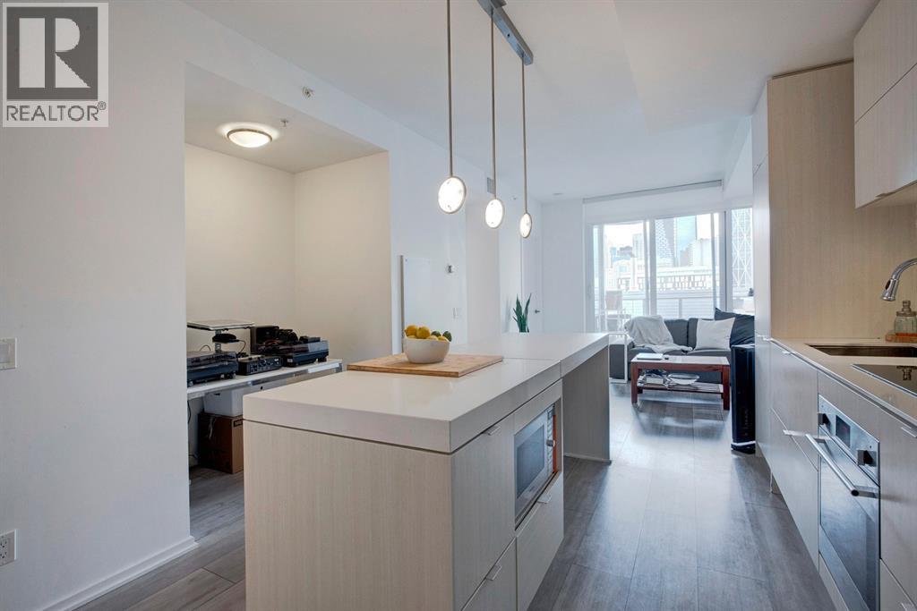 Great Investment Opportunity! Welcome to this luxurious condo with breathtaking DOWNTOWN VIEWS located in the vibrant East Village! Enjoy stunning city views from the living room, bedroom, and private balcony, making this unit truly one of a kind. This ultra-modern home features an open-concept floor plan filled with natural light, high-end built-in appliances, elegant cabinetry, and sleek quartz countertops. The spacious bedroom, stylish 4-piece bathroom, and a dedicated office area create the perfect blend of comfort and functionality. Additional features include UNDERGROUND PARKING and STORAGE. The building offers exceptional amenities such as a FITNESS CENTER,PARTY ROOM, hot tub on the 6th floor, guest suite, observation lounge and public deck on the 25th floor, plus 24-hour concierge and SECIURITY. Located just minutes from shopping, C-Train station, Riverwalk, and the new Central Library, this property combines urban lifestyle with convenience. Whether you’re looking for an investment or a stylish downtown home, this one is a must-see! (id:55577)