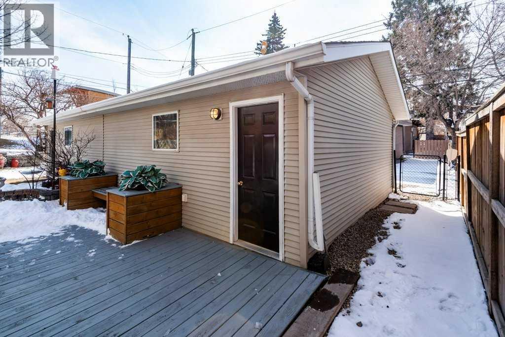 An exclusive and rare opportunity for a beautiful Windsor Park three bedroom two storey home featuring a one bedroom suite (illegal) in the walk-out basement for a total of four bedrooms. With 1684 sq ft of bright living space above grade, there are maple hardwood floors and maple finishes throughout the main level. A three-sided gas fireplace between the living room and dining room add to this open layout with high ceilings, and the cheerful kitchen features an island with a french door to a south deck and backyard. Main floor laundry and a 2 piece powder room are also on this level. The open staircase leading the upper level is a well designed architectural detail. Upstairs there is a spacious primary bedroom with a vaulted ceiling and a spacious 3 piece ensuite bathroom with a skylight and tile floors. The additional bedrooms feature walk-in closets, vaulted ceilings, and a 4 piece main bathroom with a skylight is adjacent to both bedrooms. There is another skylight in the upper hall over the stairwell. The walkout basement features a large living and dining area with a full kitchen, a 4 piece bathroom and a huge bedroom with two windows. A second washer and dryer are also on this level. A French door to a covered patio provides quiet and private outdoor space with low maintenance wood decking. A Double garage is attached to the neighbour’s garage to provide a wider garage for parking. Note that there is in-floor heat on all levels with an upgraded boiler system in 2024 and the roof was replaced in 2019. The front yard features a covered porch and a fenced yard. Located close to the community centre and amenities, this property is also walkable to everything such a schools, parks, churches, off leash dog park, Britannia’s boutique shopping plaza, the Italian Market, #3 bus on Elbow Drive, and Chinook Centre. Close to Stanley Park, Ridge pathways by the Elbow River, golf, LRT, hospital, close proximity to downtown, and easy access in all directions from Macleod Trail and Glenmore Trail. (id:55577)