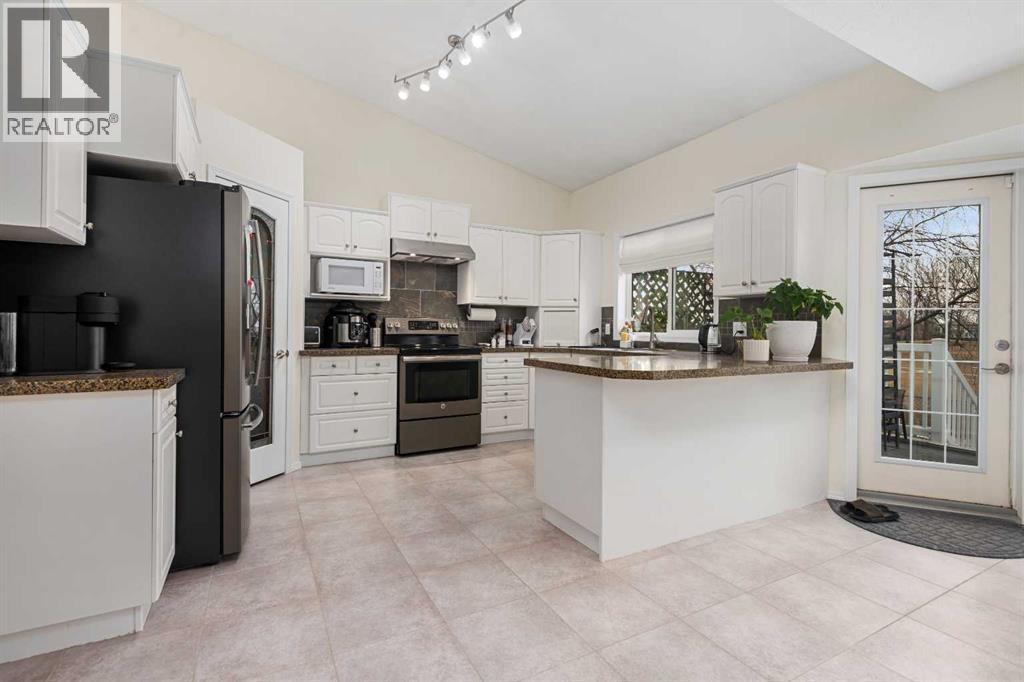 Welcome to this beautifully updated 2-storey split home, ideally located along the 10th hole of Woodside Golf Course. This impressive property combines timeless design with thoughtful modern upgrades, offering both comfort and functionality.The home has been freshly painted and features numerous recent improvements, including a new furnace and hot water tank (January 2025), new hood fan (January 2025), and a new dishwasher (November 2025), providing peace of mind for years to come.Upon entry, you’re greeted by high vaulted ceilings in the living room, dining area, and kitchen, creating an airy and welcoming atmosphere. Large windows fill the home with natural light, enhancing the open and spacious feel throughout. The main floor offers a cozy sunken family room with a gas fireplace, perfect for relaxing evenings, as well as a versatile main floor bedroom ideal for a home office or guest room.Upstairs, you’ll find three generously sized bedrooms, including a spacious primary retreat featuring a recently renovated ensuite and a custom walk-in closet by California Closets. The second level has been updated with modern vinyl plank flooring, adding a sleek and contemporary touch.The fully finished basement is designed for entertaining, offering a large recreation room complete with a fireplace, built-in desk, bar, and TV wall unit. A fifth bedroom and a 3-piece bathroom complete this flexible lower level.Additional highlights include air conditioning, location on a school bus route with priority snow removal, an extra-long driveway accommodating up to four vehicles or a large RV, and a spacious oversized double garage.Step outside to enjoy summer days on the large deck, overlooking a beautifully maintained backyard with a sprinkler system, all just steps from Woodside Golf Course and the 525 Restaurant.This is a rare opportunity to own a well-maintained, move-in-ready home in a premium golf course location. (id:55577)