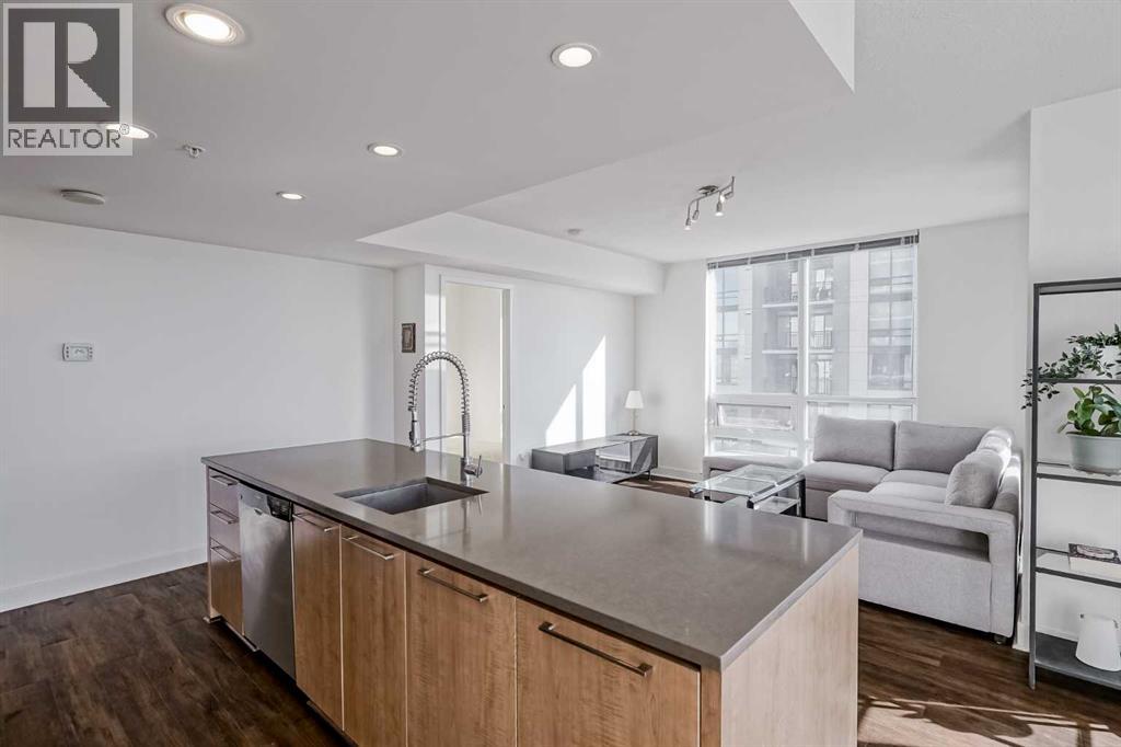 Experience sophisticated, high-rise living in this bright and expansive 2-bedroom plus den corner unit, perfectly situated in the highly sought-after NOVA building.This stylish and contemporary condo features an open-concept design accentuated by extensive, floor-to-ceiling windows that flood the space with natural light and offer outstanding expansive city and mountain views. Enjoy your morning coffee or wind down in the evening on the large, southeast-facing corner balcony.The gourmet kitchen is a chef's delight, boasting sleek quartz countertops, a Bosch gas stove, a Fisher & Paykel refrigerator, and under-cabinet lighting.The south-facing Primary Bedroom serves as a private retreat, complete with a walk-through closet and a luxurious five-piece ensuite bathroom. The second full bathroom features a walk-in shower and is conveniently designed to function as a second ensuite, offering maximum functionality.This prime property includes a titled underground parking stall within the secure parkade, which also provides ample visitor parking.NOVA provides exceptional building amenities, including a stylish lounge, a fully equipped gym, a rentable guest suite, beautiful outdoor gardens, and the luxury of a full-time concierge. With a quick walk to the downtown Co-op, shops, services, and diverse restaurants, this is an incredible opportunity to embrace convenient downtown living. Don't miss out—schedule your viewing today! (id:55577)