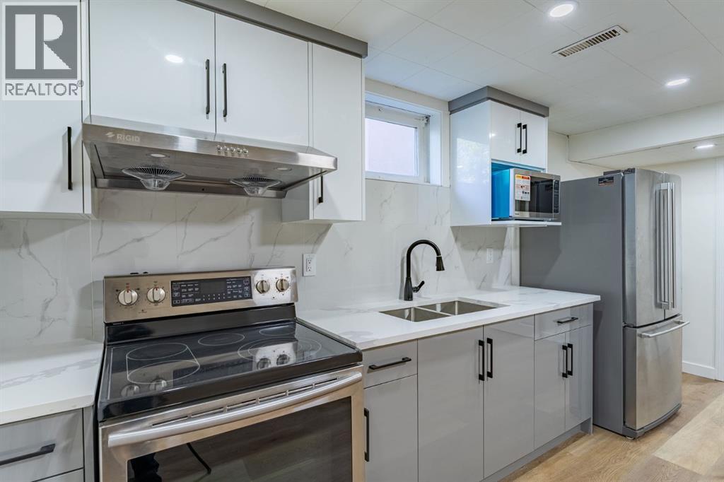 FULLY RENOVATED IN MARLBOROUGH! NEW ROOF! NEW GUTTERS! NEW SOD! Welcome to this beautifully updated bungalow offering MODERN FINISHES, functional space, and abundant natural light! Take a look at the fresh landscaping, NEW SOD, and a welcoming front entry with a brand-new door. Step inside and the main living area is warm and inviting, highlighted by a stunning feature wall with marble and wood paneling accented by custom lighting. The bright home is full of sunshine up and down! The new sliding door provides easy access to the sunny back deck and backyard. The kitchen is a true showpiece with quartz countertops, high-gloss two-tone cabinetry, NEW stainless steel appliances, and striking gold hardware and accents. There are 3 spacious bedrooms on the main level, including the primary which offers access to the main bathroom through a convenient connecting door. The bathroom is stylishly finished with tile for a modern touch. The FULLY FINISHED illegal basement suite expands the living space with 2 additional bedrooms featuring NEW EGRESS WINDOWS, a large recreation area, 2 tone kitchen cabinets with a quartz countertop, and a beautifully finished bathroom with black hardware and fixtures. A separate entrance provides added flexibility, making the space ideal for extended family living or future rental potential (subject to city bylaws and regulations). The home is also equipped with an electric water heater and a humidifier, adding comfort and efficiency year-round. Step outside to enjoy the sunny, south-facing backyard and deck, perfect for gatherings and everyday relaxation. The property also includes a double garage PLUS a new parking pad, offering plenty of parking and storage. Walking distance to MARLBOROUGH STATION, Marlborough Mall, and Pacific Place. Mall Located within walking distance to schools, parks, and just minutes away from Memorial Drive and 16 Avenue, this home combines style, function, and convenience in one incredible package. Don’t miss the chance to own this beautifully upgraded bungalow in a fantastic location for an amazing price! (id:55577)