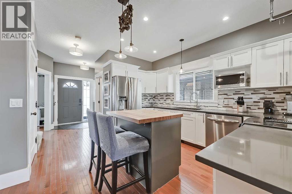 **OPEN HOUSE THIS WEEKEND: SATURDAY, APRIL 11, FROM 1 PM TO 3 PM** Unmatched opportunity to own a single-family home at the price of a townhome! Ideally located across from green space and minutes to amenities, this home offers almost 2,400 sq ft of living space with 3 beds up, 2.5 baths, and an insulated, heated double detached garage. This home welcomes you with a front porch framed by a mature tree, leading into a formal foyer. The main floor features solid hardwood flooring throughout and a bright front den perfect for a home office. The kitchen is functional, featuring quartz countertops, stainless steel appliances, a tile backsplash, ample cabinetry and a central island with butcher block counters. The formal dining area is centred underneath a designer light fixture, while the spacious living room offers a mantled gas fireplace. Step out onto the fully fenced backyard with a deck, large grassy area, dual gas lines, and a convenient storage shed. A concrete pathway leads to the insulated, heated, double detached garage. A discreet powder room near the front entrance completes the main level. Upstairs offers 3 generously sized bedrooms, including a primary suite with abundant natural light from multiple windows, a feature wall, a sitting area, and a walk-in closet. The ensuite features dual sinks, a soaker tub, and a separate walk-in shower. The 2nd and 3rd bedrooms share use of a full bath with an extended vanity and a tub/shower. A dedicated laundry room with tiled flooring, built-in storage, a window and a side-by-side washer and dryer complete the upper level. The basement is partially developed, offering a recreation room and a den, plus a bathroom rough-in is already in place for future development. This home also comes with a newer water tank and central air conditioning. Enjoy being just minutes from numerous options for shopping, dining, and other daily necessities. Perfectly situated on a quiet street overlooking a park/playground, this home is minut es away from the Bow River Parks and Pathways. Plus, other nearby parks and amenities include Shouldice Park, Bowness Park, the Alberta Children's Hospital, Foothills Hospital, the University of Calgary, and WinSport. This home is right across Our Lady of the Assumption School and close to Bowness High School, Bowness Community Association, and Bowness Skate Park, plus it’s close to various options for shopping, restaurants, and amenities such as Superstore and many local favourites, including Salt & Pepper, Cadance Coffee, and Bow Cycle… to name a few! (id:55577)