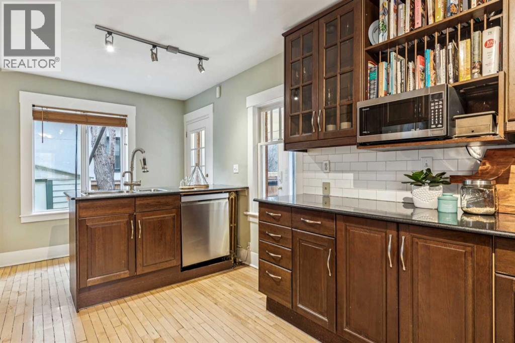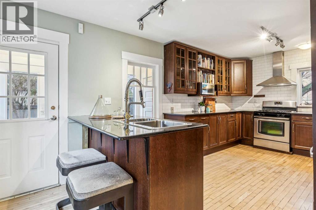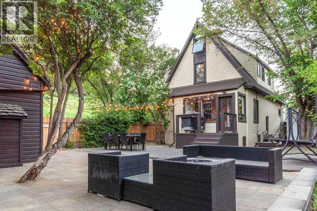 Discover this charming urban farmhouse in sought-after Elbow Park. Loved by the same family for more than seven years, this property is ready for its next chapter—whether you choose to move in and ENJOY, thoughtfully UPGRADE, or completely REDEVELOP. Ideally positioned across from the Glencoe Club and the Mount Royal escarpment with its scenic walking path, the home offers unmatched access to schools, parks, bike paths, and the community centre. A short stroll brings you to the vibrant 4th Street Village, home to acclaimed restaurants, cafés, fitness studios, markets, and everyday conveniences. Set on a 42’ x 109’ lot with a sunny south-facing backyard and open west side yard. Over 2500 ft2 of developed living space with 4 bedrooms and 3 full bathrooms. Filled with warmth and character, the interior showcases original maple hardwood, beamed ceilings, craftsman fireplace mantle and classic wainscotting. The main floor includes a spacious living room with a newer gas fireplace and a large west-facing window. The kitchen offers generous cabinetry, ample prep space and stainless steel appliances including a gas range and new refrigerator (2025). A welcoming dining room is ideal for hosting family and friends. Enclosed front and rear porches enhance both charm and functionality…the rear functions has a handy mud room. Upstairs, you’ll find 3 bedrooms and 2 full bathrooms, including a primary bedroom with a 4-piece ensuite. A bright and flexible loft area provides excellent space for family living, guest space, homework or home-office. The developed lower level adds even more versatility with a family room, bedroom, full bathroom, and laundry. Beautiful and sunny low-maintenance rear yard. The single garage can fit a medium SUV. Opportunities in this prestigious neighbourhood under $1,000,000 are increasingly rare—only 2 of 43 sales this year traded below that mark. This is a remarkable chance to secure exceptional value in Elbow Park. (id:55577)