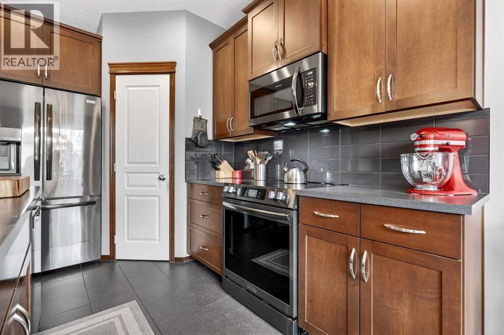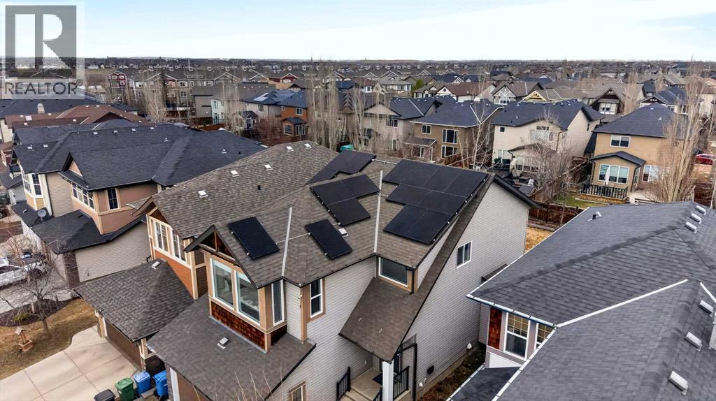 *Open House Sunday Apr 19, 1:30-3:30pm* Welcome to this warm and welcoming 2-storey family home nestled in the desirable lake community of Auburn Bay. This beautifully maintained residence offers 3 spacious bedrooms, 2 full bathrooms, a convenient half bath, upper level bonus room, along with a double attached garage. With energy efficiency in mind, it features solar panels that generate over 7,500 kWh of electricity each year. Also, triple-pane windows with UV protection for superior insulation against both heat and sound (installed 2024 w/ 25 year warranty), black-out shades on all west-facing windows & central air conditioning. This home even provides a comprehensive 8-camera Lorex self-monitoring home security system. As you enter through the grand two-storey high foyer, you’re greeted by soaring 9 foot ceilings that flow throughout the main level. The open concept layout seamlessly connects the living, dining, and kitchen, all brightened by large windows that fill the home with natural light. Ceramic tile flooring runs throughout the main, with a rich hardwood accent in the living area. The heart of the home is the spacious kitchen, complete with abundant cabinetry, a stylish tile backsplash, walk-in pantry, and premium dark stainless steel Frigidaire appliances installed in 2024. A large central island provides extra workspace, a stainless steel sink, plenty of storage, breakfast bar, and elegant pendant lighting. The adjacent living area features a cozy gas fireplace, while the dining space opens directly onto the spacious deck that’s ideal for summer BBQs or watching the kids play in the yard. The deep backyard is nicely landscaped with established trees and bushes, garden beds, fire pit, and a storage shed. A 2-piece powder room and convenient main floor laundry room complete this level. Upstairs, the primary bedroom is a peaceful retreat with a large window, a luxurious 5-piece ensuite bathroom boasting double sinks, a deep soaker tub, a walk-in glass & tile shower, beautiful tile flooring, and an expansive walk-in closet. Two additional good-sized bedrooms share a 4-piece bathroom with tile flooring, a tub/shower with tile surround, and built-in shelving for linens and storage. You’ll also love the sunny bonus room with large west facing windows, flooded with natural light and perfect for a home office, play area, or cozy media space. The unfinished basement offers a blank canvas with roughed-in bathroom plumbing, ready for your personal touch. Located in central Auburn Bay, this home sits peacefully away from highway noise while still benefiting from bus routes and regular snowplowing. It’s a vibrant lake community centered around a stunning 43 acre freshwater lake - offering access to year round fun including swimming, kayaking, fishing, and winter ice skating. With a 5 minute walk to four different schools and numerous parks, plus quick access to the popular Dog Park and scenic Greenway trails, you’re also just a short drive from South Health Campus. (id:55577)