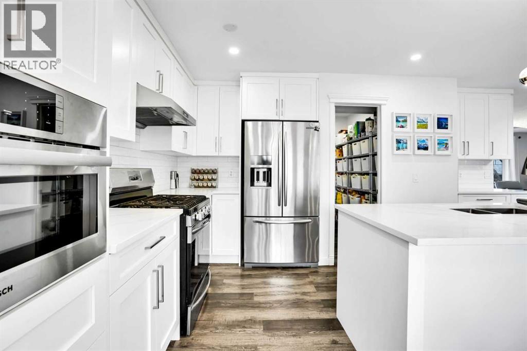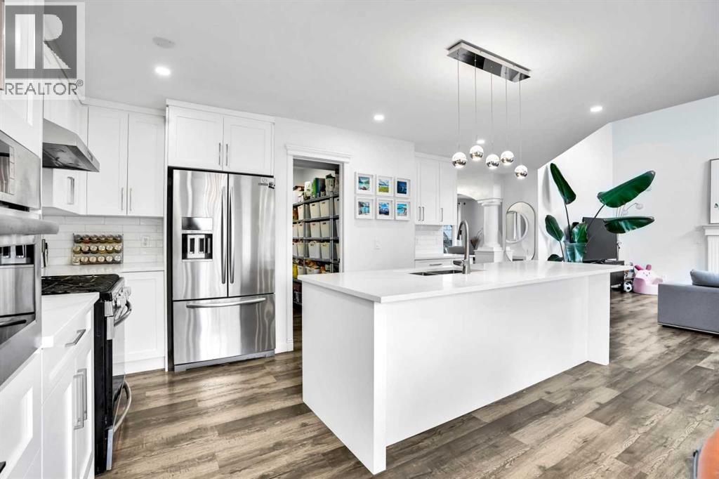 Modern renovation (2022) + walk zone of highly rated schools + 18-feet ceiling + south facing backyard + epoxy garage flooring. Welcome to this modern, smoke-free, and pet-free two-storey home in the highly sought-after SW community of Springbank Hill. Thoughtfully upgraded and meticulously maintained, this residence offers a bright, spacious, and functional floor plan filled with natural light throughout.The main floor greets you with a large foyer and a versatile flex room that can serve as a home office, formal dining area or entertainment room. At the heart of the home is the impressive spacious family room with soaring 18-feet ceilings and a cozy fireplace. The south-facing backyard floods the living space with sunshine, perfect for plant lovers. The beautifully renovated kitchen boasts an extra-large island, modern cabinetry, a convenient walk-through pantry, and upgraded appliances, complemented by a dining area that opens to the fully landscaped backyard.Upstairs, the generous primary suite features a spacious walk-in closet and a beautifully updated ensuite. Two additional well-sized bedrooms, each with unobstructed views, complete the upper level. The open basement provides endless possibilities for your personal touch and future development.Additional highlights include a large lot with ample space for gardening, a newly stained deck, and epoxy-coated garage flooring. New Flat ceilings, tasteful finishes, and recent upgrades create a fresh, modern feel.Conveniently located near 69st LRT station, Aspen Landing and Westside Rec Centre, this home is within the walk zone for the highly rated Griffith Woods (K–9) and Ernest Manning High School (9–12), and close to top schools including Webber Academy, Rundle College, Roberta Bondar, and Menno Simons (walking distance). Outdoor enthusiasts will also enjoy nearby green spaces such as Elmont Park (walking distance), Battalion Park, and Griffith Woods Park. Just 15 minutes from downtown and 45 minutes from th e mountains, this home offers the ideal balance of city convenience and quick weekend getaways. (id:55577)