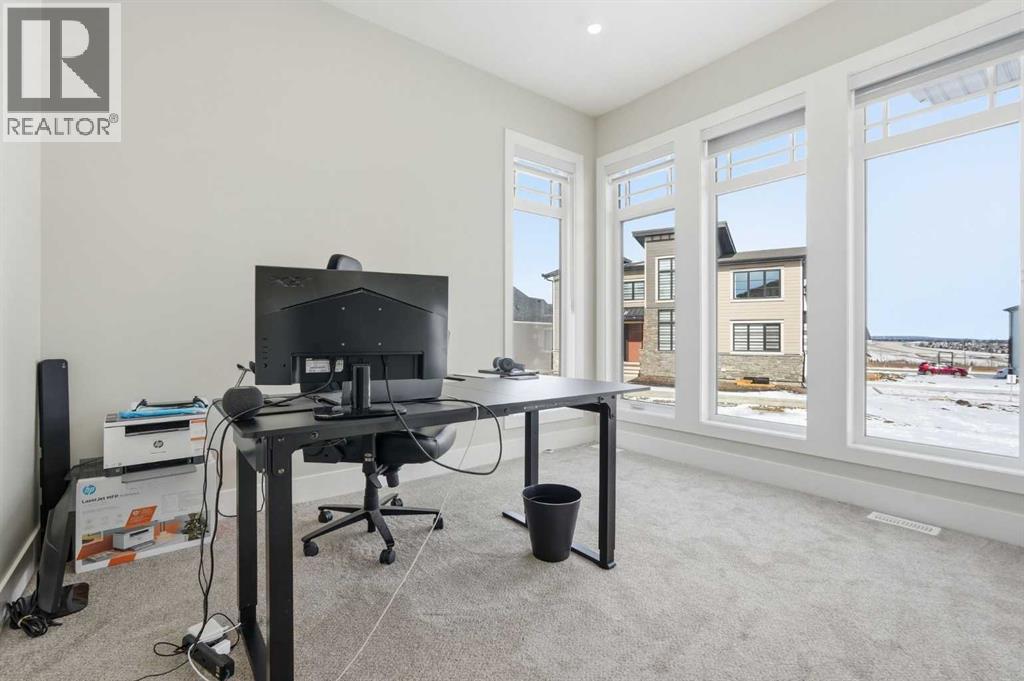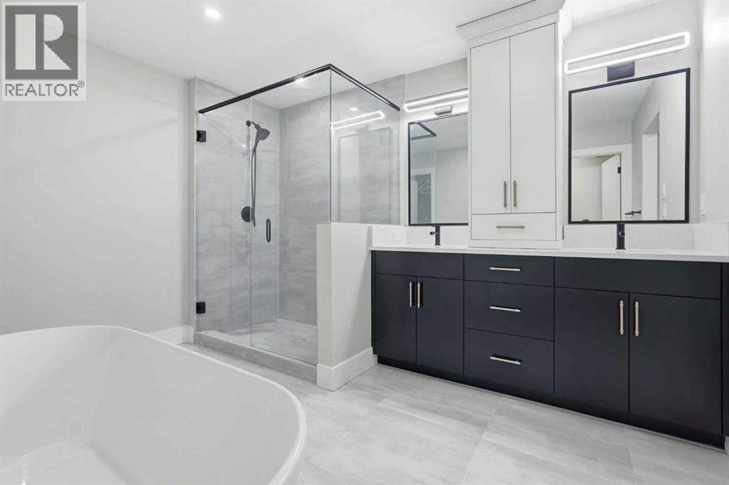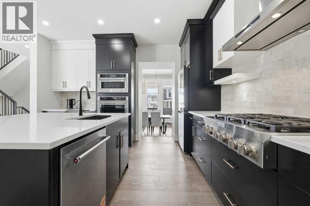 Discover your dream home in this 2025 build Foursquare style design, blending timeless character with a practical layout, thoughtful details, and PARK-FRONT Living! Located in one of Calgary's newest community, Alpine Park, this home features a symmetrical design, 5 BEDROOMS and a welcoming covered front porch, making it a perfect spot to relax while watching the kids play in the front park. With over 3,500 sf of finished space, this layout is both functional and beautiful. The exterior is finished with HARDIE BOARD siding and brick, while inside, warm hardwood floors, and elevated ceilings bring comfort and style together. The kitchen is fitted with quartz counters, a spacious potential walk-through pantry, stainless steel appliances including a GAS RANGE & built in oven, it flows seamlessly into the living room featuring expansive windows allowing the space to fill with natural light, highlighted by a stunning brick wall and gas fireplace. The semi-formal dining room with 10' ceilings makes for a more intimate overall dining experience with family/friends. Rounding out the main floor is the stunning office/flex room with four large windows with great views of the park. Upstairs offers three generously sized bedrooms, and a bonus room - for gathering or retreat. The primary suite is a standout, complete with a freestanding tub, large tile shower, double vanities. It also features an impressive walk-in closet, and a thoughtful layout that adds everyday ease and flow. The fully finished basement expands the living space with two additional spacious bedrooms, 4pc bathroom, and a rec/media room. Additional highlights include a side covered porch w/ bbq gas line, REAR ATTACHED DOUBLE GARAGE, and the Alberta New Home Warranty. Plus easy access to the mountains, via Stoney trail, and just minutes from Costco, shopping, parks, schools, dining, and scenic walking paths! (id:55577)