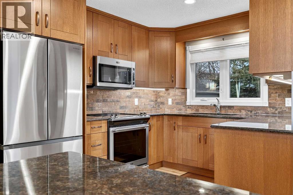 Open house Saturday Feb 14 - 1:00pm to 3:00pm, Sunday Feb 15 - 2:00pm to 4:00pm! Opportunities like this don’t come up often in Lynnwood's highly sought-after Lynnview Ridge. Sitting on a ridge-facing lot with sweeping, unobstructed views of the Rocky Mountains and Bow River valley, this updated charming bungalow offers a rare chance to own in one of the community’s most coveted locations. Homes along this stretch are seldom available, and it’s easy to see why—steps from the Bow River pathway, minutes to downtown, and surrounded by parks, schools, and everyday amenities. Inside, the main level welcomes you with a generous front entry and gleaming hardwood floors that carry throughout the principal rooms. The open-concept living and dining area is warm and inviting, anchored by a cozy gas fireplace framed by a classic brick feature wall. Large windows capture the mountain panorama, filling the space with natural light. The kitchen has been tastefully updated with granite counters, stainless steel appliances, tile backsplash, a large island with built-in storage, and refreshed cabinetry—perfect for anyone who loves to cook or entertain. Three bedrooms sit on the main level, including a spacious primary suite with a walk-through closet that connects to the second bedroom, offering flexibility for a nursery, office, or dressing room. The bathrooms have been modernized, including a convenient 2-piece ensuite. The fully finished basement expands your living space with laminate flooring throughout, a large recreation/family room, two additional flex rooms, a full bathroom with a jetted tub, and a dedicated laundry area. Whether you need hobby rooms, guest space, or a home gym, the lower level adapts easily to your lifestyle. Outside, the property continues to impress. The large backyard is fully landscaped and enclosed with clean white vinyl fencing—ideal for kids, pets, or simply enjoying the outdoors. There is a spacious concrete patio area perfect for those summer bbq's . The oversized detached double garage provides excellent parking and storage. The lot itself is generous, offering room to garden, relax, or even expand outdoor living spaces. Additional updates include newer asphalt shingles and central air conditioning for year-round comfort. Living in Lynnview means you’re moments from the Bow River pathway system, Lynnwood Ridge Park, off-leash areas, local shops, and quick access to major routes. It’s a peaceful, established neighbourhood with a strong sense of community, yet close enough to downtown Calgary to keep your commute short and simple. A well-kept bungalow with views like this is a rare find—this is one you’ll want to see in person. (id:55577)