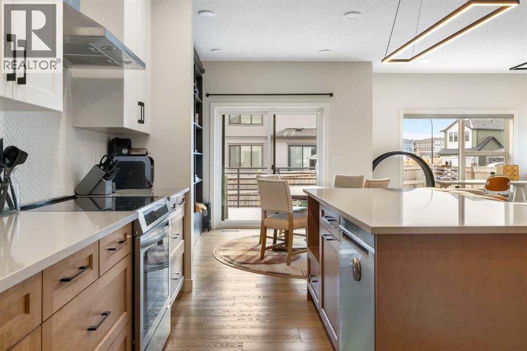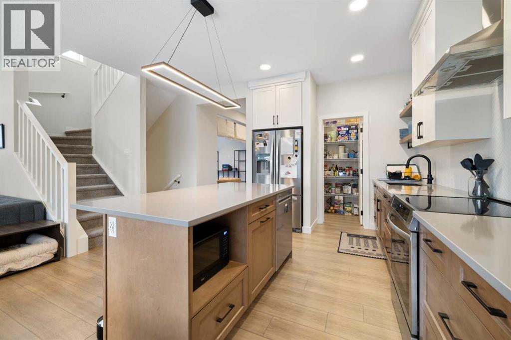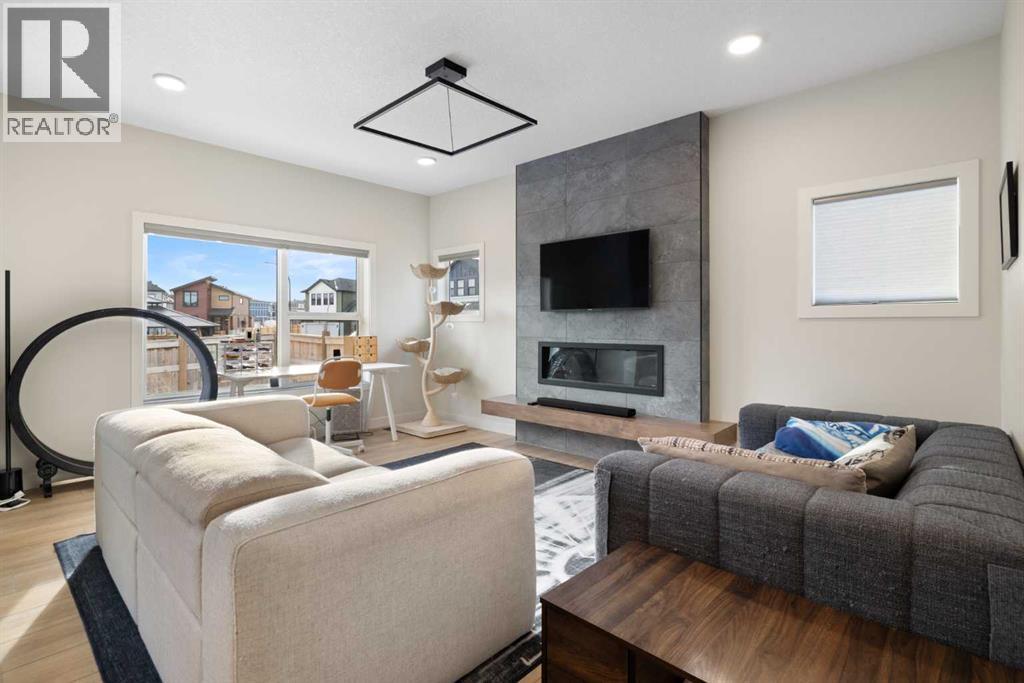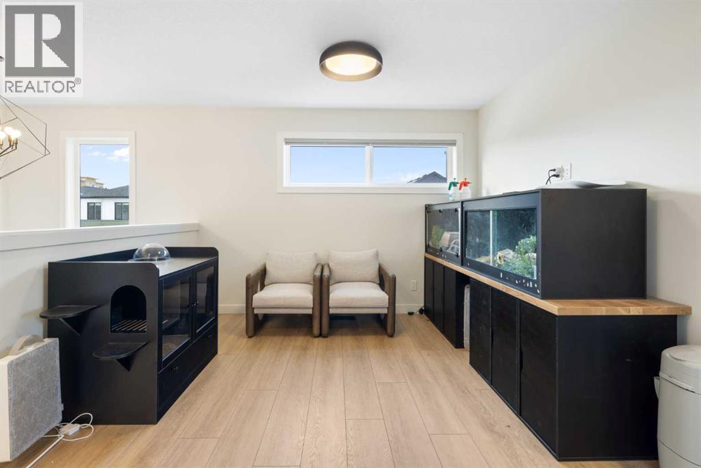 HIGHLIGHTS: 2024 Built, Fenced South-Facing Corner Lot, Unique Unobstructed Kitchen Island, Bright Living Space, Carpeted Bedrooms, Large Windows throughout the house, Finished Basement Stairwell, 5-Piece Primary Suite with Laundry Access, Double Attached Garage. WRITEUP: This 2024-built Cardel Home offers an exceptional opportunity to own a modern home on a premium, sun-drenched corner lot in the community of Silverado. Spanning 2,132 square feet of bright, open-concept living space. The interior is defined by massive southern-facing windows that invite natural light throughout the day. The gourmet kitchen is a focal point of the home, featuring an expansive, unobstructed island and a unique sink placement that balances aesthetics and functionality. Upstairs, the primary retreat features a five-piece spa ensuite and a clever walk-through closet that provides direct access to the second-floor laundry room. The home features a finished basement stairwell, making the main-floor living space more inviting, and leads down to a full, unfinished basement, providing a blank canvas for your future development and storage needs. Outside, the south-facing deck and fenced yard provide the perfect setting for outdoor living, all while being ideally located near the Somerset LRT, local amenities, and the extensive pathway systems that make Silverado a standout South Calgary destination. (id:55577)