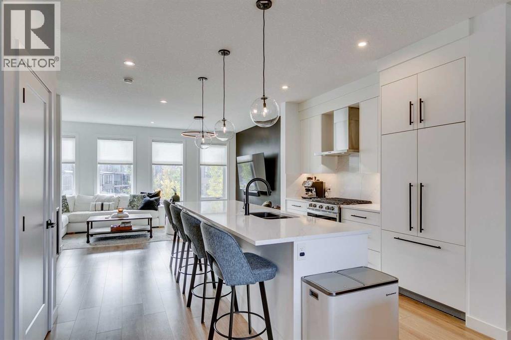 EXCEPTIONAL VALUE IN CALGARY’S PRESTIGIOUS SOUTHWEST! Open house Saturday Oct 18th from 12PM-2PM. Welcome to this elegant 3-storey brick townhome by TRUMAN Homes. Perfectly positioned on the outer edge of the development, this residence offers enhanced privacy and serene forest views and a glimpse of the mountains from both the living area and the primary suite. The walk-up front entrance provides a warm, street-facing welcome designed for a variety of lifestyles - picture crisp fall mornings, coffee in hand, as you step out your front door to your favorite breakfast spot, nearby parks, or the scenic walking paths that define Springbank Hill. Inside, a spacious foyer and the entrance from the oversized double attached garage sets the tone with ample room for daily essentials. On this level, you’ll also find a versatile bedroom or home office. The second level showcases the heart of the home, an open-concept kitchen, dining, and family area designed for both comfort and sophistication. Every detail was considered in this chef-inspired kitchen, featuring a large quartz island with continuous quartz backsplash, gas range, built-in microwave, and panelled refrigerator for a seamless finish. Just off the dining area, step onto a covered patio ideal for year-round grilling and entertaining. The upper-level hosts dual primary suites, each with walk-in closets and private ensuites, along with a convenient upper-floor laundry room. Throughout the entire home, laminate flooring delivers durability and warmth, while matte black lighting and hardware create a cohesive, upscale aesthetic. Experience the perfect blend of luxury, location, and lifestyle -all in one of Calgary’s most desirable communities. (id:55577)