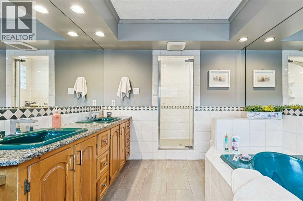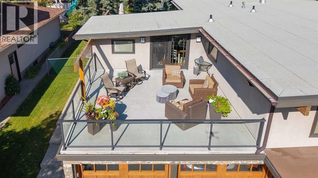 Perfectly positioned on a quiet cul-de-sac in Varsity Village, this exceptional raised bungalow offers a rare blend of privacy, openness, and connectivity. The home faces a large open green space and soccer fields adjacent to École Terre des Jeunes, creating an expansive and unobstructed outlook, while the school grounds begin several yards to the west. The rear of the property backs onto the neighbourhood pathway system—ideal for walking, cycling, and easy access to surrounding green spaces.Extensively renovated, the home features a stunning custom kitchen designed for both daily living and entertaining. Solid wood cabinetry, granite countertops, and premium appliances include a Fisher & Paykel gas cooktop, Bosch double ovens, Miele dishwasher, oversized KitchenAid refrigerator, and a full-size bar fridge. Natural gas hookups to both decks further enhance outdoor entertaining.Two expansive decks extend the living space outdoors. The front deck offers vinyl flooring with glass railing and open views across the green space, while the walk-out rear cedar deck provides privacy, a wind screen, and views of the landscaped yard and pathway beyond. Mature trees and shrubs contribute to the home’s established character.Inside, large windows and exposed wood beams create a bright, welcoming atmosphere and highlight the home’s architectural character. Hardwood flooring on the main level, updated lighting with dimmer controls, generous closets, and multiple living spaces support both comfort and functionality. Two natural gas fireplaces add warmth, while built-in speakers, custom cabinetry, and office desks enhance everyday living.The primary suite features a walk-in closet, blackout blinds, a soaker tub, separate shower, and heated floors. Additional highlights include air conditioning, water softener, humidifier, two forced-air furnaces, a heated oversized double garage with ample storage, and a large storage area beneath the rear deck.Located in Varsity Village, reside nts enjoy generous lot sizes, excellent schools at all levels, proximity to the University of Calgary, Market Mall, University District amenities—without the density—and convenient west-side access to downtown and the mountains. Welcome home! (id:55577)