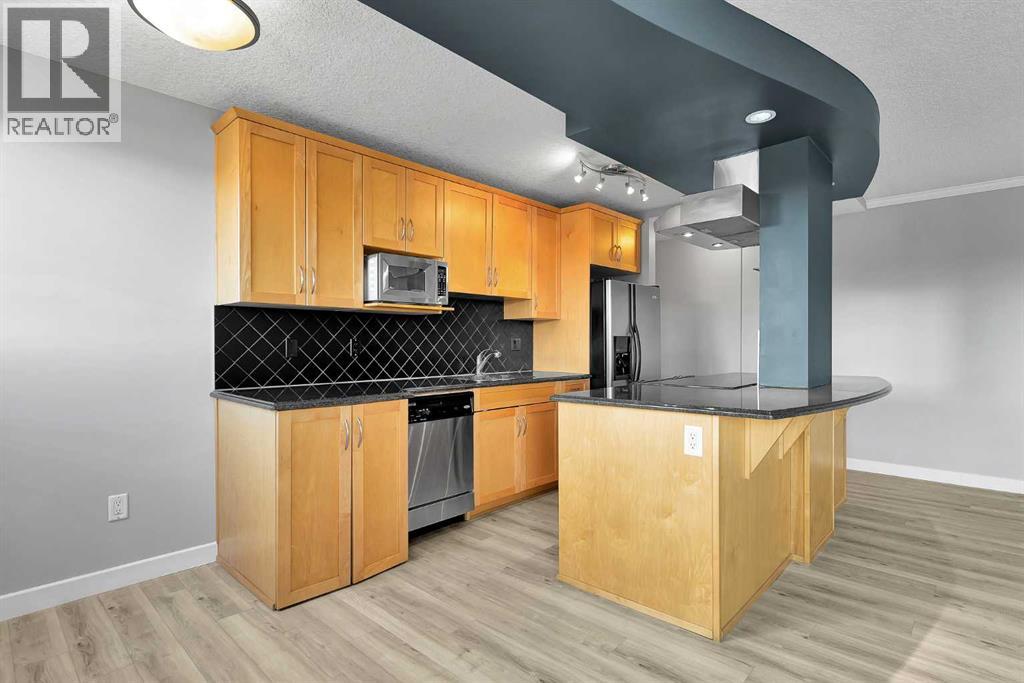 Welcome to this TOP-FLOOR, move-in ready 2-bedroom condo offering exceptional value in the heart of Calgary’s vibrant Beltline. Enjoy fantastic views overlooking Thomson Family Park—a beautifully redeveloped inner-city green space with walking paths, open lawn areas, a playground, and seasonal skating—right outside your door. For buyers looking to secure a well-located inner-city home with strong livability and long-term potential, this is a standout opportunity. This updated, south-facing END unit features a bright and functional 2-bedroom, 1-bath layout with new luxury vinyl plank flooring throughout, creating a clean, modern feel the moment you walk in. The top-floor location offers added privacy and quiet—no neighbours above—making it an ideal choice for professionals, first-time buyers, or investors. Enjoy the convenience of in-suite all-in-one laundry and a layout designed for comfort, with well-defined living and dining spaces that feel both practical and inviting. Located in the Biltmore, this is a solid, well-established concrete building with a track record of long-term ownership. Just steps from 17th Avenue SW, you’re immersed in one of Calgary’s most dynamic and walkable neighbourhoods, with restaurants, cafés, everyday amenities, transit, and the downtown core all within easy reach. Condo fees include heat, water, and electricity—offering simplified monthly budgeting and greater financial predictability. Call to book your private viewing today! (id:55577)