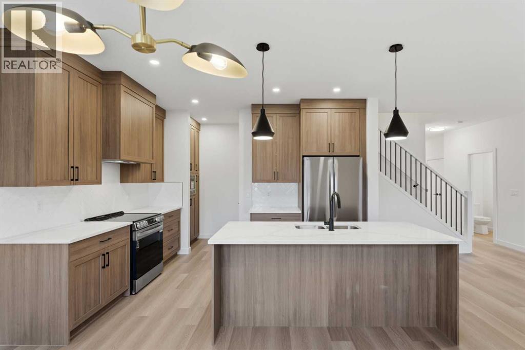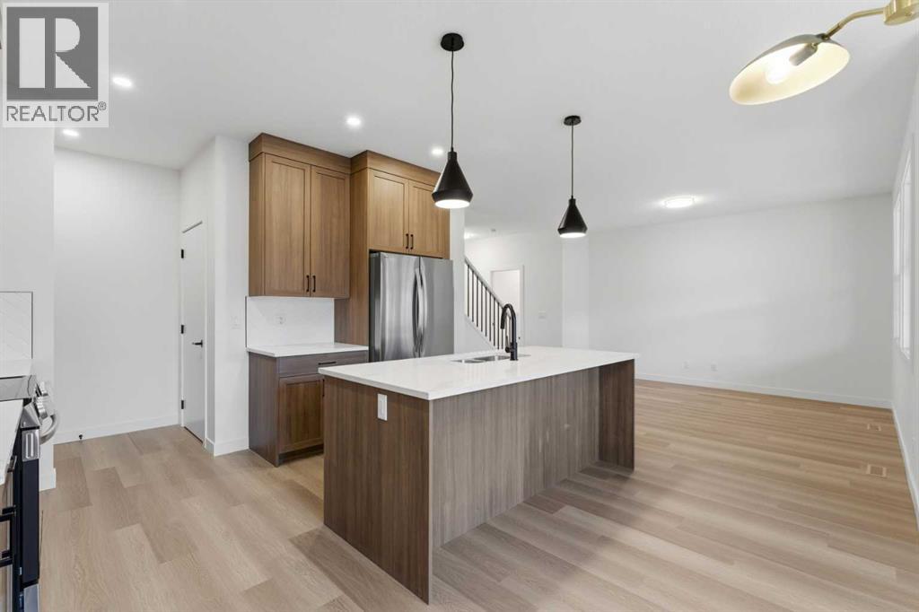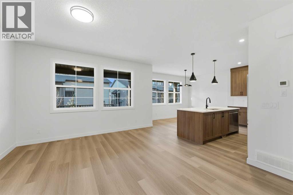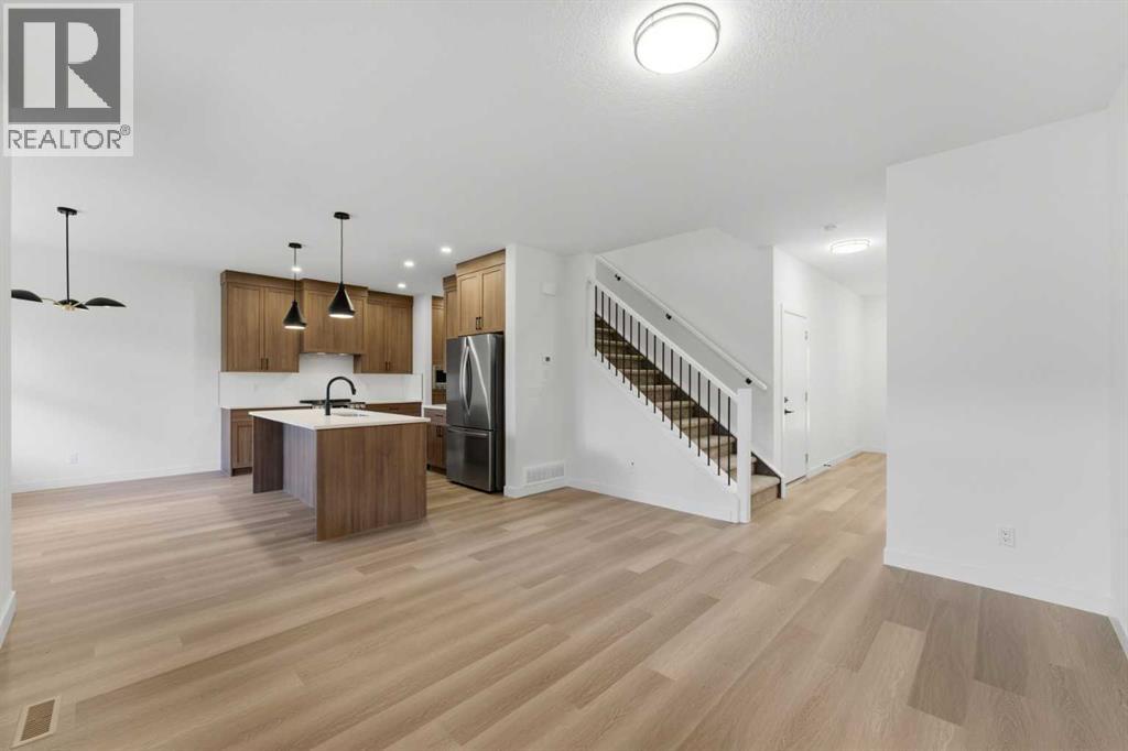 Welcome to luxury and convenience built by Vesta Properties - in the heart of Airdrie’s award-winning community of Cooper’s Crossing. This brand-new beautifully crafted interior-unit townhome combines everyday comfort with smart design. Step inside to discover a bright, functional main level that includes a stylish gourmet kitchen with an oversized island and stainless steel appliances, a cozy family room. Upstairs, a sun-soaked bonus room offers the perfect space to unwind, work from home, or enjoy family time. Just off the bonus area, you’ll find two additional bedrooms, a full bathroom, and a convenient upstairs laundry space ( No washer and dryer in unit). Also you will find your primary bedroom, which is a retreat complete with vaulted ceilings and a spa-inspired ensuite. Enjoy the added luxury of 9-foot ceilings on both the main floor and the basement, creating a spacious and airy atmosphere throughout. Summer evenings are made better on your covered west-facing balcony, with a gas line for your BBQ and views of the landscaped green space, offering a peaceful, family-friendly backdrop. Additional highlights include a double attached garage, modern contemporary exteriors, and fully landscaped yards designed for ease and curb appeal. And here’s the best part... These homes offer a true Lock & Leave lifestyle—experience it at its best! Whether you're off traveling, managing a busy career, or simply done with yard work and snow removal, you can lock the door and go. No stress. No fuss. Just effortless, carefree living. Book your exclusive tour today! (id:55577)