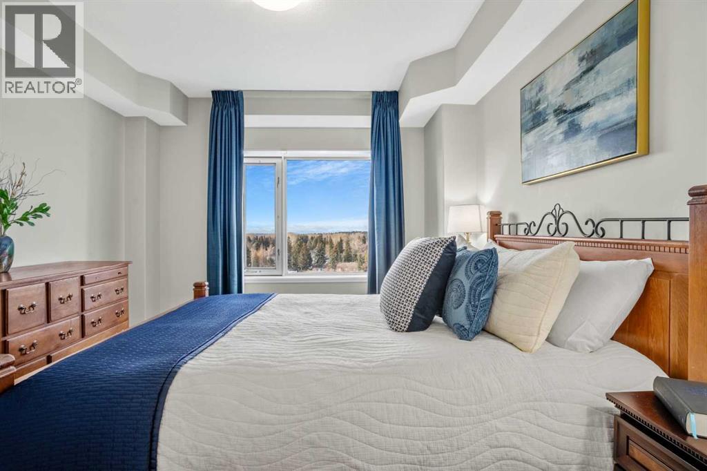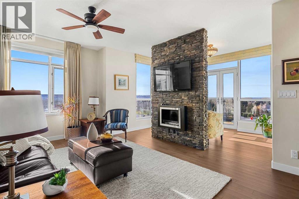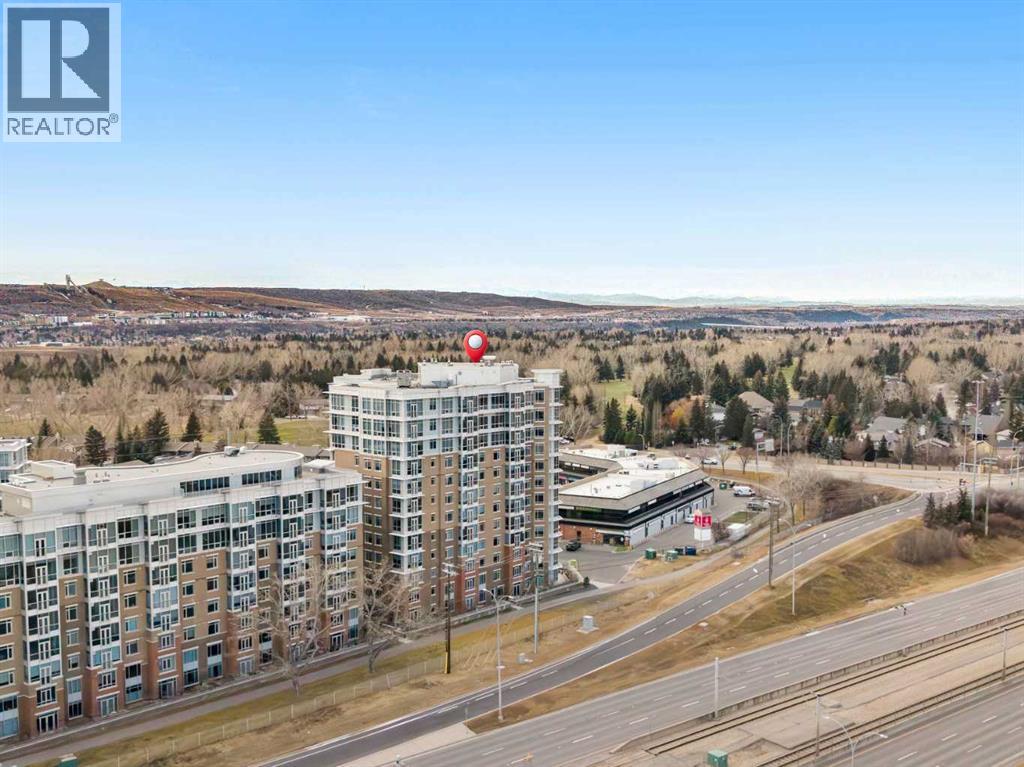 OPEN HOUSE THIS SUNDAY NOVEMBER 16 from 2 PM to 3:30 PM!! Experience elevated living at The Groves of Varsity—ideally located steps from the LRT, Market Mall, the University, hospitals, and the Silver Springs Golf & Country Club.This spacious 1,266 sq ft corner unit faces south and west offering UNOBSTRUCTED MOUNTAIN VIEWS , 9' CEILINGS, hardwood flooring, A/C, and a striking STONE FEATURE WALL with a Bioflame fireplace. A bright sunroom adds the perfect spot to work or unwind, framed by FLOOR-TO-CEILING WINDOWS that capture incredible sunsets, with REMOTE CONTROLLED HUNTER DOUGLAS BLINDS for easy light control and privacy.The kitchen features QUARTZ COUNTERS, STAINLESS appliances—including a NEW DISHWASHER (June 2025)—and ample cabinetry. Both bedrooms are generously sized, each with its own walk-in closet, with the primary suite also offering a walk-through to a private ensuite with dual sinks and a FREESTANDING SOAKER TUB. You’ll appreciate the large IN-SUITE STORAGE ROOM and SEPARATE LAUNDRY AREA for everyday convenience.Enjoy resort-style amenities: a full FITNESS CENTRE, SAUNA, SOCIAL LOUNGE, landscaped courtyards, and rooftop terraces. Complete with titled underground parking and an assigned STORAGE LOCKER.Professionally managed with proactive long-term planning and recent improvements including common area refreshes, parkade upgrades, and enhanced security systems. A truly easy, lock-and-leave lifestyle in prestigious Varsity Estates. (id:55577)