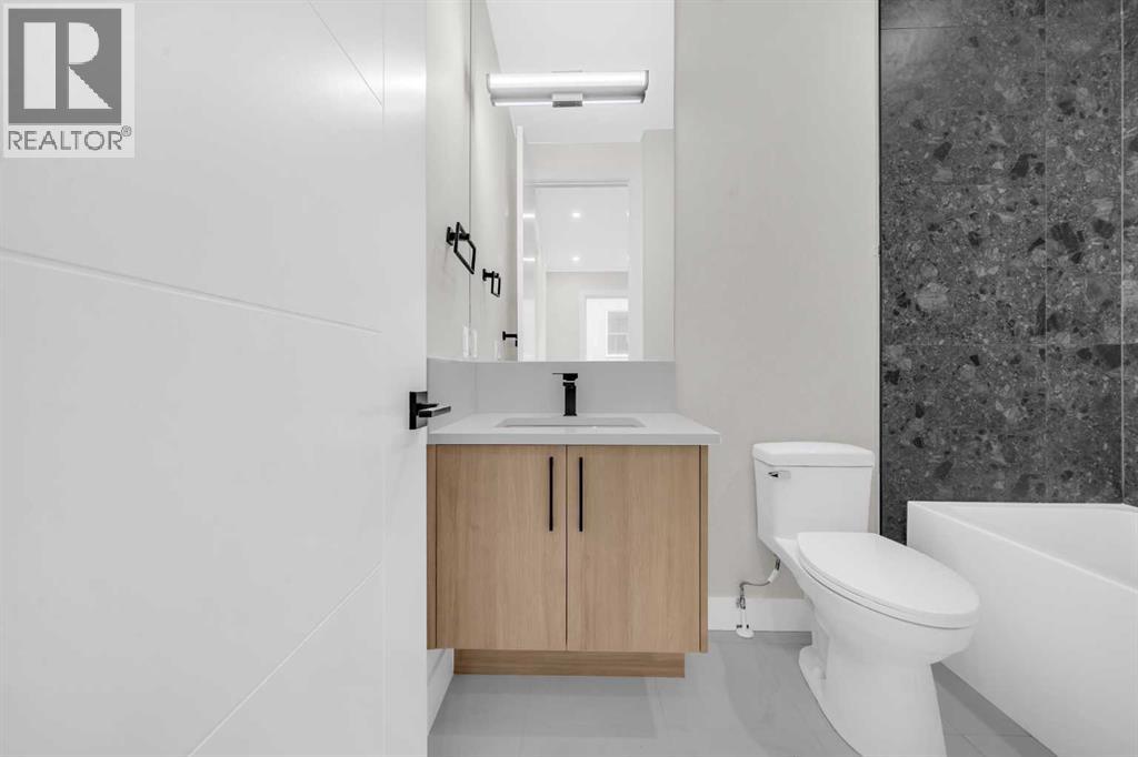 Calling all Investors! Looking for a brand new SXS Duplex with legal basement suites? This 8114 unit can be sold together with attached 8112 to provide an excellent cash flowing opportunity with the convenience of having all construction materials and components still under New Home Warranty. Both 8114 and 8112 are rented on long term leases with tenants who would prefer to stay. This unit rents monthly at $3100 for the upper suite + 70% utlitles and $1250 + 30% utilities for the lower suite. Amazing home boasting elevated design and incredible functionality, featuring a legal 2-bedroom basement suite and a sunny south exposed front with expansive valley views from the upper floor. Every detail was thoughtfully selected, from the wide-plank modern floors to the curated lighting and premium finishes throughout. Step inside to a bright, open-concept main floor with 10' ceilings, oversized windows and neutral tones that create an airy, inviting vibe. The large, well-lit dining room is perfect for bigger families and/or hosting guests and shows off a vibrant and colourful feature wall, which flows seamlessly into a designer kitchen featuring modern warm toned cabinetry, paired with beautifully coloured glass backsplash, quartz countertops, matte black hardware, a huge walk-in pantry with built-in shelving, and a perfect-sized center island with bar seating with more natural wood tones, bringing everything together beautifully. The upgraded stainless steel appliance package includes an oversized sub zero fridge with french doors, a gas cooktop with stylish hood fan, and a thoughtfully placed wall oven and microwave. The rear living room is wide and spacious featuring additional large windows plus a cozy gas fireplace with stone surround and custom mantle, and which leads you out to the large backyard, which features an oversized concrete pad, perfect for end of the day BBQ's and lounging. An enclosed mudroom with a large closet area and a sleek powder room that comes wit h a raised matte black sink complete the mainfloor. Upstairs contains the three large bedrooms, all with trayed ceilings, including the primary bedroom which is a true retreat that features a large walk-in closet with several custom built-ins plus a hotel like ensuite. Enjoy heated tile flooring, dual sinks, quartz countertops, matching tile surrounds, plus a free standing soaker tub and an oversized glass shower with rain shower head and roughed-in for steam. The upper laundry room comes with a sink, quartz countertops, additional wood toned cabinetry, and is situated beside the stylish full bathroom which features a tiled tub/shower combo. Downstairs features the thoughtfully designed legal 2 bedroom suite and features 9' ceilings, luxury vinyl plank flooring, wonderfully warm toned cabinetry, stainless steel appliances and lots of pot lighting. A full bathroom with elegant tile is also featured plus a dedicated laundry room, separate side entrance and storage, making this perfect for rental income. (id:55577)