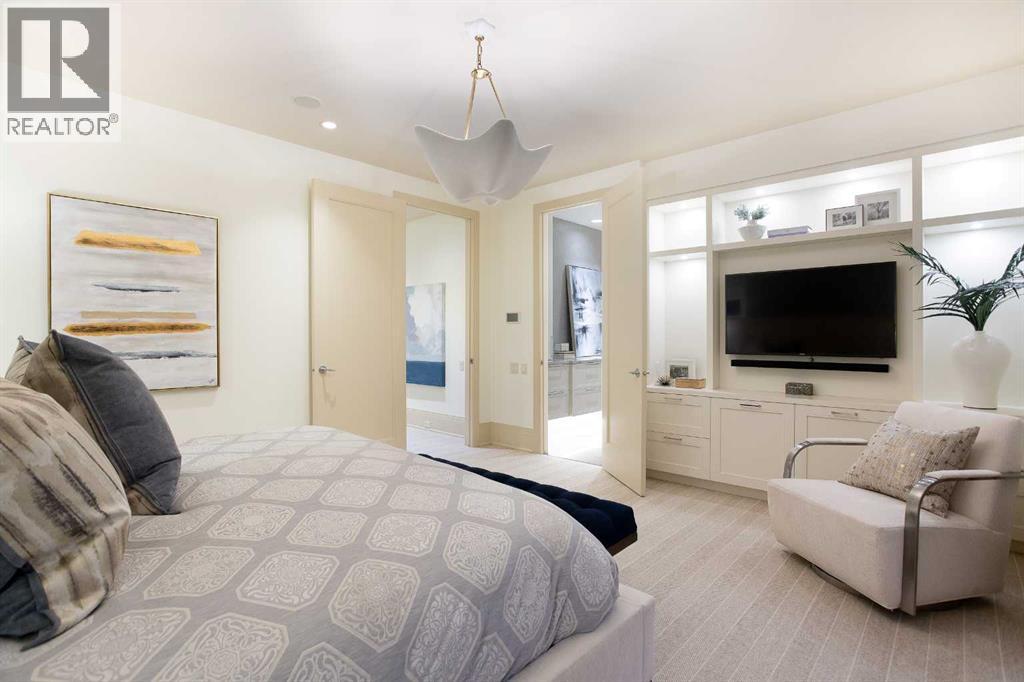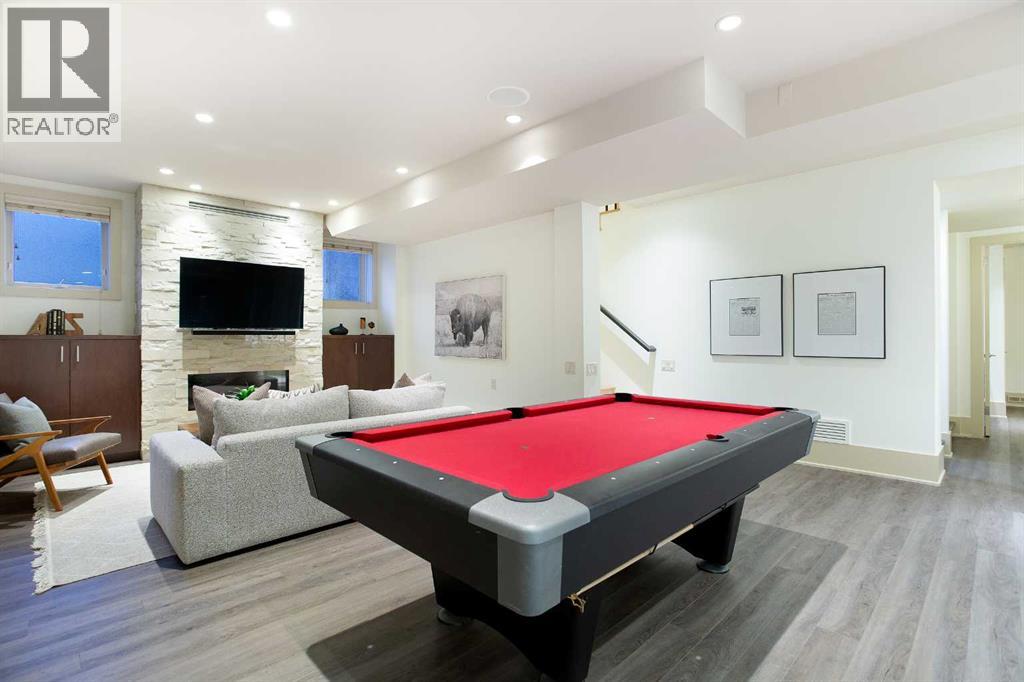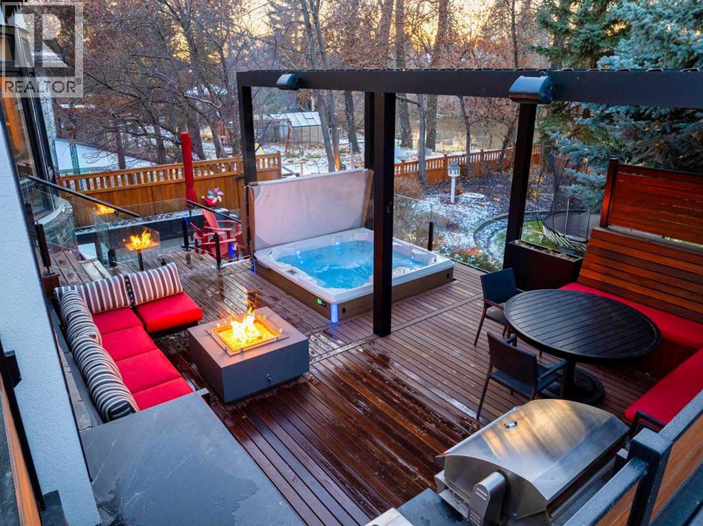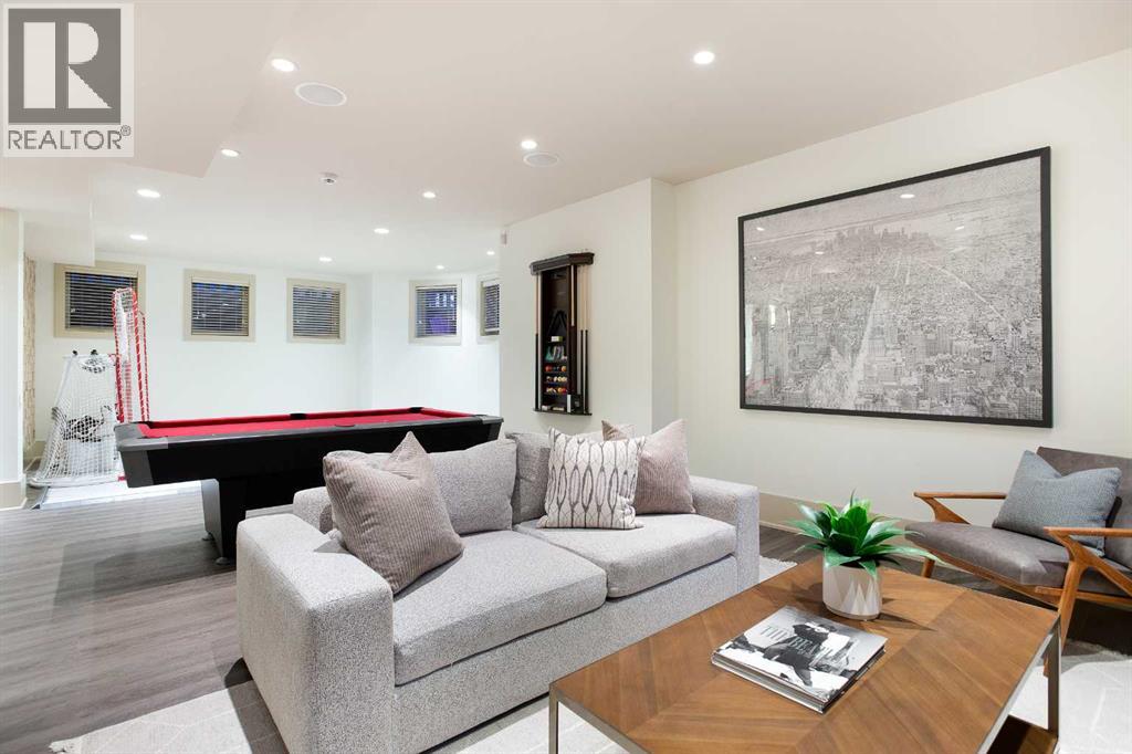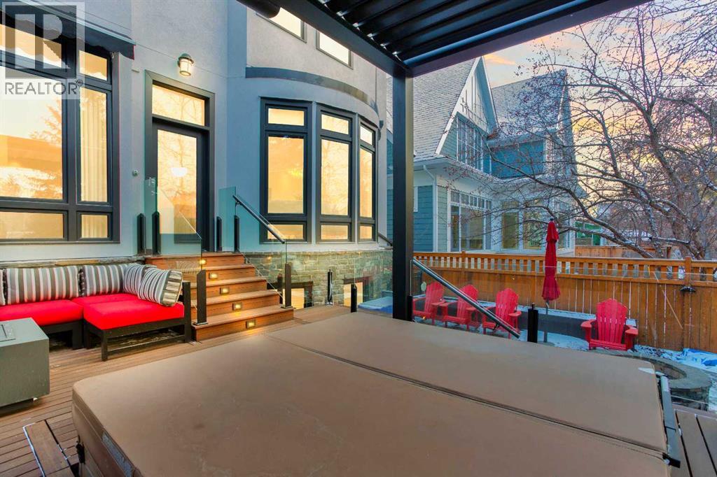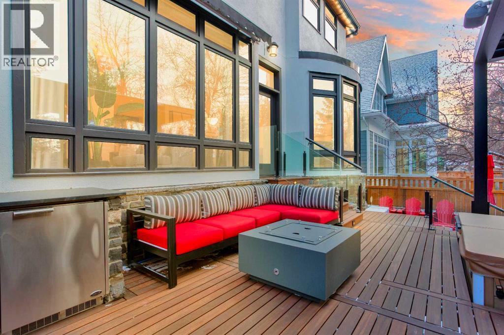 An extraordinarily rare Elbow River–backing estate in the heart of prestigious Rideau, offering an unparalleled blend of natural beauty and inner-city sophistication. With a coveted south-facing orientation capturing sunlight year-round, the home is framed by tranquil river vistas and direct access to scenic walking and cycling paths, delivering a private, resort-like setting just moments from downtown Calgary. Surrounded by premier schools, parks, tennis courts, skating rinks, and recreational amenities—and just a short walk to the Glencoe Club—this is refined urban living at its finest.The home has been meticulously and comprehensively renovated, honouring its original architectural proportions while elevating every space with timeless craftsmanship and luxury finishes. At the heart of the home, the chef’s kitchen features premium Wolf and Sub-Zero appliances and is designed for both elevated entertaining and effortless daily living. A walk-through butler’s pantry includes a built-in drawer microwave and a large warming drawer, perfectly suited for seamless food service when entertaining.Walk through the pantry to the formal dining room, generously sized to accommodate 10–12 guests and set the stage for elegant entertaining. On the opposite side, the library/formal living room with a fireplace offers a refined and intimate retreat, creating a balanced and sophisticated flow across the main level. The main floor also features a warm and inviting family room with a gas fireplace, a discreetly positioned half bath, and exceptional sightlines throughout. Bespoke lighting and beautifully refinished floors further enhance the atmosphere of warmth and understated elegance.Upstairs, the primary suite is a true private retreat, complete with a spa-inspired ensuite and steam shower. Two additional bedrooms, a full bathroom, and a walk-in laundry room complete the upper level. These spaces are complemented by a fourth bedroom with a full bathroom and a second family ro om with a fireplace on the lower level, offering exceptional flexibility for family living, guests, or multigenerational needs.Outdoor living is nothing short of exceptional. A welcoming front porch with a “morning terrace” provides the perfect spot to enjoy coffee in the early sun, while the fully curated riverfront patio features a fire pit, infrared heaters, hot tub, BBQ, minibar, and motorized louvres—an intimate sanctuary for quiet evenings or sophisticated gatherings overlooking the Elbow River.Practical luxury is seamlessly integrated with a snow-melt driveway, whole-home standby generator, comprehensive flood-mitigation systems, GEM exterior lighting, and app-controlled garage access, ensuring comfort, security, and peace of mind year-round. This is a once-in-a-generation opportunity to experience true riverfront living—where privacy, prestige, and proximity converge—in one of Calgary’s most established and coveted communities. Open House, Saturday, February 7th 12:00-2:00pm (id:55577)