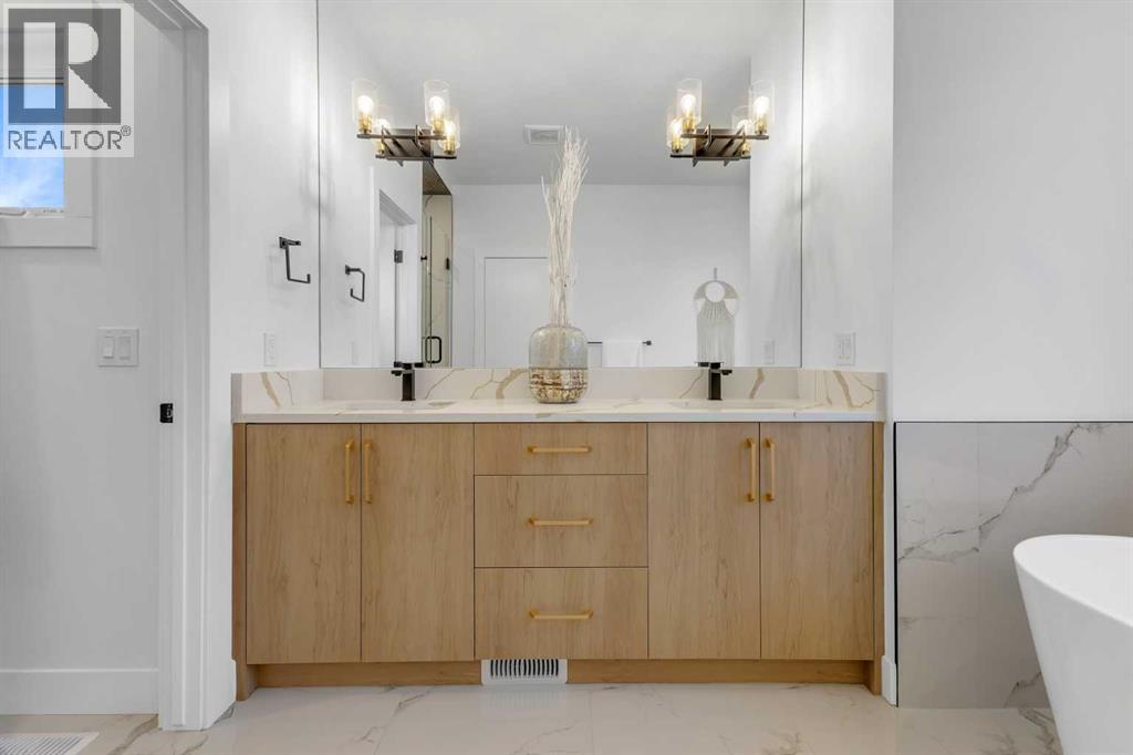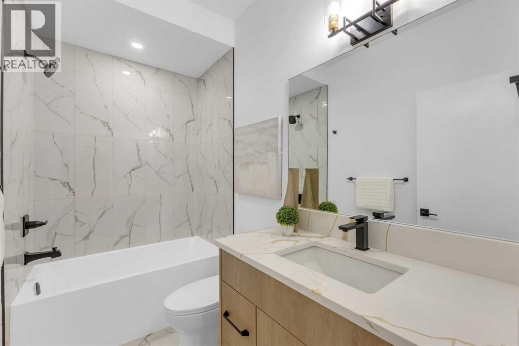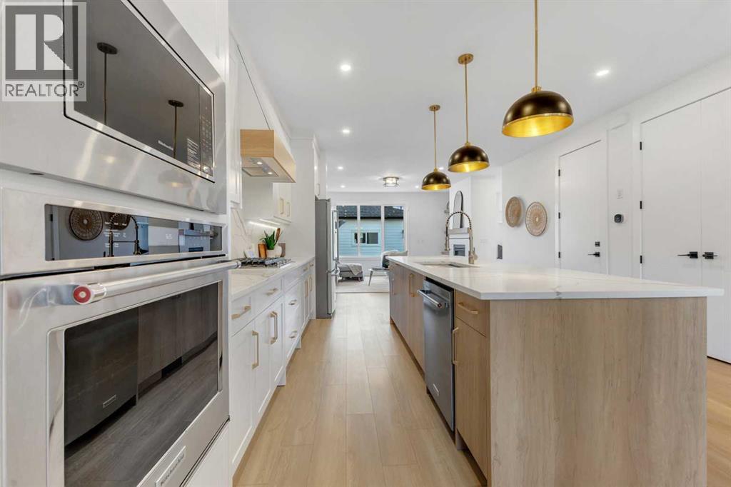 Welcome to this beautifully designed luxury home in the heart of BOWNESS on an OVERSIZED 26.5 WIDE LOT with 2170+SQFT & Sunny SOUTH BACKYARD. Bowness is one of Calgary’s most charming and rapidly evolving neighbourhoods! Offering a perfect blend of urban convenience and nature-filled escapes, this home puts you within minutes of Bowness Park, Shouldice Athletic Park, and the Bow River pathways, making it ideal for outdoor enthusiasts. Whether you enjoy morning jogs along the river, summer picnics, or winter skating, it’s all just a short stroll away. Located in a central location you’ll have easy access to a mix of local favourites like Angel’s Drive-In, Cadence Coffee, and Seasons of Bowness Park, along with essential shopping near by in the newly developed MainStreet Bowness, and Montgomery’s Market Mall. Need a weekend getaway? You’re just minutes from Highway 1, offering a quick escape to the mountains. Downtown Calgary is also easily accessible, making commuting seamless. Inside, this stunning and spacious semi-detached home is thoughtfully designed with high-end finishes and a functional layout. The open-concept main floor is anchored by a sleek, custom kitchen featuring two-toned cabinetry, quartz countertops, a waterfall island, and stylish gold hardware. A large pantry and built-in storage provide ample space for organization. The living area boasts a gorgeous fireplace with custom shelving, while large windows flood the space with natural light. Upstairs, the primary suite is a serene escape with a spacious layout, a walk-in closet, and a spa-like ensuite featuring a double vanity, a tiled walk-in shower, and a large freestanding soaker tub. Two additional bedrooms, a full bathroom, a bonus room, and a convenient upstairs laundry complete this level. The fully finished basement adds even more functionality, featuring a 2-bed legal suite (subject to final inspection by the city) with a separate entrance. Complete with a modern kitchen, full bath, and larg e living spaces (including an office space) it’s perfect for multi-generational living, guests, or potential rental income. Outdoors, a private SOUTH backyard offers space to relax or entertain, while the double detached garage provides convenience and storage. This home is a rare opportunity to own a brand-new luxury property in one of Calgary’s most desirable communities. Don’t miss out on making it yours, call today to view! (id:55577)