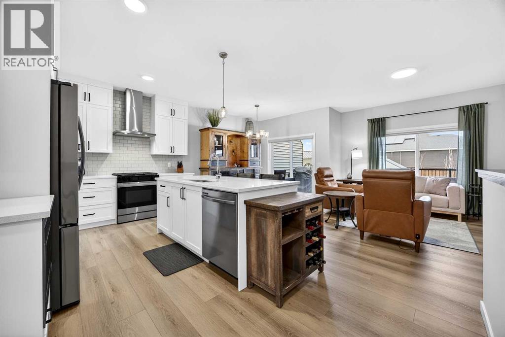 Don’t let the word duplex fool you—this FULLY FINISHED McKee 2024 built BUNGALOW offers almost 2,250 sq ft of developed living space, a 5,000+ sq ft yard, and a truly standout covered OUTDOOR LIVING space rarely found in this style of home. From the moment you walk in, the OPEN CONCEPT main floor with 9' ceilings feels spacious and bright. The FUNCTIONAL floorplan is ideal for both everyday living and entertaining. The mudroom off the garage entrance features convenient MAIN FLOOR LAUNDRY and a WALK THROUGH PANTRY leading into the MODERN KITCHEN, complete with quartz countertops, ceiling-height cabinetry, and a full smart Samsung appliance package upgraded to include a gas range. The primary bedroom offers a 5-piece ensuite and a generous walk-in closet, while the second bedroom—currently set up as an office—is perfectly located at the front of the home beside a SECOND FULL BATH. Down the wide staircase, the FULLY FINISHED basement opens into a MASSIVE rec room with flexible space for a media area, games room, or family retreat. Two additional good sized bedrooms and a THIRD FULL BATH are tucked away for added privacy, and the large mechanical room provides excellent STORAGE options. The basement was completed by McKee with all the same finishes of the main floor for a cohesive design. One of the most impressive features of this home is the outdoor living space—step onto the 16' x 26' composite (Trex) deck covered by a structurally engineered gabled roof with exposed timbers, creating over 400 sq ft of comfortable outdoor entertaining space. If tech is your thing, you'll appreciate the smart appliances, the smart thermostat, the garage door app, and the wired doorbell camera. The high efficiency furnace paired with an HRV system will be appreciated when the utility bills arrive. The yard is already beautifully established with MATURE columnar aspens, perennial plants and shrubs, maintenance-free METAL FENCING, and front flowerbeds ready to bloom each spring. The dou ble attached HEATED GARAGE with a high ceiling adds even more value, offering plenty of room for storage or future built-in organization. Located in Mandalay Estates, this home is steps from the new Independent grocery store and the upcoming Shoppers Drug Mart, while backing onto a pathway system that leads to the community pond. Easy access to Hwy 2A (without crossing railroad tracks) makes commuting simple, and you’re just minutes from Main Street businesses and the popular Carstairs Golf Course. Homes with this level of finish, space, and outdoor living are hard to find, especially at this price point—this one is well worth a look - it's like moving into a brand new build, with remaining New Home Warranty - without the pain of builders and landscaping! Extra bonus points for having the BEST NEIGHBOURS! (id:55577)
