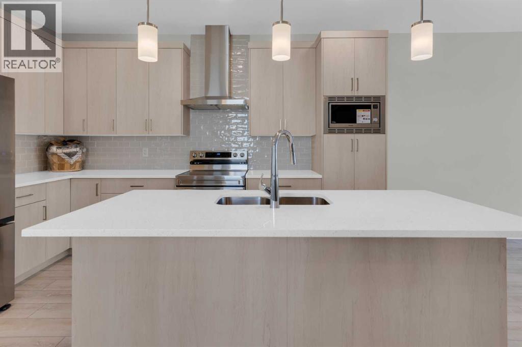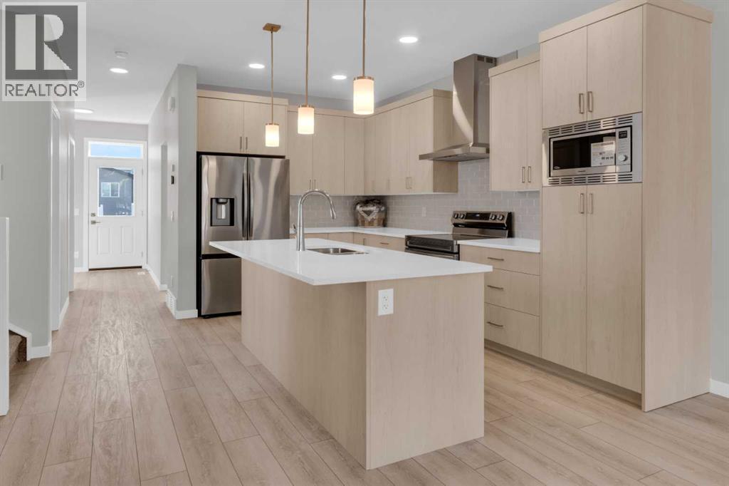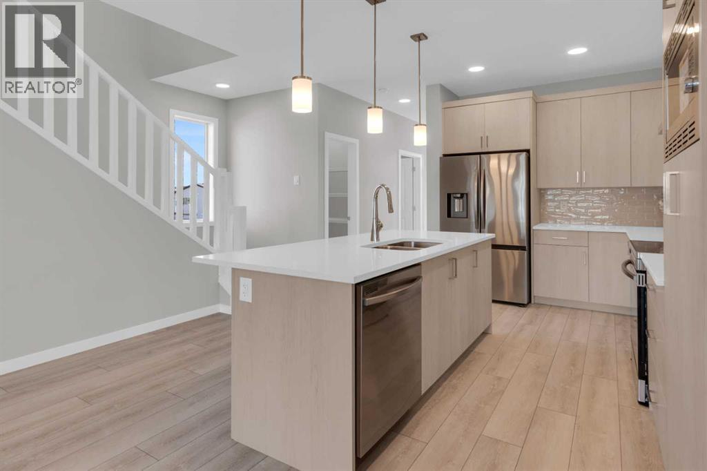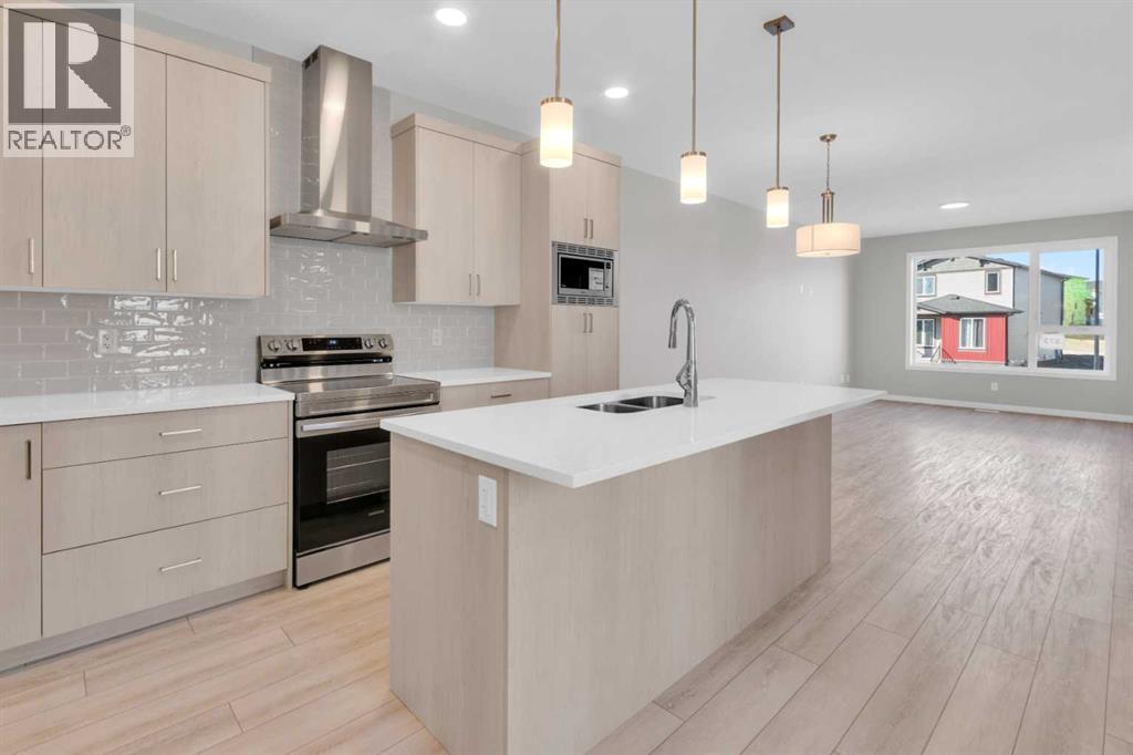 Introducing the COHEN: an amazing, BRAND NEW attached home by EXCEL HOMES offering 1748 SF above grade with a FULLY DEVELOPED, LEGAL SUITE, W/SEPARATE ENTRANCE, TWO BEDROOMS, TWO BATHROOMS AND FULL KITCHEN. Nestled in the vibrant Northeast community of Livingston. Step into a life of luxury and convenience with this stunning residence, where every detail has been meticulously crafted for comfort and style. Enjoy the benefits of living in an established neighborhood that brings a plethora of amenities right to your doorstep, along with swift access to major highways. The COHEN offers a sprawling 1748 square feet of thoughtfully designed living space, perfect for both families and entertaining. The open floor plan, complemented by neutral designer tones, creates a welcoming atmosphere that is both elegant and comfortable. The chef-quality kitchen stands as the heart of the home, equipped with ceiling-height cabinets, two banks of pot/pan drawers, and upgraded stainless steel appliances, including chimney fan, and built-in microwave. The expansive engineered stone countertops, a large island with seating, and a convenient pantry make it a dream kitchen for those who love to cook and entertain. The main floor also features versatile luxury vinyl plank flooring On the main floor you'll also find a FLEX ROOM that can be used as a home office, guest bedroom or playroom. and half bath for convenience.. Ascend to the second level where leisure meets luxury in the large central bonus room featuring vaulted ceilings & pot lighting — ideal for movie nights and family gatherings. The primary bedroom is a true retreat, boasting a walk-in closet and a spa-like 4 Pce ensuite with dual sinks, double wide shower & stone vanity tops. Additionally, two more generously sized bedrooms provide ample space and easy access to the main bathroom. The convenience continues with a laundry room strategically located on the same floor. The possibilities extend into the FULLY DEVELOPED basement - SEPERATE SIDE ENTRY to your LEGAL TWO BEDROOM / TWO BATHROOM BASEMENT SUITE WITH FULL APPLANCE PACKAGE. Your suite is built to upstairs standards & offers TWO bedrooms, TWO FULL BATHS, full kitchen w/lots of storage cabinets, SS appliances, PRIVATE LAUNDRY, vinyl plank flooring. Step outside to a southeast-facing backyard that's perfect for relaxation and outdoor activities & your deck is already built. Don't miss the chance to own this never-lived-in gem with quick possession available. Experience the blend of luxury, comfort, and convenience in Livingston—welcome to your new dream home at the COHEN. This home will include front & back yard sod and a 20x20 gravel parking pad. Also includes complete interior sprinkler system to main and upper floors! There is also a gas line to the bbq at the rear. With over 35 years of experience, more than 15,000 homes built, and 75 awards for design and industry excellence, Excel Homes continues to deliver quality, innovation, and peace of mind (id:55577)