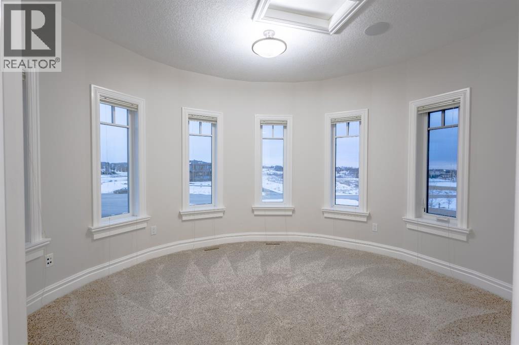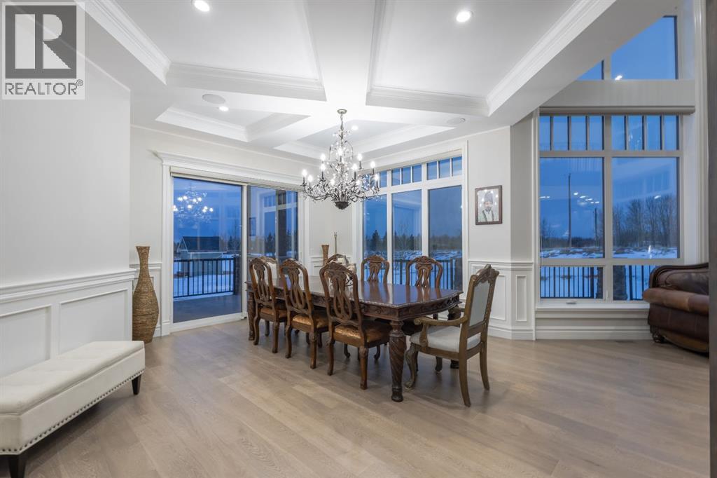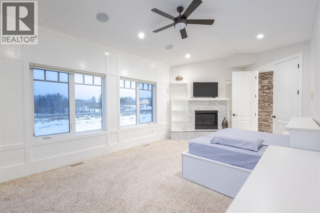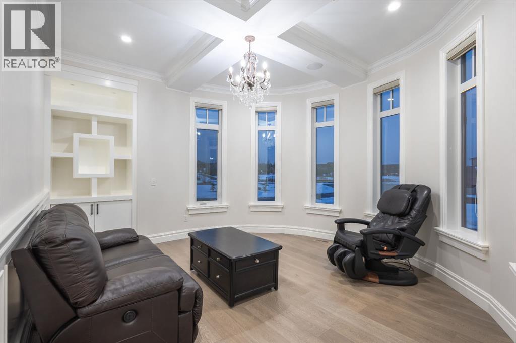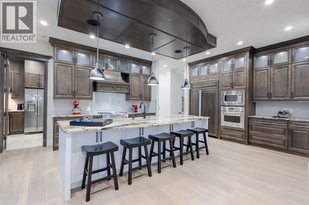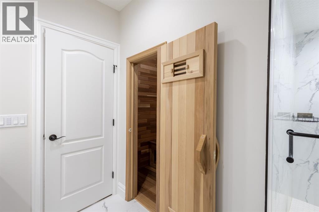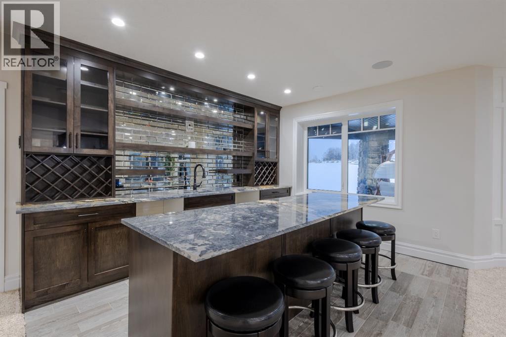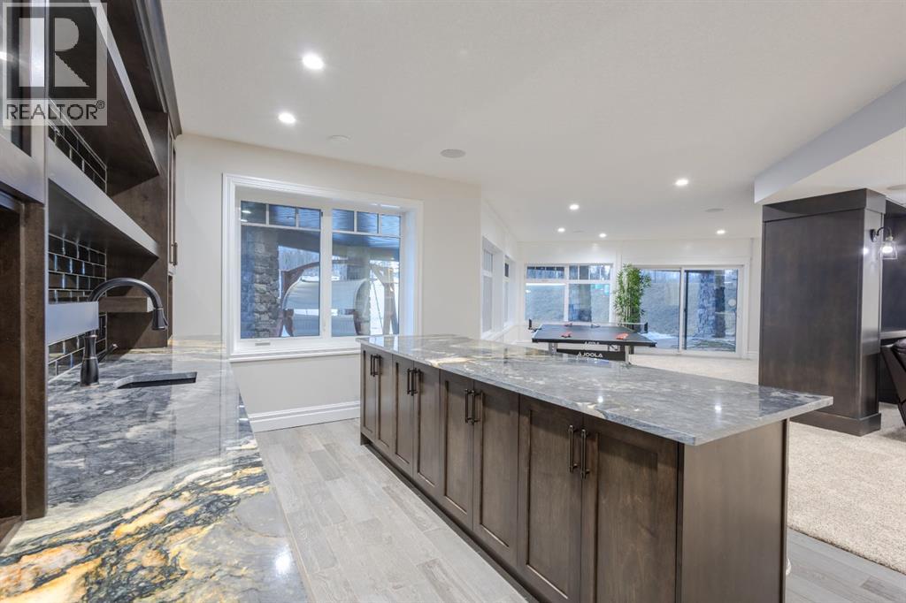 Located on two acres in the heart of prestigious Bearspaw, this exceptional custom-built estate offers over 7,000 square feet of refined living space, blending timeless elegance with modern luxury. From the moment you arrive, the grand entrance makes a lasting impression with soaring open-to-below ceilings, a breathtaking sense of scale, and stunning west-facing views that stretch toward the mountains. Expansive windows throughout the home flood the interior with natural light, enhancing the open-concept design and creating a seamless connection to the surrounding landscape. The chef-inspired kitchen is both beautiful and functional, featuring rich granite countertops, stainless steel appliances, generous bar seating, and a fully equipped spice kitchen—perfect for entertaining or everyday living. Thoughtful design continues with a convenient 2-piece bathroom on the main level. Just beyond, the living room is a true showpiece, anchored by a striking gas fireplace with stone surround and wooden mantel, while panoramic west and mountain views create an unforgettable backdrop. Step outside to the expansive west-facing wraparound deck, offering both covered and open-air spaces designed for relaxation and entertaining. With its private setting and sweeping mountain vistas, this outdoor retreat is truly one of a kind. Upstairs, the home continues to impress with an open-to-below design and a remarkable abundance of windows that showcase the incredible views. In addition to the primary retreat, there are four spacious bedrooms, two well-appointed bathrooms, and a thoughtfully designed laundry room complete with built-in cabinetry and a sink. A dedicated storage room adds even more practicality to this level. The primary suite is a luxurious sanctuary, featuring a double-sided gas fireplace, a spacious walk-in closet with custom built-ins, and a lavish 6-piece ensuite with a soaking tub, dual vanities, and premium finishes throughout. Step out onto your private balcony to ta ke in the mountain views, or enjoy the attached flex space—perfect as an art studio, lounge, or private retreat. The fully developed walkout basement is designed for both entertainment and wellness. Enjoy movie nights in the dedicated theatre area with built-in sound system, host gatherings at the wet bar with custom built-ins, or relax in the sauna after a workout in the home gym. This level also includes in-floor heating, two additional bedrooms, a 3-piece bathroom, and direct access to the backyard. Dual staircases provide convenient and elegant access throughout the home, while features such as a water softener enhance everyday comfort. Car enthusiasts and hobbyists will appreciate the impressive heated six-car garage with ample space for storage and projects. With its unparalleled craftsmanship, luxurious finishes, and breathtaking setting with views of the northern lights and just minutes from the city, this extraordinary Bearspaw estate offers a lifestyle of sophistication and natural beauty. (id:55577)