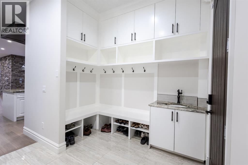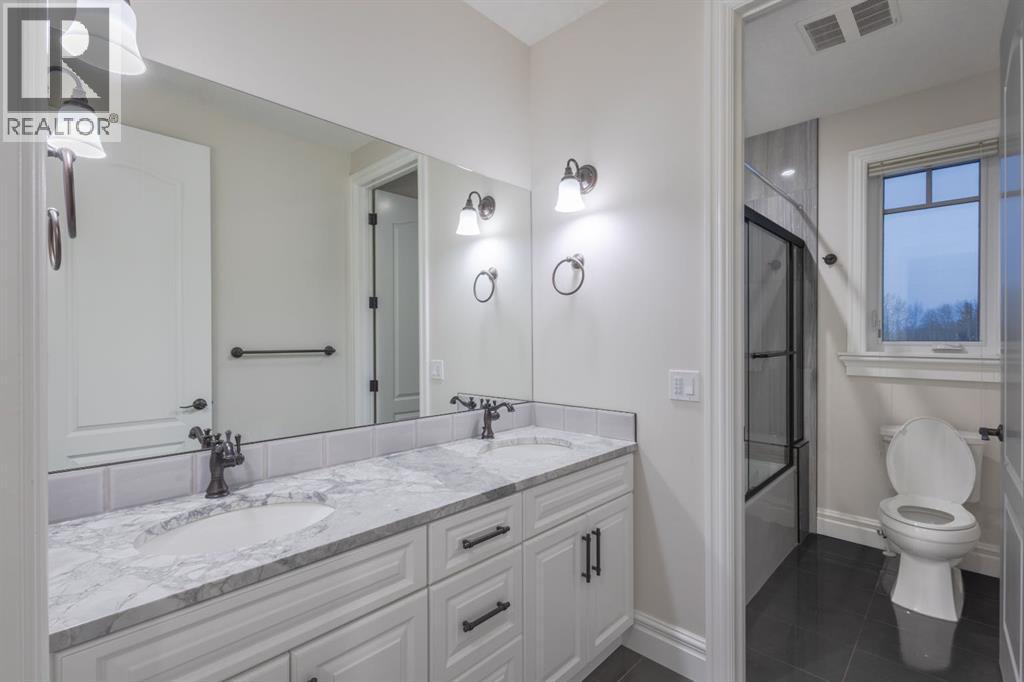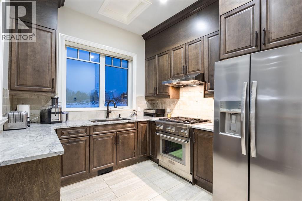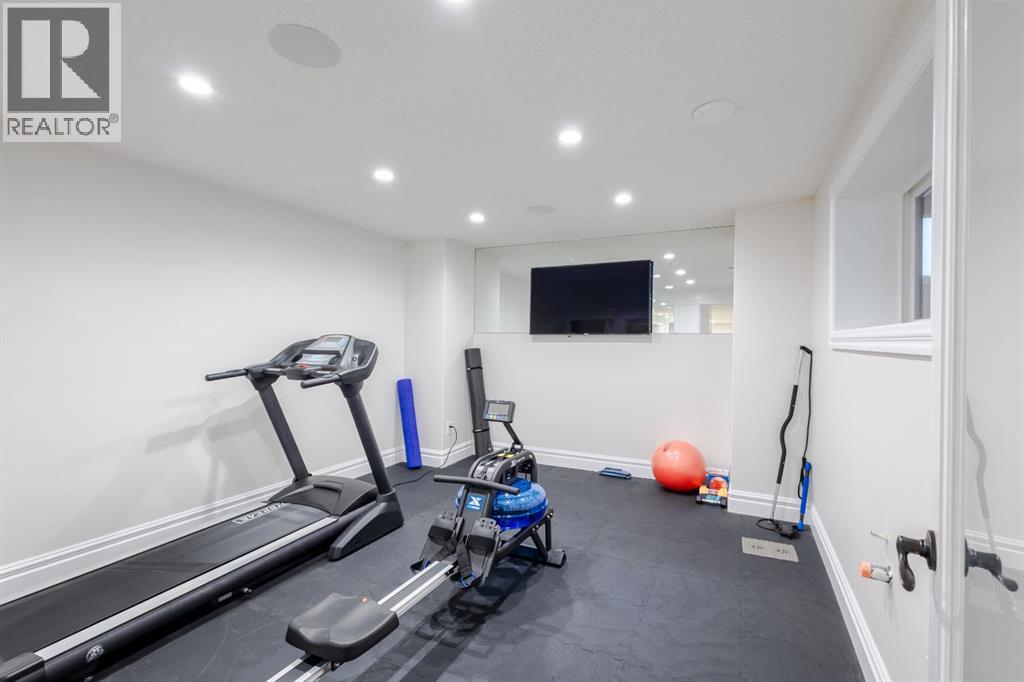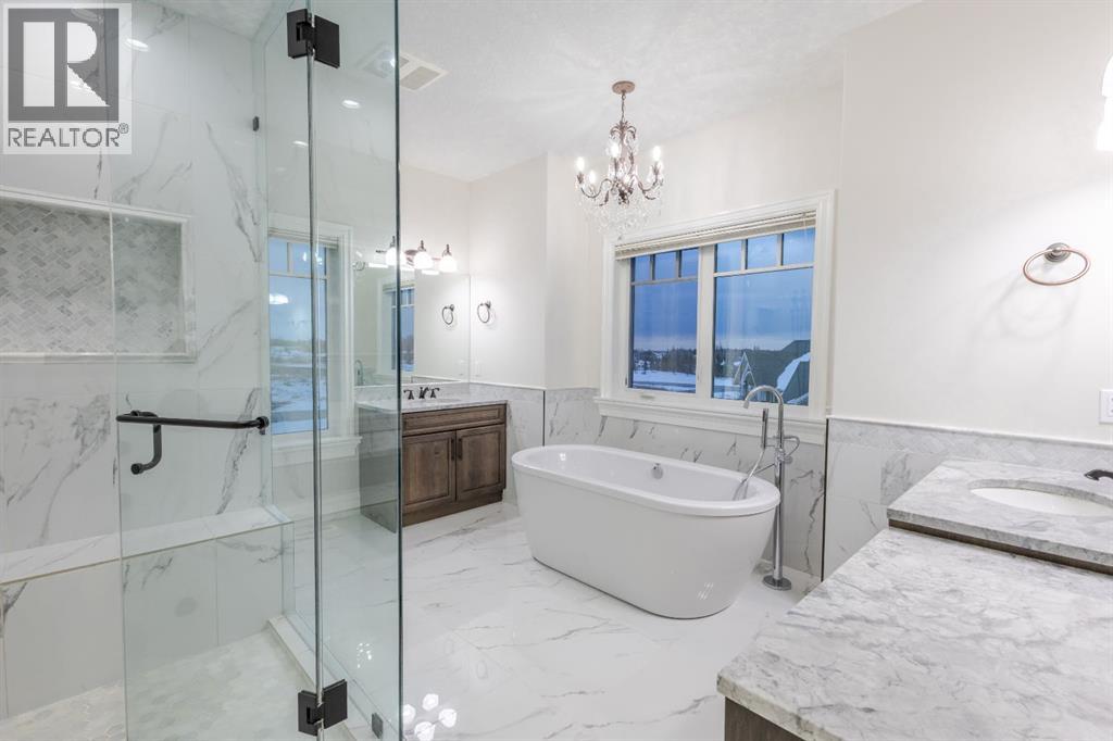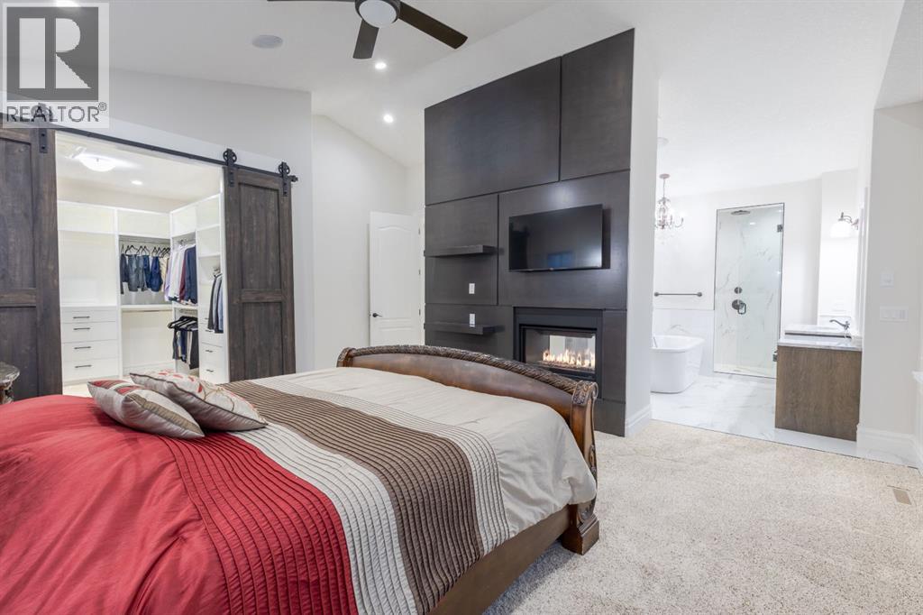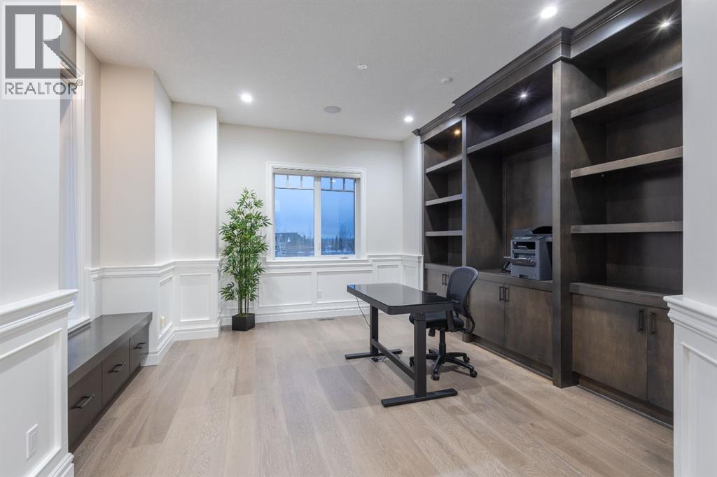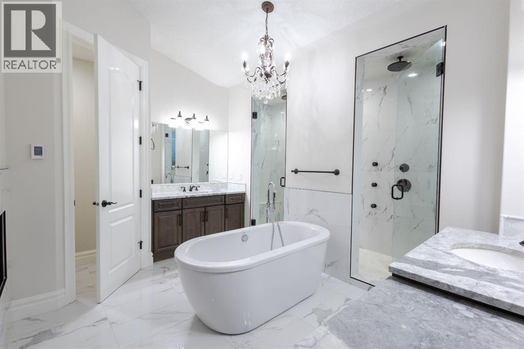 Located on two acres in the heart of prestigious Bearspaw, this exceptional custom-built estate offers over 7,000 square feet of refined living space, blending timeless elegance with modern luxury. From the moment you arrive, the grand entrance makes a lasting impression with soaring open-to-below ceilings, a breathtaking sense of scale, and stunning west-facing views that stretch toward the mountains. Expansive windows throughout the home flood the interior with natural light, enhancing the open-concept design and creating a seamless connection to the surrounding landscape. The chef-inspired kitchen is both beautiful and functional, featuring rich granite countertops, stainless steel appliances, generous bar seating, and a fully equipped spice kitchen—perfect for entertaining or everyday living. Thoughtful design continues with a convenient 2-piece bathroom on the main level. Just beyond, the living room is a true showpiece, anchored by a striking gas fireplace with stone surround and wooden mantel, while panoramic west and mountain views create an unforgettable backdrop. Step outside to the expansive west-facing wraparound deck, offering both covered and open-air spaces designed for relaxation and entertaining. With its private setting and sweeping mountain vistas, this outdoor retreat is truly one of a kind. Upstairs, the home continues to impress with an open-to-below design and a remarkable abundance of windows that showcase the incredible views. In addition to the primary retreat, there are four spacious bedrooms, two well-appointed bathrooms, and a thoughtfully designed laundry room complete with built-in cabinetry and a sink. A dedicated storage room adds even more practicality to this level. The primary suite is a luxurious sanctuary, featuring a double-sided gas fireplace, a spacious walk-in closet with custom built-ins, and a lavish 6-piece ensuite with a soaking tub, dual vanities, and premium finishes throughout. Step out onto your private balcony to ta ke in the mountain views, or enjoy the attached flex space—perfect as an art studio, lounge, or private retreat. The fully developed walkout basement is designed for both entertainment and wellness. Enjoy movie nights in the dedicated theatre area with built-in sound system, host gatherings at the wet bar with custom built-ins, or relax in the sauna after a workout in the home gym. This level also includes in-floor heating, two additional bedrooms, a 3-piece bathroom, and direct access to the backyard. Dual staircases provide convenient and elegant access throughout the home, while features such as a water softener enhance everyday comfort. Car enthusiasts and hobbyists will appreciate the impressive heated six-car garage with ample space for storage and projects. With its unparalleled craftsmanship, luxurious finishes, and breathtaking setting with views of the northern lights and just minutes from the city, this extraordinary Bearspaw estate offers a lifestyle of sophistication and natural beauty. (id:55577)