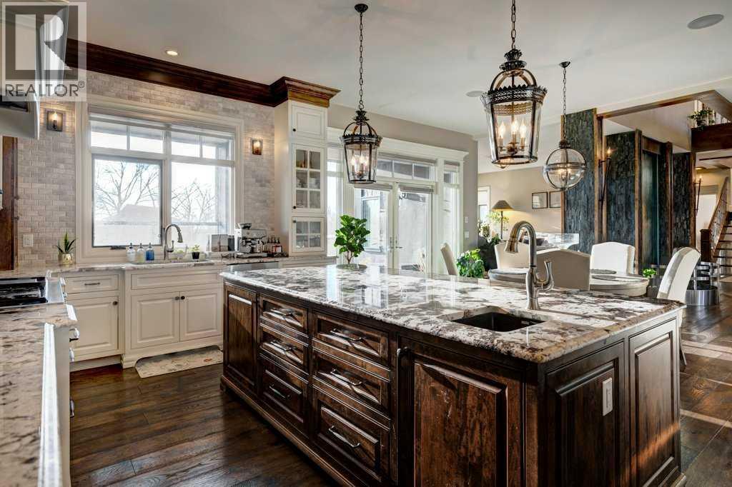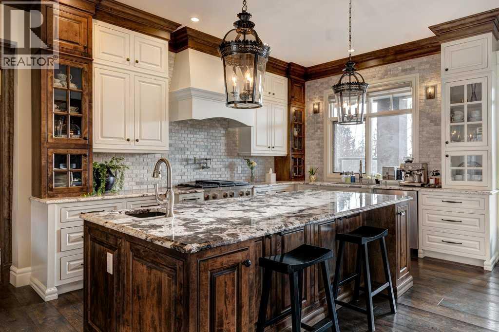 SIGNIFICANT PRICE REDUCTION! A truly luxurious, high quality and extremely spacious home ideal for a large family, multigenerational living and entertaining located on 3.3 acres approx. 8 minutes to Shawnessy area and close to the SW Ring Road connection. Over 9,000 sq. ft. of developed space including the lower-level walk out. 7 large bedrooms (4 with 4 pce. ensuites), 8 bathrooms total. Main floor has a grand entry, spacious formal dining room, formal living room and family room with tall waterfall feature, beautiful gourmet kitchen, additional separate prep kitchen and executive den with towering bookcases and ceiling height. The upper level has a dramatic catwalk joining both sides of this fabulous home with views down to the foyer area, 4 very spacious bedrooms with en-suites, lounge/TV viewing area with built in’s and various spacious walk-in closets with custom shelving. Lower level has massive recreation room, oversized bar/food prep area, exercise room, 2 big bedrooms and large bathroom. Home includes 4 gas fireplaces, exceptional quality finishing with coffered ceilings and crown mouldings, triple glazed windows, stone covered internal feature columns, A/C, in-floor heating, 4 car attached garage, massive rear deck and private lower-level patio area, unique quality light fixtures and more. The upper bedrooms have Cinderella balconies! The home is located on a dead end cul-de-sac with several other beautiful estate homes. It also has partial mountain views from some rooms. Location is very close to Red Deer Lake School, Spruce Meadows and quick access to 22X and Ring Road connector. Seldom do homes of this size, number of bedrooms and quality with such a ‘close in location’ to Calgary become available in the Foothills MD. (id:55577)