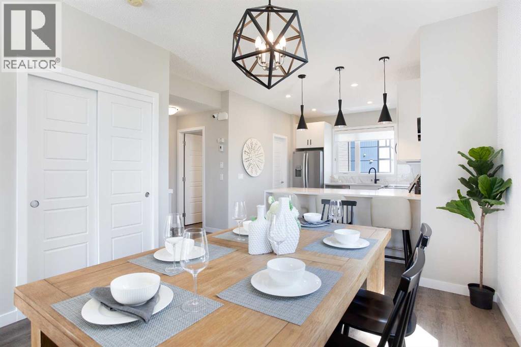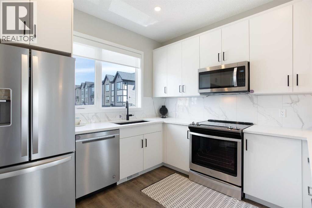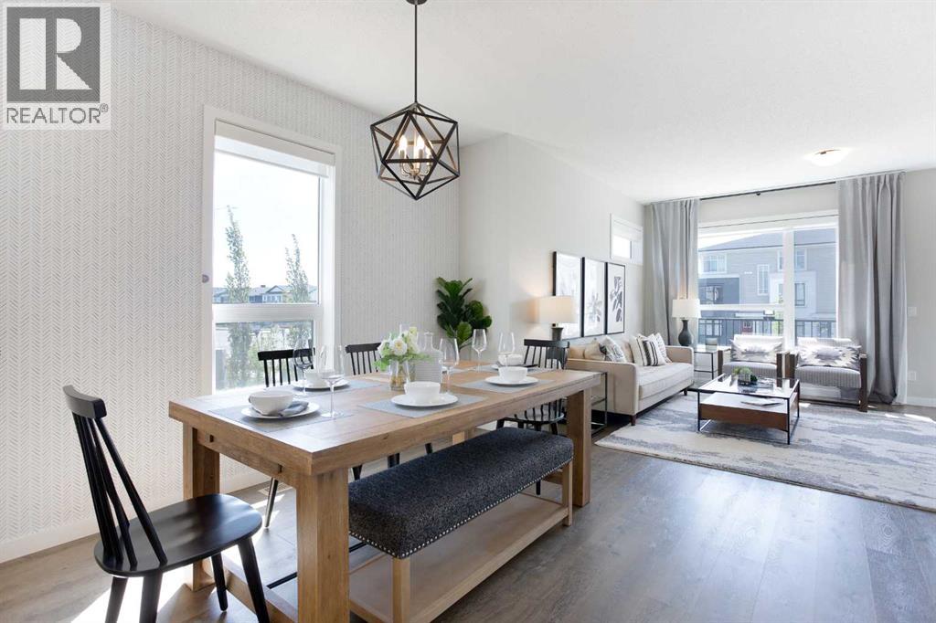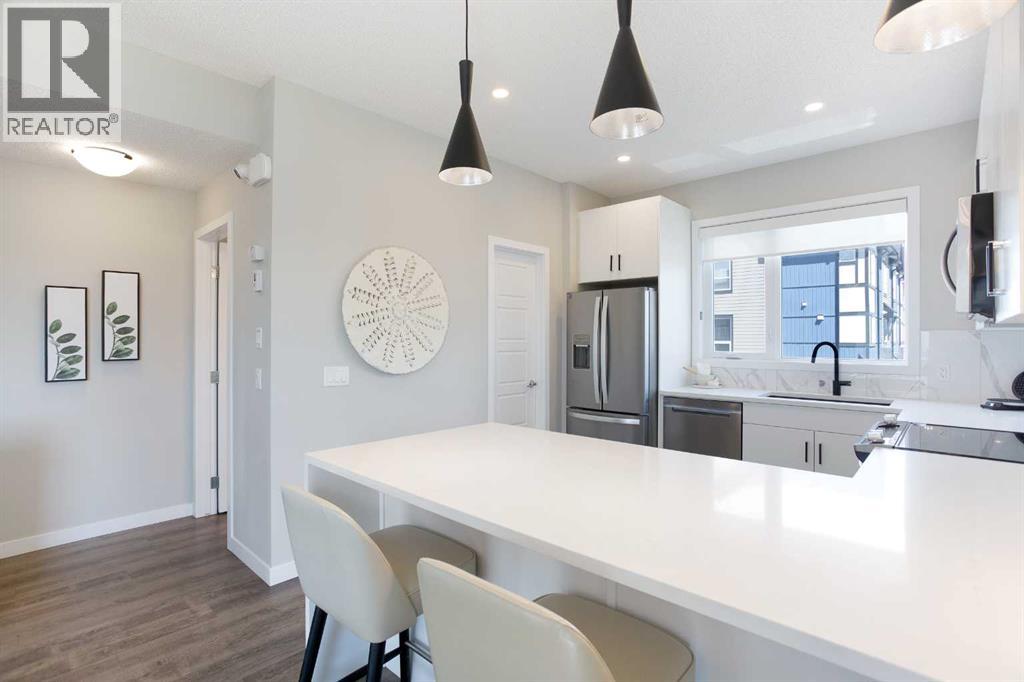 Welcome to this stunning FULLY FURNISHED, 3-bedroom, 2.5-bathroom townhouse offering 1,500 sq. ft. of carefully curated living space that blends comfort, sophistication and was previously featured as the STREETSIDE show home with high end finishes. Designed for modern lifestyles, this home boasts a bright and airy open-concept floor plan with soaring 9’ ceilings on the main level and 8’ ceilings on the upper floor, creating an expansive, inviting feel from the moment you step inside.The main living area is thoughtfully laid out to provide both flow and function. A spacious great room connects seamlessly to the dining area, while the kitchen serves as the centerpiece of the home—perfectly suited for both daily living and entertaining. You’ll love the upgraded Whirlpool stainless steel appliances, stunning waterfall-edge island, upgraded sink, and under-cabinet lighting that enhances both ambiance and task functionality. The addition of a dedicated breakfast bar adds versatility, whether you’re enjoying a quick meal or hosting friends. Roller shades and upgraded window coverings throughout, including on the balcony door, offer privacy and style with ease.Just off the main living area, an upper-level balcony provides a tranquil outdoor space for relaxing or entertaining. And with central air conditioning already installed, you’ll enjoy year-round comfort no matter the season.Upstairs, retreat to a spacious primary suite featuring a fully upgraded ensuite bath. Indulge in a spa-like experience with a 10mm frameless glass shower enclosure, upgraded tile work, and sleek 12x24” bathroom floor tiles. Two additional bedrooms offer flexibility for guests, family, or a dedicated home office, while a well-appointed main bath and upper-level laundry complete the upper floor.Additional upgrades include a bold black lighting package throughout, elevated hardware and fixtures, and designer finishes that create a cohesive, modern aesthetic in every room. Every detail has bee n carefully considered, delivering the feel of a showhome without compromise.This exceptional home also includes a tandem attached garage, ideal for parking, storage, or hobby use. Located in a vibrant, amenity-rich community of Belmont with nearby parks, shopping, dining, and quick access to major thoroughfares, this townhome offers not only beautiful design but also an ideal location.Whether you're looking to upgrade your space, start your homeownership journey, or simply enjoy high-end finishes in a thoughtfully planned layout, this 1,500 sq. ft. townhome exceeds expectations at every turn. Move-in ready and loaded with premium features—this is an elevated townhome living at its finest. (id:55577)