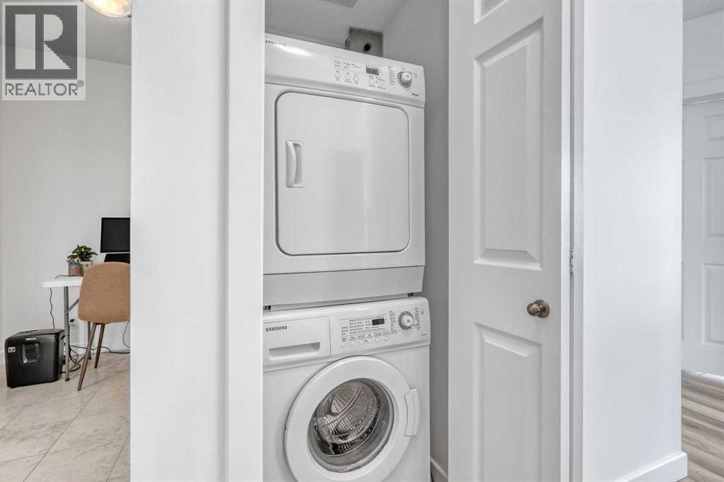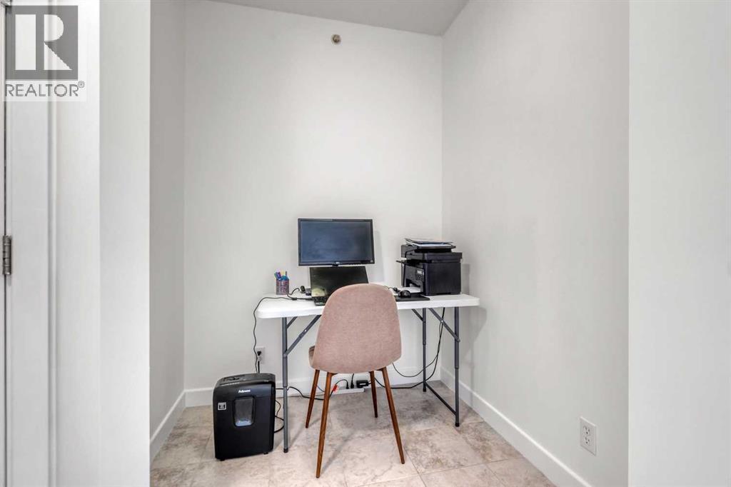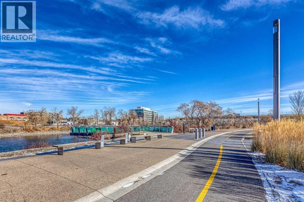 VIEWS, VIEWS, and VIEWS. Experience the ever-changing views north and northwest to the Bow River, and west to the downtown core and Calgary Tower. This TWO-BEDROOM, TWO-BATHROOM CORNER unit with a DEN and a BIG PRIVATE BALCONY is the largest on the floor, according to the official Condominium Plan prepared by an Alberta Land Surveyor. Inside, you’ll find an EXTENSIVE RENOVATION with LAMINATE flooring throughout the main living areas and bedrooms, perfectly complementing the FLOOR-TO-CIELING windows that showcase stunning views. The kitchen, with its tied floor, is the ideal size, featuring GRANITE countertops, a tile backsplash, and STAINLESS-STEEL appliances. This unit has been OWNER-OCCUPIED and meticulously maintained with EXCEPTIONAL CARE!Here, you are close to everything the East Village has to offer—riverfront paths for walking and biking, paddle boarding on the river; restaurants; nightlife; Prince’s Island Park; the public library; and art centres—all within walking distance. Superstore is conveniently located just two blocks from the building.Riverfront Pointe offers a full gym, an amenities room, and an outdoor patio, along with onsite security, bicycle storage, and secure heated underground parking including visitor parking. The TITLED parking stall is conveniently located near the elevator, and a second stall is available for rent or purchase. Onsite, a small garden area adds to the welcoming ambiance of the complex.This is a fantastic property—make it your home! (id:55577)