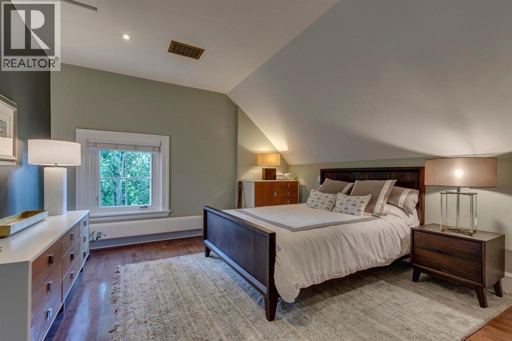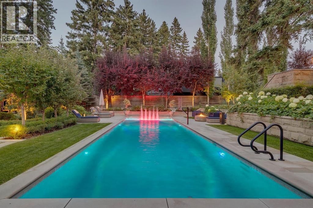 Introducing a modern architectural masterpiece in Calgary’s prestigious Mount Royal. Situated on a rare, gated half acre lot along exclusive Prospect Avenue, this 6,725 sq ft estate harmoniously blends timeless design with contemporary sophistication. Surrounded by mature trees and immaculate landscaping, the striking sandstone and brick exterior with copper detailing sets the tone for the elegance within. This iconic property has been thoughtfully reimagined to honour its architectural heritage while embracing contemporary luxury. Inside, every detail reflects intentional design and refined living. Custom millwork, designer lighting, limestone and marble finishes, and integrated smart home technology, including full Lutron controls, create a seamless balance between historic charm and modern comfort. Crafted for those who value elevated entertaining and effortless daily living, this truly special home delivers an unparalleled lifestyle. A timeless centre hall plan sets a sophisticated tone, leading into a home where original 1912 quarter-sawn oak floors grace the main level, creating an elegant foundation for the curated interiors. The grand living room is anchored by a limestone fireplace and flows seamlessly into a formal dining room with beamed ceilings and custom wainscotting. Beyond, the original porch has been transformed into a sun filled solarium with coffered ceilings for an ideal space to enjoy morning coffee, intimate dinners, or evening cocktails. Sliding glass doors extend the living area to a private rear terrace, perfect for effortless indoor/outdoor entertaining. The heart of the home, the kitchen, balances beauty and function with Wolf, Sub-Zero, and Miele appliances, sleek Siematic cabinetry with glass panelled uppers, and luxurious marble countertops designed for everyday living and elegant gatherings. The thoughtful layout offers intentional separation between public and private spaces. Upstairs, the serene primary spans half the second level fe aturing dual walk-through closets, a lavish 6pc ensuite with a volcanic limestone soaking tub, and an east facing sunroom ideal for wellness routines or quiet reflection. Two additional bedrooms and a full bath complete the floor, while the third level offers a flexible lounge, two more bedrooms, and a 4pc bath. The lower walk-out level boasts an inviting billiards room with panelled walls, 2pc bath, and a custom-built bar creating the perfect setting to gather and celebrate life’s milestones. Outside, a private oasis awaits with a sandstone terrace, wood-burning fireplace, waterfall, and a dazzling lap pool with fountain as the centrepiece. Lush gardens, fruit trees, a 'smart' 22'x11' greenhouse with heated marble floors and automatic ventilation, and a putting green complete the setting. Minutes from top schools, tennis courts, the Glencoe Club, dining, and culture, this landmark estate blends heritage, innovation, and intentional design. (id:55577)