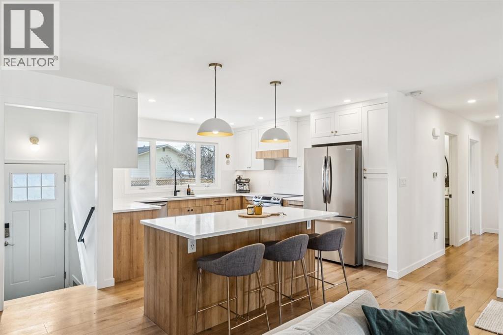 Incredible proximity to the incredible Fish Creek AND a gorgeous, renovated bungalow! Parkland is known for its access to nature, community feel, low-density development with wide lots, amenities like Park96 Community Centre Park and a K-6 Public School & Catholic School both in walking distance! This bungalow was lovingly renovated over the past five years by owners with impeccable taste! Opening up the great room to allow for modern-day living has created an inviting and functional space. The living room can fit the most oversized, comfy couch and features a wood-burning fireplace. The dining room has a thoughtful built-in with quartz counters and a stylish light fixture. The wood-and-white kitchen is a showstopper with central island, designer tile work, quartz counters, sink overlooking the backyard, soft-close cabinetry, induction range, fridge w/ ice & water. This is the heart of the home where memories with friends and family are made! With three bedrooms up, this home can easily accommodate a family or a work-from-home setup. The main bathroom includes shower niche, arched mirror, linen closet and earthy colour tones. The primary suite has great closet built-ins, new ceiling fan and 3-piece ensuite with bidet! The lower level has multiple areas to make your own - media area, rec area with fireplace, enclosed den/gym, 4th bedroom (window not to current egress code) and full bath. And now, let's get to the yard! With SW exposure, this yard basks in sun all day - amazing for our long summer nights in Calgary! Fully fenced so it's ready for your kids & pets, newer ground-level patio, oversized rear gate to allow for RV parking and a huge 23'x24' garage that fits a full-sized truck! This quiet street is the perfect place to call home - prepare to fall in love! (id:55577)
