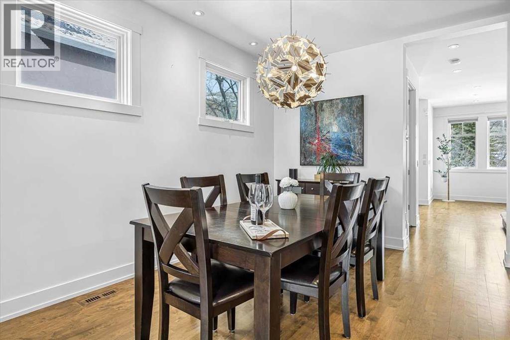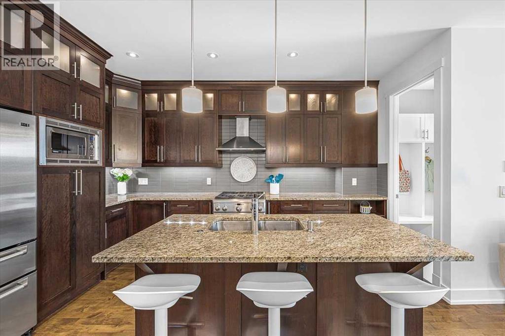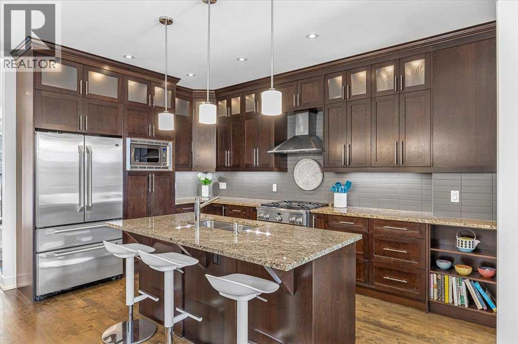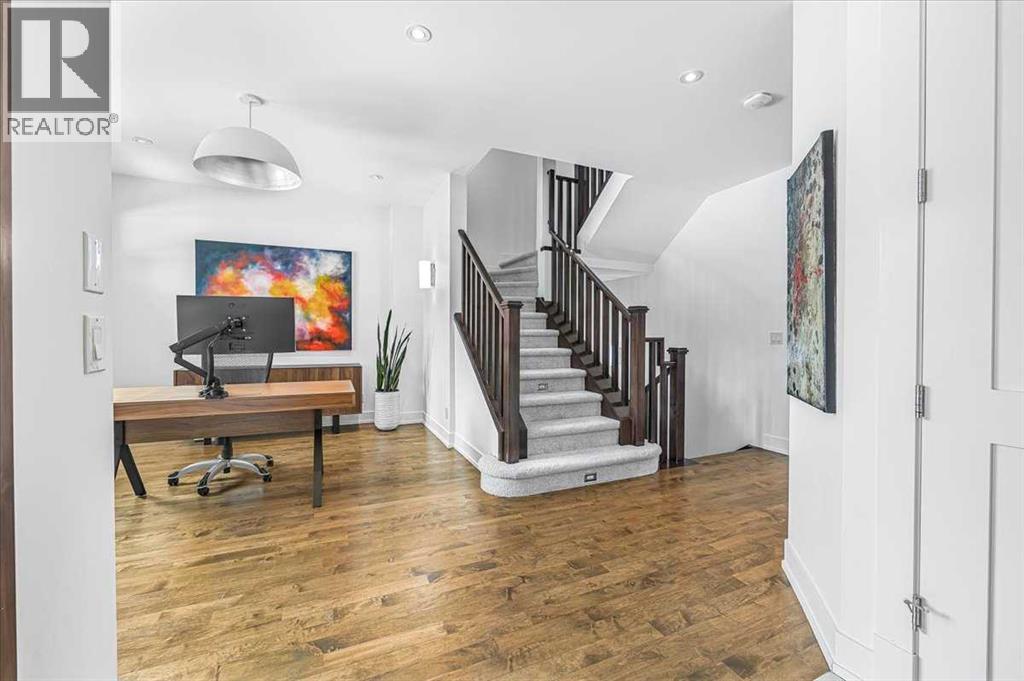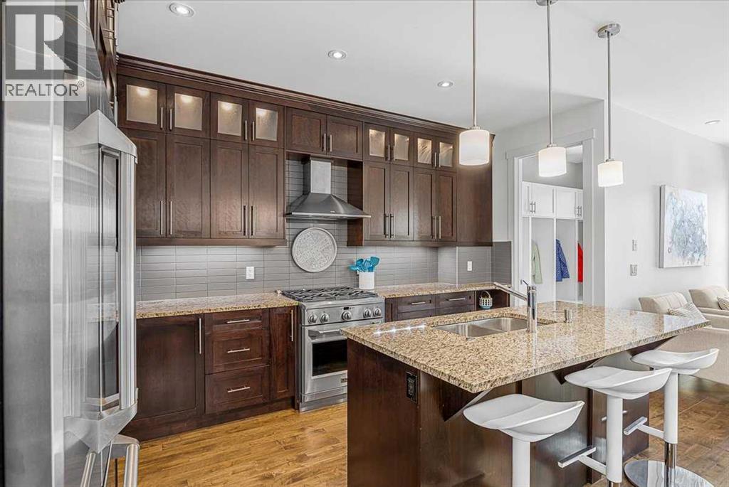Welcome to elevated living in one of Calgary's most coveted inner-city neighbourhoods - Sunnyside. This stunning thoughtfully designed three storey semi-detached executive home delivers luxury finishes and an unbeatable lifestyle in the heart of Calgary. Featuring 3+ bedrooms and 5 bathrooms with a total of 3350 sq ft on 4 levels. Located on a quiet street nestled near McHugh's Bluff. The main level has an open floor plan, with kitchen, dining and living area adjacent to each other - ideal for family life or entertaining. The kitchen includes quartz counter tops, full height cabinetry, 4 burner gas range, a breakfast bar, plenty of counter space to prepare meals and ample cupboards for storage. The spacious back door mudroom is perfectly situated and has built in cabinetry to store your seasonal items & clothing - offering easy entry & exit. Ascend to the second level to a spacious master bedroom with spa-inspired en-suite complete with dual vanities, heated floors, steam shower, jet soaker tub and a water closet. Rounding out the second level is 2 more bedrooms, a 4 pc bath and a separate spacious laundry room. The third level has a generous flex space, 2 pc bathroom and storage closet - perfect for home office, living area, play/hobby room or guest suite. Descend to the lower level where you can unwind in the home gym, entertain at the sophisticated wet bar &/or relax while watching movies or having a game night. Step outside to the deck and enjoy a meal you’ve prepared with your gas BBQ while taking in the resort like tranquil pond feature & professionally landscaped grounds. Or cozy up to the firepit area for an evening gatherings. A poured aggregate walkway leads from the front door all the way to the back double garage and patio area. This gorgeous home is situated directly across the street from a park - offering a rare view of green space and has a walking/bike path connecting you to Calgary's pathway network with ease. A 15 minute walk takes you to downtown Calgary or to Kensington - where if offers boutique shops, acclaimed restaurants and a vibrant community life. This home is built for modern executives and families alike. View this gorgeous home today - where luxury meets nature and urban convenience - perfectly balanced! (id:55577)