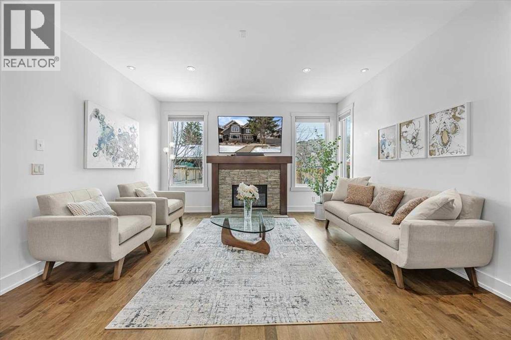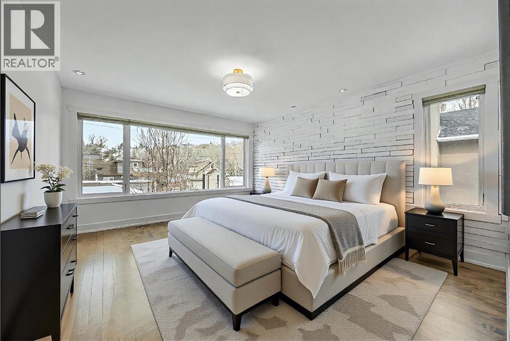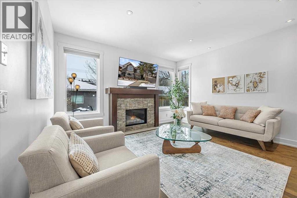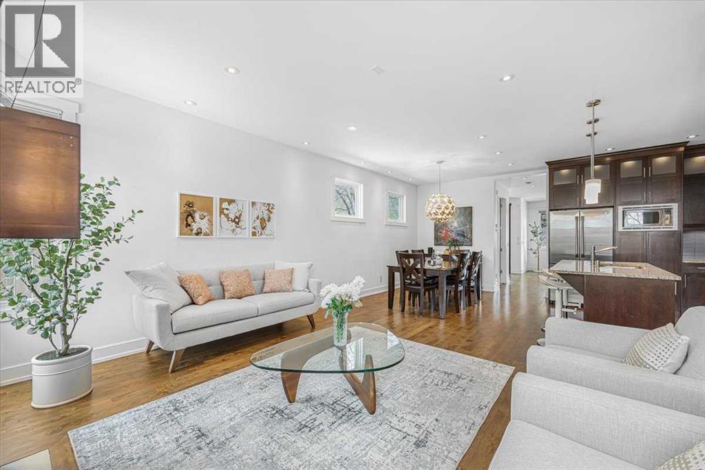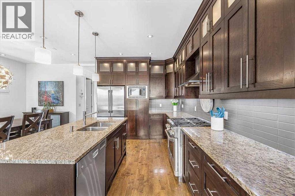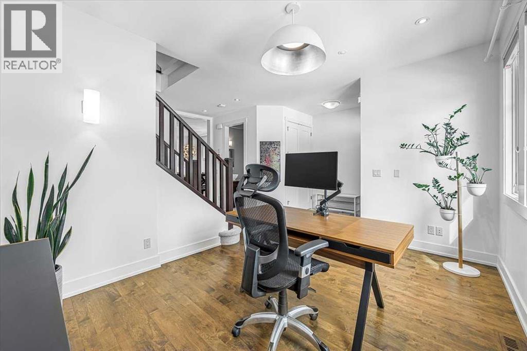 Welcome to elevated living in one of Calgary's most coveted inner-city neighbourhoods - Sunnyside. This stunning thoughtfully designed three storey semi-detached executive home delivers luxury finishes and an unbeatable lifestyle in the heart of Calgary. Featuring 3+ bedrooms and 5 bathrooms with a total of 3350 sq ft on 4 levels. Located on a quiet street nestled near McHugh's Bluff. The main level has an open floor plan, with kitchen, dining and living area adjacent to each other - ideal for family life or entertaining. The kitchen includes quartz counter tops, full height cabinetry, 4 burner gas range, a breakfast bar, plenty of counter space to prepare meals and ample cupboards for storage. The spacious back door mudroom is perfectly situated and has built in cabinetry to store your seasonal items & clothing - offering easy entry & exit. Ascend to the second level to a spacious master bedroom with spa-inspired en-suite complete with dual vanities, heated floors, steam shower, jet soaker tub and a water closet. Rounding out the second level is 2 more bedrooms, a 4 pc bath and a separate spacious laundry room. The third level has a generous flex space, 2 pc bathroom and storage closet - perfect for home office, living area, play/hobby room or guest suite. Descend to the lower level where you can unwind in the home gym, entertain at the sophisticated wet bar &/or relax while watching movies or having a game night. Step outside to the deck and enjoy a meal you’ve prepared with your gas BBQ while taking in the resort like tranquil pond feature & professionally landscaped grounds. Or cozy up to the firepit area for an evening gatherings. A poured aggregate walkway leads from the front door all the way to the back double garage and patio area. This gorgeous home is situated directly across the street from a park - offering a rare view of green space and has a walking/bike path connecting you to Calgary's pathway network with ease. A 15 minute walk takes you to downtown Calgary or to Kensington - where if offers boutique shops, acclaimed restaurants and a vibrant community life. This home is built for modern executives and families alike. View this gorgeous home today - where luxury meets nature and urban convenience - perfectly balanced! (id:55577)