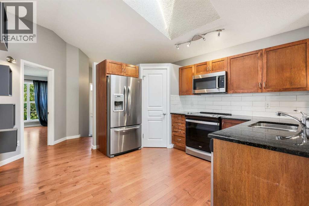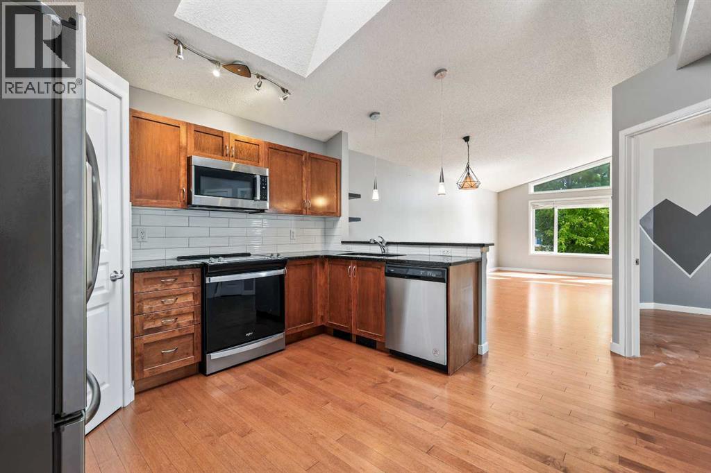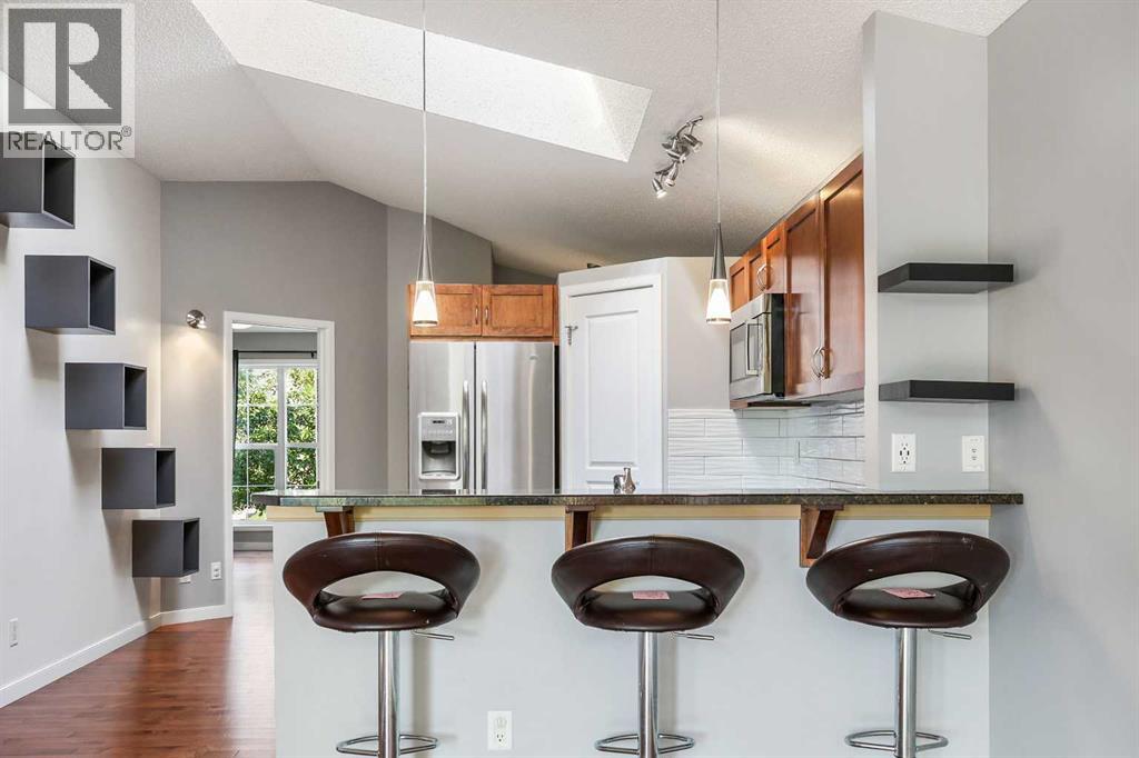 This little gem nicely and quietly tucked away in the lovely community of New Brighton will have you falling in love with the idea of Bungalow living all over again. With FOUR BEDROOMS and THREE BATHROOMS, there is ample room for all to enjoy. Whether you are a young growing family, ready to right size into one level living or considering the possibility of being an entrepreneur with a fantastic investment opportunity, this home will fit the bill. Clean and well taken care of, you will immediately be welcomed into almost 2000sqft of developed living space that is warm and cozy while being bright and beautiful. Stepping up to the main living area you will notice right away the gorgeous vaulted ceiling offering a 10ft peak opening up the space to include a great kitchen boasting GRANITE COUNTERTOPS, extended island creating a nice raised eating bar, classic subway tile back splash, sleek stainless steel appliances, corner pantry and a beautiful sunlit skylight that invites an abundance of natural daylight into the home. You will discover TWO BEDROOMS on the main floor with the Primary Bedroom boasting your very own en suite, while the secondary bedroom would be an ideal office or nursey. All of this that opens up to your spacious living room with the continued vaulted ceiling that carry's your sightline over, through over sized windows, into the back yard framed in by mature trees giving you a sense of being in an A-frame cabin. The FULLY FINISHED lower level offers so much additional living space with a huge family room with a corner gas feature fireplace with tile surround and wooden mantle. You will discover TWO MORE BEDROOMS (ONE WITH A WALK-IN CLOSET), A STYLISH FULL BATH and an additional living room area that could be used for a variety of uses; an office area, play space or media room. Stepping out to the back yard you will see a great little deck for your BBQ and then a great stone patio with room for multiple areas of entertaining. Fully fenced on a long yar d with a stone pathway out to your OVER SIZED DOUBLE DETACHED GARAGE WITH A PLETHURA OF SOLAR PANELS!! Help reduce utility bills with these already installed SOLAR PANELS!! This home is just steps to the green space, walking trails and within walking distance to High Street in McKenzie Town and just a short drive to all the amenities on 130th, Mahogany and Auburn Bay. Quick access to Stony Trail and Deerfoot and a short distance to the South Health Campus, numerous restaurants and movie theatre. Discover this great home today! (id:55577)
