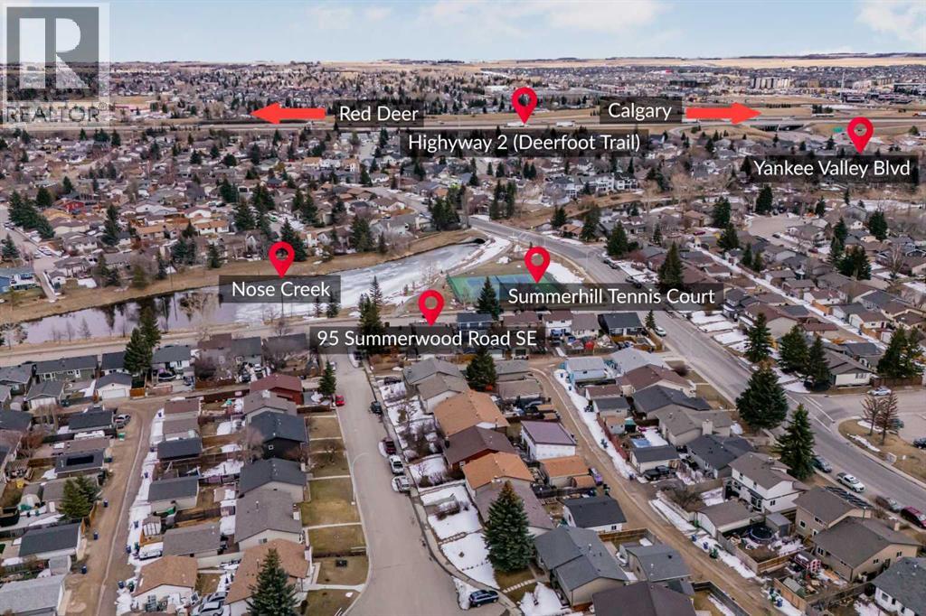 Welcome to 95 Summerwood Road, located in one of Airdrie's most established neighbourhoods- Summerhill. This home welcomes you with an open kitchen and dining layout, along with views of Nose Creek from your living room, front balcony and fenced front yard. The main floor offers two well-sized bedrooms, a full bathroom, convenient laundry, and a bright sunroom. Downstairs you will find a fully developed basement providing flexible additional living space, featuring a separate side entrance, two bedrooms, a full bathroom (with laundry), a spacious rec room and beautifully finished kitchen. Out back enjoy your private fenced back yard - perfect for those summer BBQ dinners. This home also features a spacious single-car garage (with potential for heating) and two outdoor sheds. 95 Summerwood Road offers direct access to walking paths, the Summerhill tennis courts and is walking distance to multiple schools, shopping, restaurants and transit. Don't miss your chance to own this home! Call and book your showing today. *The main floor and basement are currently tenanted*. (id:55577)