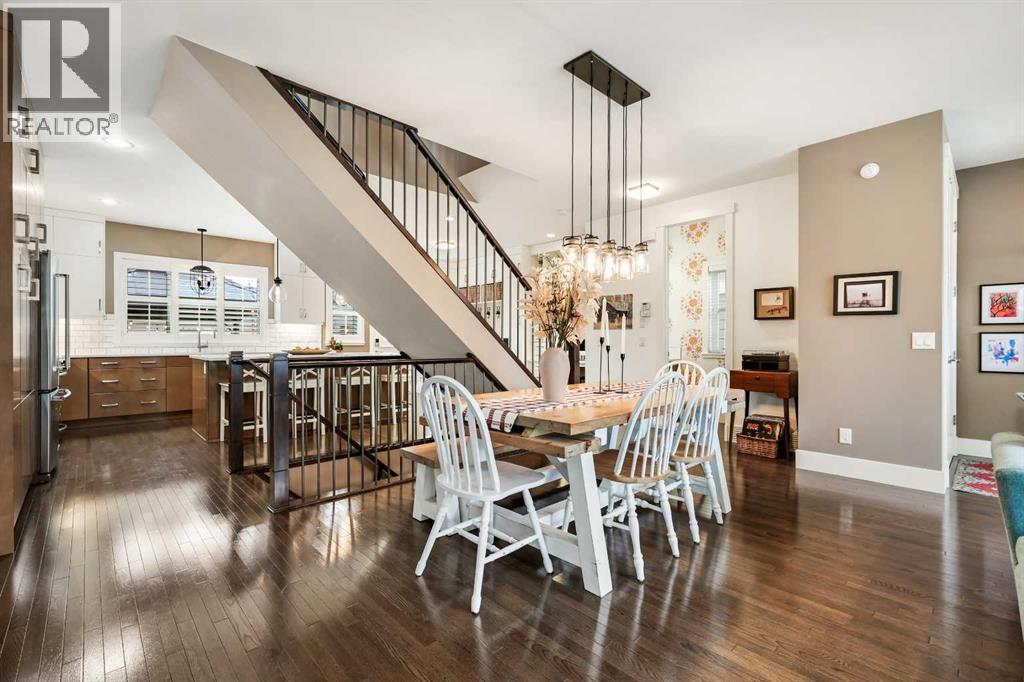 Welcome to this exceptional Custom-Built home, perfectly situated in one of Calgary’s most sought-after inner-city communities. Boasting over 2,600 sq. ft. of meticulously designed living space, this home blends refined craftsmanship with modern elegance — all just minutes from downtown. Step through the welcoming front entrance into an open-concept main level featuring 9-ft ceilings, rich hardwood floors throughout, and a designer staircase that seamlessly connects the home’s beautiful living spaces. The living room exudes warmth and style, anchored by a floor-to-ceiling tiled gas fireplace — a perfect focal point for cozy evenings. Custom built-in cabinetry adds both charm and functionality, creating a space designed for comfort and connection. The dining area offers an elegant setting for gatherings, while the chef-inspired kitchen is truly a showpiece -complete with a massive quartz island, premium stainless steel appliances, extended cabinetry, and abundant storage. Whether you love to entertain or cook with family, this kitchen delivers both form and function. From the kitchen, step outside to your professionally landscaped, low-maintenance backyard — fully fenced, south-facing, and exceptionally private. The extended patio creates the perfect space for outdoor dining and relaxation in the sun. Upstairs, discover three spacious bedrooms, each designed for rest and relaxation. The primary suite is a private retreat, featuring a spa-inspired ensuite with a dual vanity, soaker tub, tiled glass shower, and a generous walk-in closet. Large windows and custom window coverings complement the 9-ft ceilings, bathing each room in natural light. The upper-level laundry adds additional convenience. Downstairs enjoy the fully developed basement extending the home’s versatility — rec room with built-in surround sound, fourth bedroom and/or home gym, and a stylish four-piece bathroom completes this space. Additional luxury upgrades include Air Conditioning, GEM Stone exteri or lighting (never hangChristmas lights again), central vacuum system, and more. Located in vibrant Currie Barracks, you’re surrounded by parks including outdoor rink, splash pad, playgrounds, walking paths, schools, and local amenities — plus easy access to the downtown core in under 10 minutes. Bonus **Approved City Development Permit for a future Carriage Home — an incredible opportunity for added value or income potential. Call today to book your Showing! (id:55577)