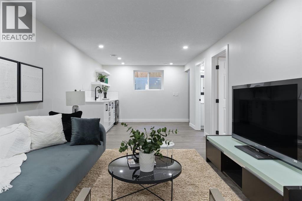 Wow! This is the home you have been waiting for! This fantastic family home on a huge lot in the coveted community of Acadia is located on a quiet street across from a school and features 5 bedrooms, 2 full bathrooms, over 1,832 sq ft of total living space, plus a large, splendid sunny backyard! Upon entry, you are greeted with an exceptionally bright and open contemporary floor plan, featuring an open foyer, a large living area with soothing, rich luxury vinyl plank flooring, and a wall of windows spanning the back of the home, providing a fantastic feeling of space and tranquility. The chef’s kitchen offers quartz counters, stainless steel appliances, custom white full-height cabinetry, custom backsplash with lighting, and loads of gorgeous counter and cupboard space next to the formal/casual dining room that is poised to host many dinner nights with friends and family. The lovely and private rear yard, which is just the right space for a yard and garden, has a large deck featuring seating to enjoy a quiet night or BBQ perfect for hosting guests. There is also a large oversized double detached garage for convenient parking. Back inside is a spectacular master retreat with a large closet with organizers, a luxurious bathroom with a comfort-height vanity, beautiful designer tile, upgraded fixtures, and great storage! Down the hall is a large second bedroom, den/bedroom, and storage. The bright lower level offers even more versatility and additional space, including two large bedrooms or office spaces with large closets, BIG raised windows providing exceptional light, a large rec room perfect for movie nights or a games room, a gym area, full bar, a 3-piece bathroom, a large storage room, and mechanical systems with laundry room. As you take it all in, don’t forget to notice the upgraded high efficiency mechanical systems, updated windows, roof, exterior and insulation, beautiful landscaping, and the oversized garage with alley access. You will appreciate being on a quiet street just steps to a field and schools, playgrounds, shopping and it has quick, easy access to enjoy living in this beautiful inner SE community with the Acadia Recreation Complex, Alberta Tennis Center, numerous athletic parks, endless commercial space on Macleod Trail and the Acadia Shopping Center, and all levels of schools (including charter schools). Acadia also features easy access to downtown and major SE arteries for quick trips to the mountains. Call today to schedule your private viewing. A Perfect home! TRULY A MUST SEE!! Call today! (id:55577)