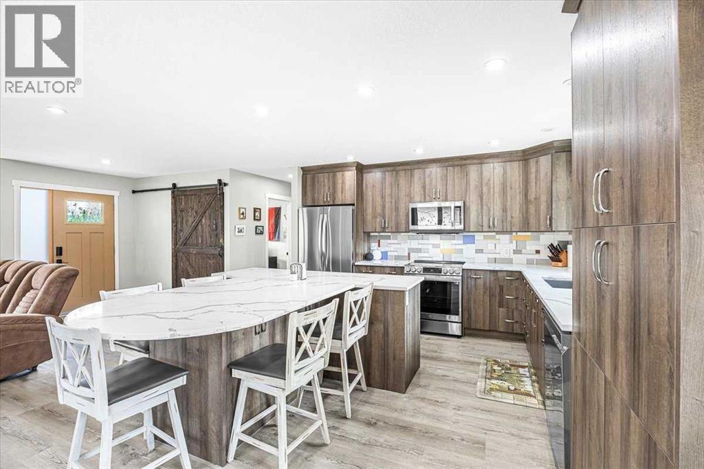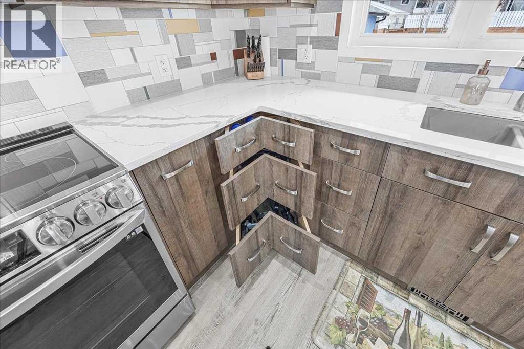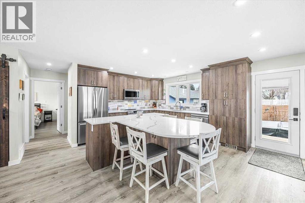 Welcome to 9743 Austin Road SE. Fully Renovated Bungalow – Turnkey & Loaded with UpgradesThis beautifully renovated bungalow has been taken right down to the studs and rebuilt with quality and care throughout. Featuring all new electrical, plumbing, windows, doors, and a new electrical panel, this home offers peace of mind and modern efficiency from top to bottom.The main floor showcases a bright, open layout centered around a stunning kitchen with a massive custom island, perfect for entertaining or everyday family life. The island offers plenty of seating, while additional cabinetry provides exceptional storage and workspace—a rare find in homes of this style.You’ll also find one spacious bedroom plus a versatile den, along with 2 bathrooms, including a massive ensuite with double sinks and very generous walk in closet.Downstairs, the fully finished basement features two additional bedrooms (egress windows), a full bathroom, a large family room, and generous storage space—ideal for guests or a growing family.Step outside and enjoy over $60,000 in professional landscaping, complete with irrigation, new fencing, and a hot tub included—your own private backyard retreat.Additional features include: • Heated garage (electric heater) with gas line and electrical in place • Central A/C • Tankless hot water system • Vacuflo central vacuumA rare opportunity to own a truly move-in-ready home where all the major updates have already been completed. Close to shopping, schools and major roadways all on a quiet street with paved side and back alley ways (id:55577)