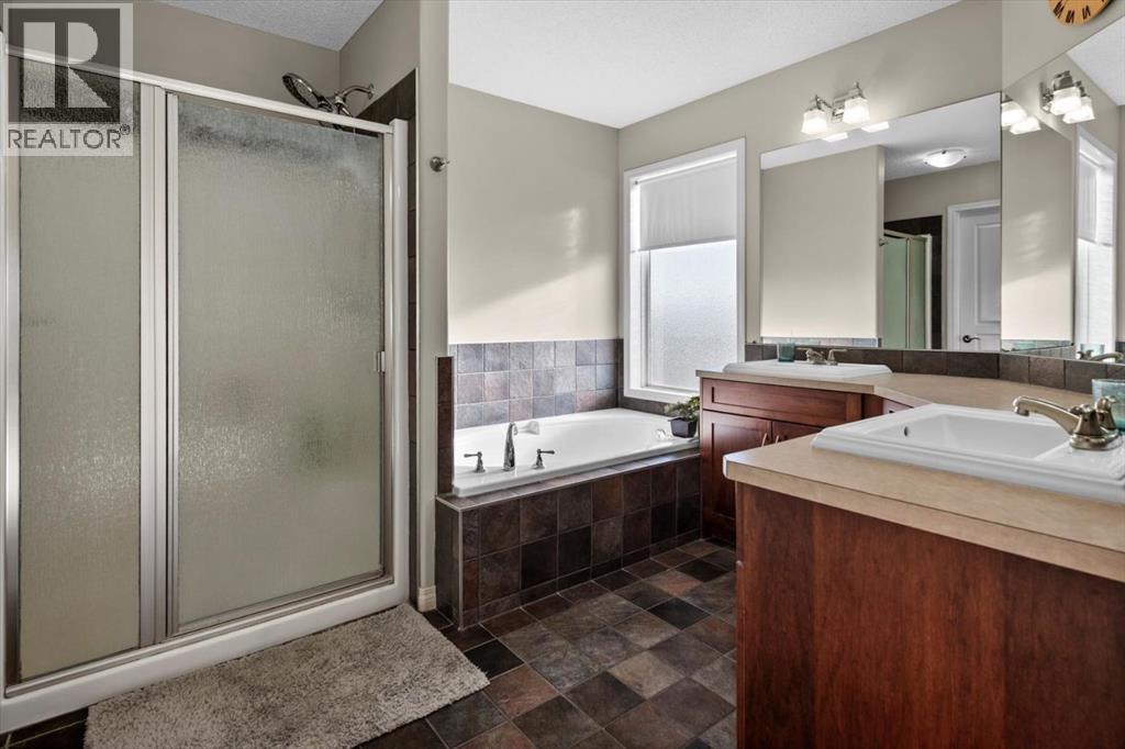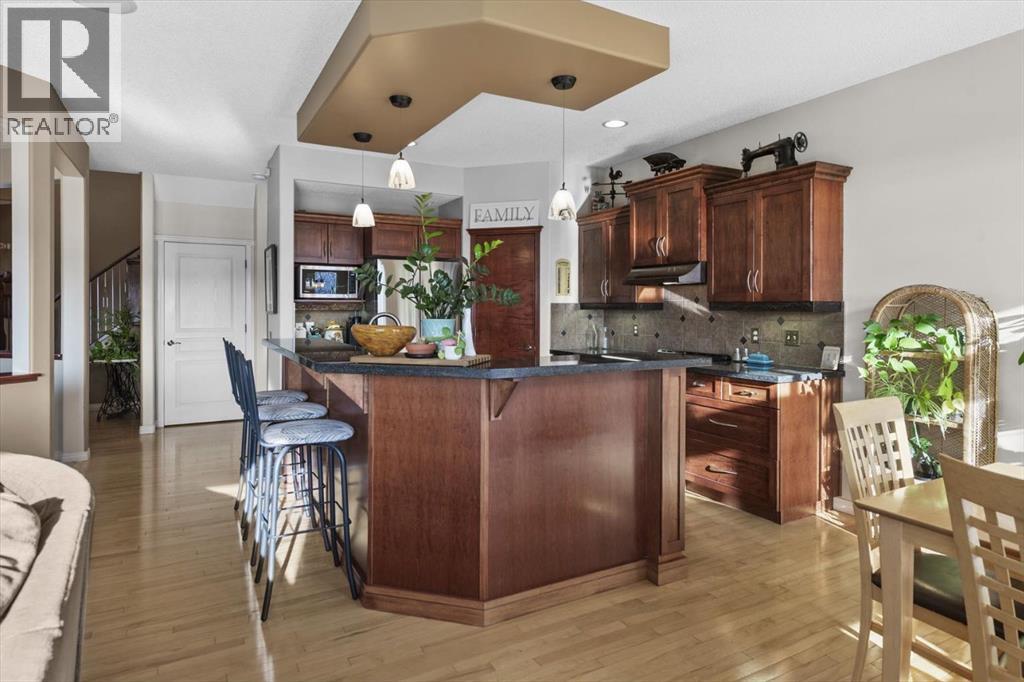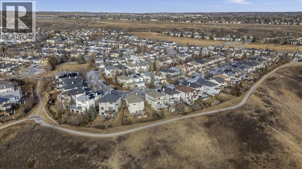Tucked along one of Tuscany's most coveted ridge-lines, this home rewards you with something few homes can offer - unobstructed, sweeping views stretching from the city skyline to Canada Olympic Park and onward to the Rocky Mountains. By day, the panorama shifts with the light; by evening, the lights from the city and COP glimmer in a display that never grows old. Homes along this ridge rarely come to market, and it's easy to understand why. A vaulted foyer sets a gracious first impression, with extensive hardwood flooring flowing through the main level. A versatile flex room near the entry invites use as a den or intimate formal dining space. As you move toward the rear of the home, the floor plan opens up and that remarkable view commands your attention through expansive rear windows. The family room, warmed by a fireplace, frames the vista beautifully, while the kitchen stands ready for both everyday life and entertaining - rich maple cabinetry with under-cabinet lighting, granite countertops, a tiered island, and stainless steel appliances. A well-appointed main-floor mudroom keeps the household running smoothly with laundry facilities, built-in cabinetry, a folding counter, and laundry sink. Upstairs, a small loft overlooks the entry below - an ideal spot for a reading nook, homework station, or quiet workspace. The staircase splits to reveal thoughtfully separated sleeping quarters: a spacious secondary bedroom to one side, and on the other, a second secondary bedroom, full family bathroom, and the primary suite. Waking up to those mountain and city views from the primary bedroom is something truly special. The ensuite features dual sinks, a soaker tub, and separate shower, complemented by a walk-in closet. The walkout basement extends the living space with a large recreation room anchored by a gas wood stove, plus a bathroom featuring an oversized shower - perfectly suited for guests or post-hot tub evenings. Step outside and the backyard becomes your retreat: a hot tub with convenient hot water tap, patio, perennial gardens, an irrigation system, and storage shed. A gate opens directly onto the pathway system winding throughout Tuscany, inviting you to explore the coulee at your doorstep. Central air conditioning ensures comfort through summer, and a newer roof provides peace of mind. With a park and playground just steps away, this ridge-backing home on a quiet street delivers a lifestyle that families dream about - where stunning views, thoughtful design, and neighbourhood connectivity come together in one exceptional Tuscany address. (id:55577)