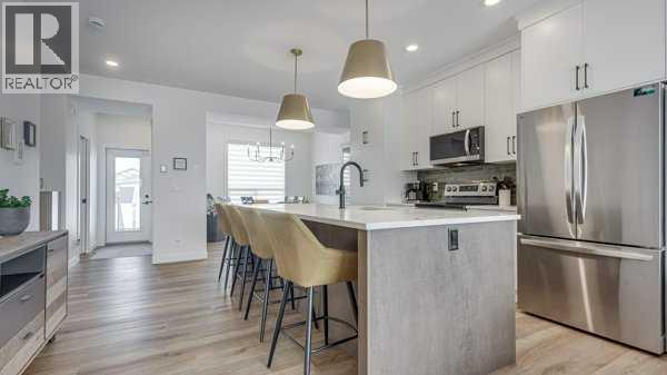 Step into modern living with this stylish 2-Storey townhome in the desirable community of Evergreen. Designed with today’s lifestyle in mind, this brand-new home offers a bright, open-concept main floor highlighted by large triple-pane windows and durable vinyl plank flooring. The spacious kitchen features a large quartz island perfect for meals, homework, or entertaining, along with a built-in pantry and a full stainless appliance package.The dining area easily accommodates larger tables, while the separate rear mudroom—with a convenient half bath—keeps daily life organized. From here, access your 9' x 12' back deck with aluminum railing and enjoy your private yard, complete with a 6' wood fence on both sides and parking for two off the paved lane.Upstairs, you’ll find a well-planned layout with upper-floor laundry, two comfortable bedrooms, a full main bath, and a generous primary suite featuring a walk-in closet and a 4-piece ensuite. Extra hallway storage adds even more functionality. The basement offers 9' ceilings and is ready for your future development, with space for a bedroom, bathroom, and family room.Located close to shopping, schools, parks, and golf, this home blends comfort, convenience, and modern design—perfect for first-time buyers, downsizers, or investors. A single detached garage can also be added in the future. (id:55577)